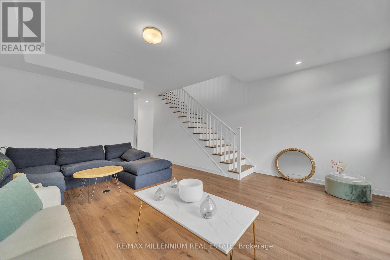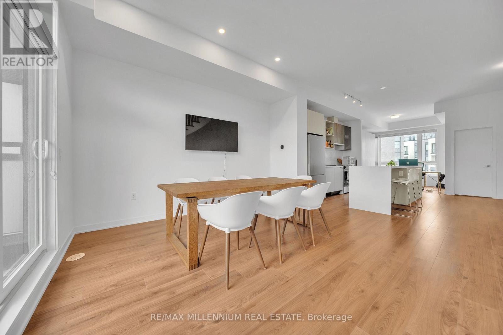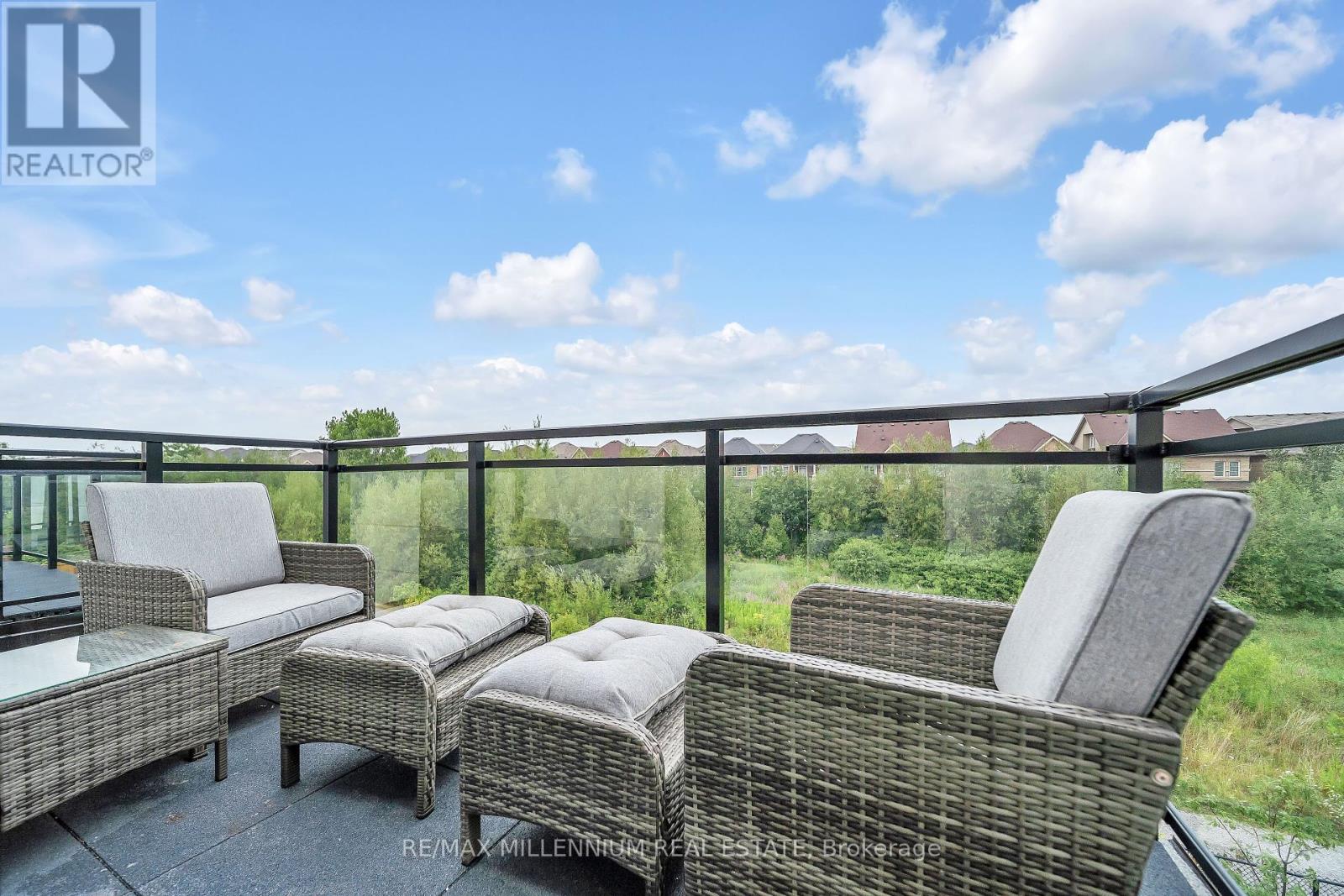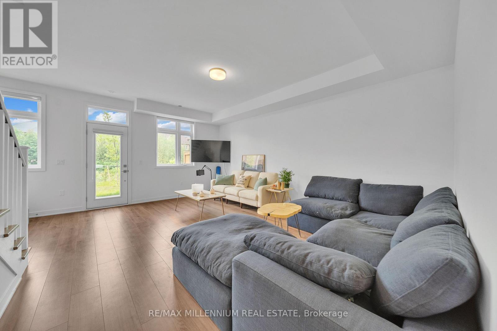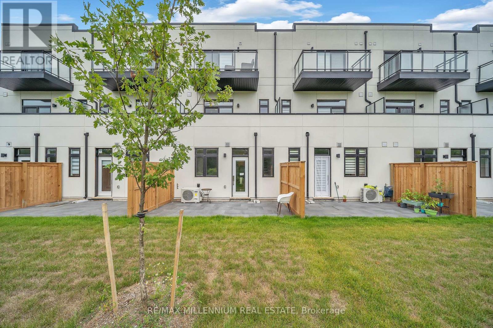 Discover refined living in this One year old Freehold townhome offering 2,277 sq. ft. of thoughtfully designed space, featuring 3 spacious bedrooms and 3 luxurious bathrooms. Step into a bright and airy interior boasting 10-foot ceilings in the main living area and wide-plank laminate flooring throughout, blending style and functionality. The gourmet kitchen is the centerpiece of the home, outfitted with Italian Trevisana cabinetry, a striking waterfall island, quartz countertops and backsplash, stainless steel appliances, and a stainless steel hood fan perfect for everyday meals or entertaining. Enjoy seamless indoor-outdoor living with a walk-out to your private terrace, ideal for summer evenings or morning coffee. The primary suite is a true retreat, featuring a spa-inspired ensuite with double sinks, a generous walk-in closet, and a private balcony offering peace and privacy. Additional highlights include LED lighting throughout, a tankless hot water heater, gas BBQ hookup, and hose bibs in both the backyard and garage for added convenience. Nestled in a sought-after Oakville neighbourhood, you're just minutes away from upscale restaurants, boutique shopping, and top-rated public and private schools. Commuters will appreciate quick access to Hwy 403, 407, GO Transit, and regional bus routes. Don't miss your opportunity to own this sophisticated and low-maintenance home in one of the GTAs most desirable communities! (id:51158)