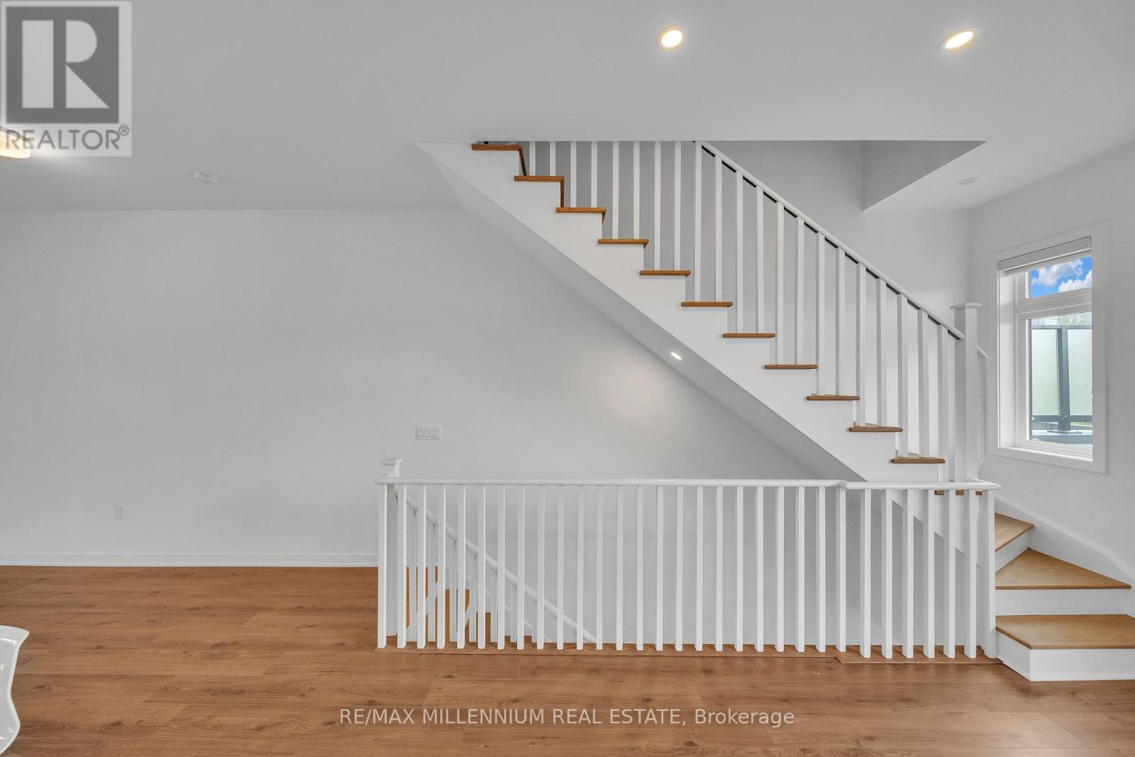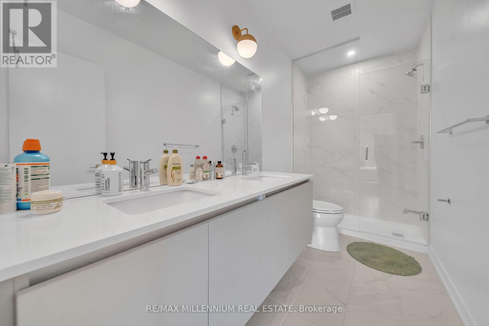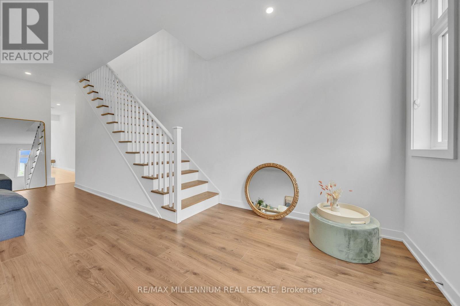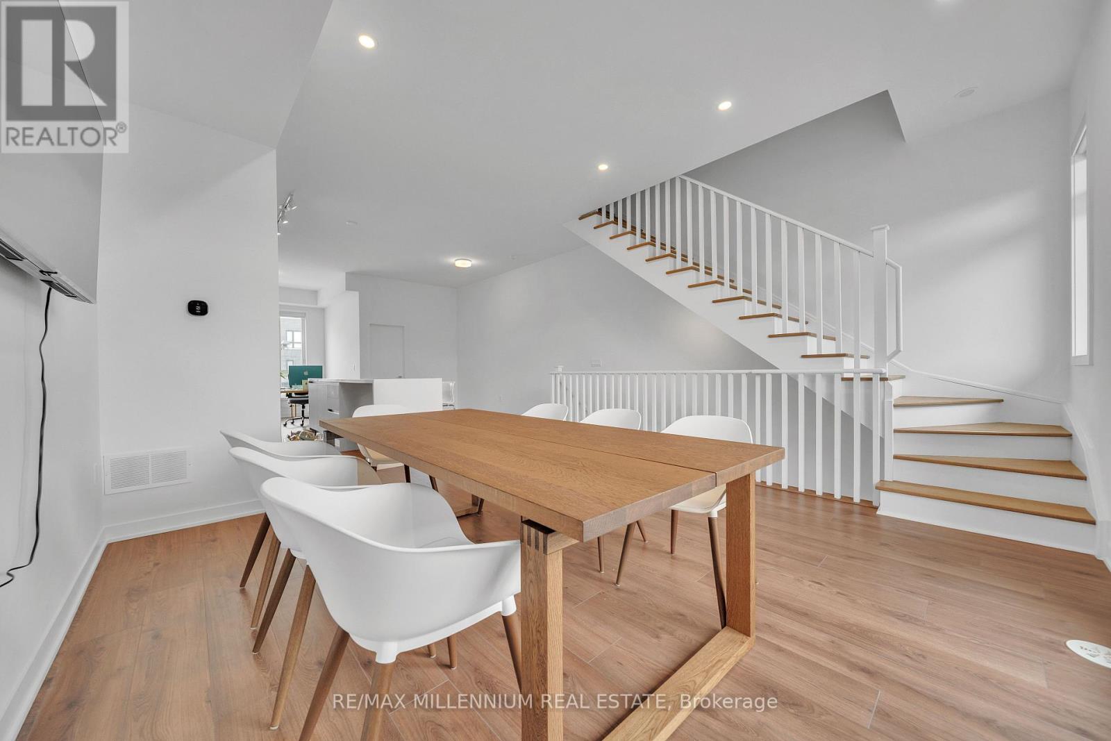 Discover refined living in this One year old Freehold townhome offering 2,277 sq. ft. of thoughtfully designed space, featuring 3 spacious bedrooms and 3 luxurious bathrooms. Step into a bright and airy interior boasting 10-foot ceilings in the main living area and wide-plank laminate flooring throughout, blending style and functionality. The gourmet kitchen is the centerpiece of the home, outfitted with Italian Trevisana cabinetry, a striking waterfall island, quartz countertops and backsplash, stainless steel appliances, and a stainless steel hood fan perfect for everyday meals or entertaining. Enjoy seamless indoor-outdoor living with a walk-out to your private terrace, ideal for summer evenings or morning coffee. The primary suite is a true retreat, featuring a spa-inspired ensuite with double sinks, a generous walk-in closet, and a private balcony offering peace and privacy. Additional highlights include LED lighting throughout, a tankless hot water heater, gas BBQ hookup, and hose bibs in both the backyard and garage for added convenience. Nestled in a sought-after Oakville neighbourhood, you're just minutes away from upscale restaurants, boutique shopping, and top-rated public and private schools. Commuters will appreciate quick access to Hwy 403, 407, GO Transit, and regional bus routes. Don't miss your opportunity to own this sophisticated and low-maintenance home in one of the GTAs most desirable communities! (id:51158)