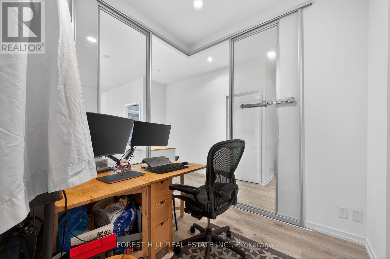 Absolutely stunning 1 bed + oversized den and 2 bath condo in Transit City 4, located in the heart of Vaughan Metropolitan Centre. Soaring nearly 10-ft ceilings create an airy, open feel throughout, complemented by floor-to-ceiling windows that flood the space with natural light. Modern kitchen featuring quartz countertops and built-in appliances. Rare layout with a massive den that can easily be used as a second bedroom. One of the few units offering both a locker and underground parking. Enjoy 24-hour concierge service and over 24,000 sq. ft. of resort-style amenities, including golf & sports simulators, lounge, BBQ area, two-level fitness centre, indoor track, cardio room, yoga studio, basketball court, squash court, and rooftop pool. Unbeatable location-stepsto VMC Subway Station, VIVA Terminal, restaurants, shopping, highways, Vaughan Mills, schools, and more. (id:51158)