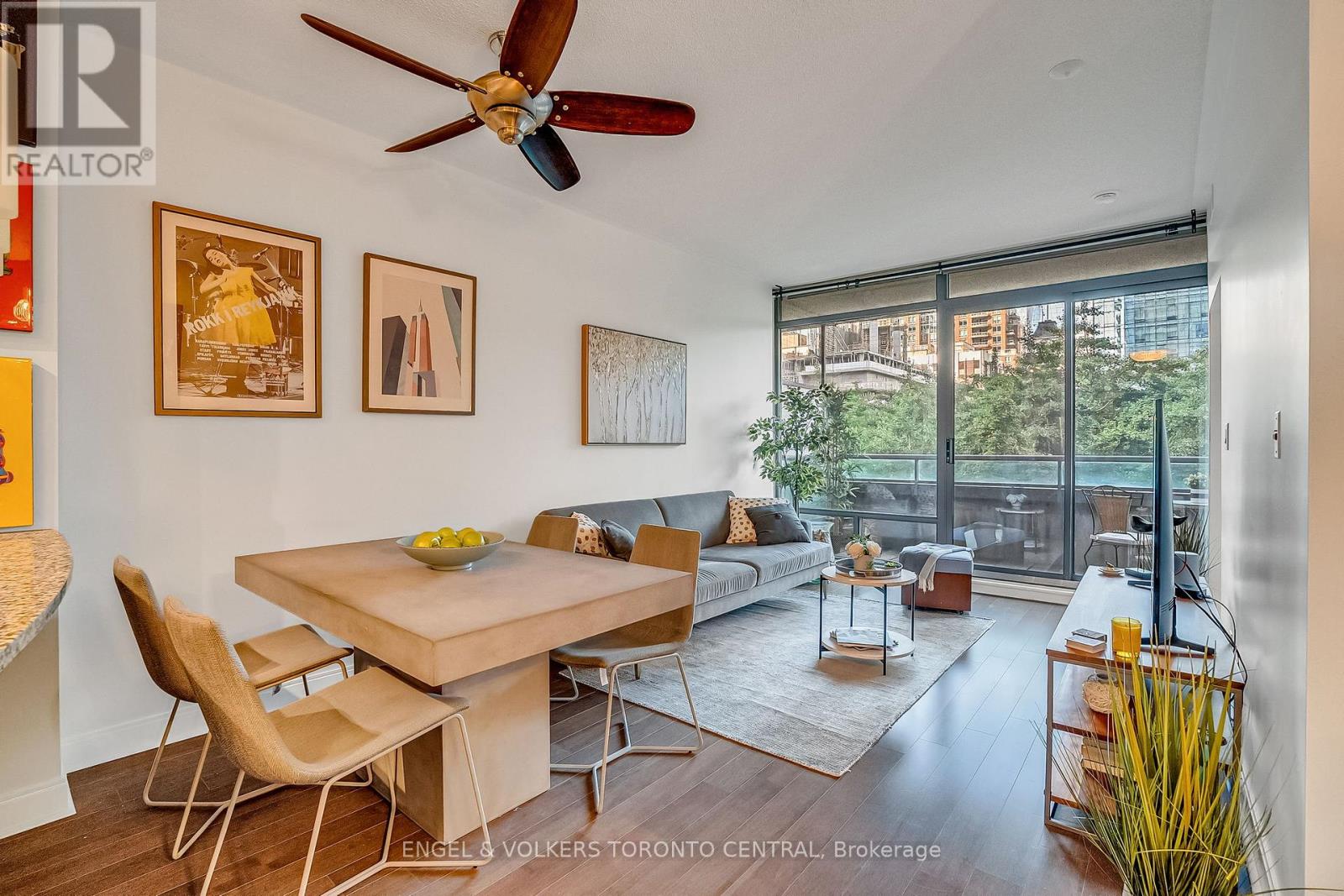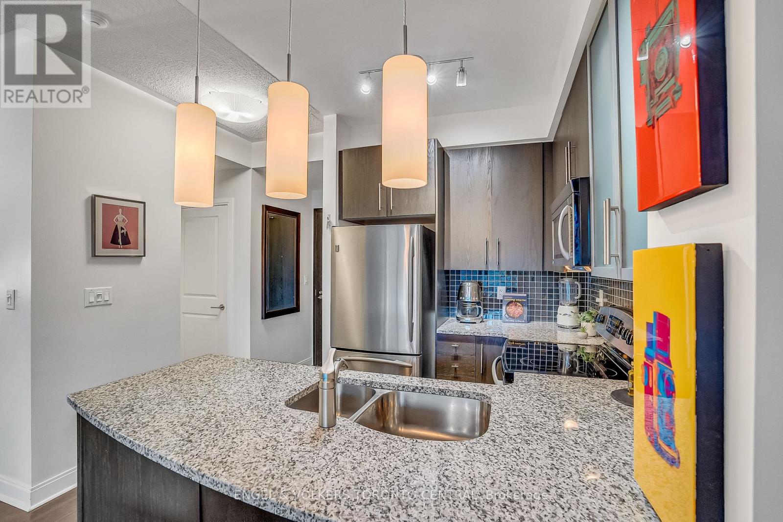 Welcome to the epitome of luxury living in the heart of Toronto's most coveted neighbourhood. Discover Unit 306 at 18 Yorkville Avenue, a stylish and highly functional 1+1 Bedroom suite designed for the discerning urbanite.This 8'11''ceiling height unit is a perfect blend of comfort and elegance. Step inside and be greeted by sleek laminate flooring that flows throughout the open-concept layout. The modern kitchen is a chef's delight, equipped with stainless steel appliances, elegant granite countertops, and a practical breakfast bar perfect for casual dining.The versatile den is a standout feature. Open to the living and dining areas, it's an ideal space for a home office, complete with a built-in bookcase for all your storage needs. Natural light floods the main living area, which extends to an oversized, west-facing balcony. From here, you can enjoy a serene view overlooking Town Hall Square, a peaceful urban park adjacent to the historic Yorkville Library - a truly unique and tranquil setting. The primary bedroom offers a private retreat with floor-to-ceiling windows providing a lovely, tree-filled view and features a generously sized closet. Living at 18 Yorkville means enjoying an unparalleled lifestyle. The building is renowned for its top-of-class amenities, including a state-of-the-art fitness center, sauna, party room, and a spectacular rooftop terrace with BBQ stations. With a 24/7 concierge and on-site management, the building is exceptionally well-maintained, offering a worry-free living experience. This unit includes the rare and highly valuable convenience of a large storage locker on the same floor as the unit, and an underground parking space. In a neighbourhood where parking is a challenge, this is a significant asset. Located at the intersection of Yorkville and Yonge, you are steps away from Toronto's finest restaurants, designer boutiques, and cultural landmarks. This is more than a home; it's a lifestyle. Don't miss this opportunity! (id:51158)