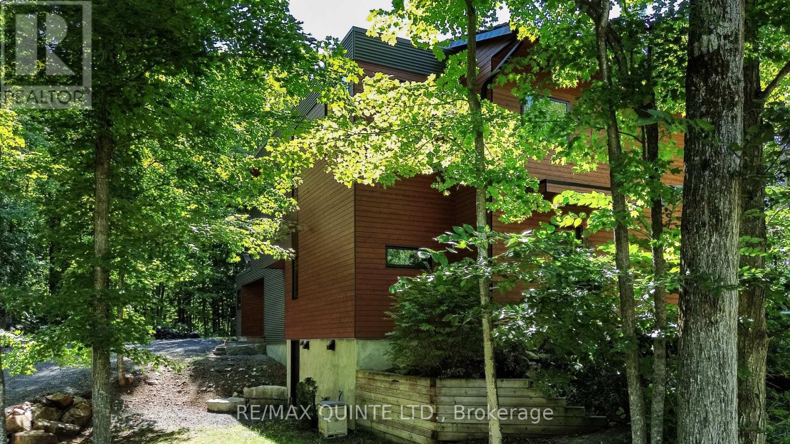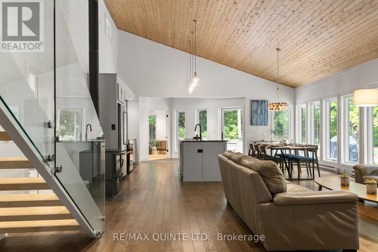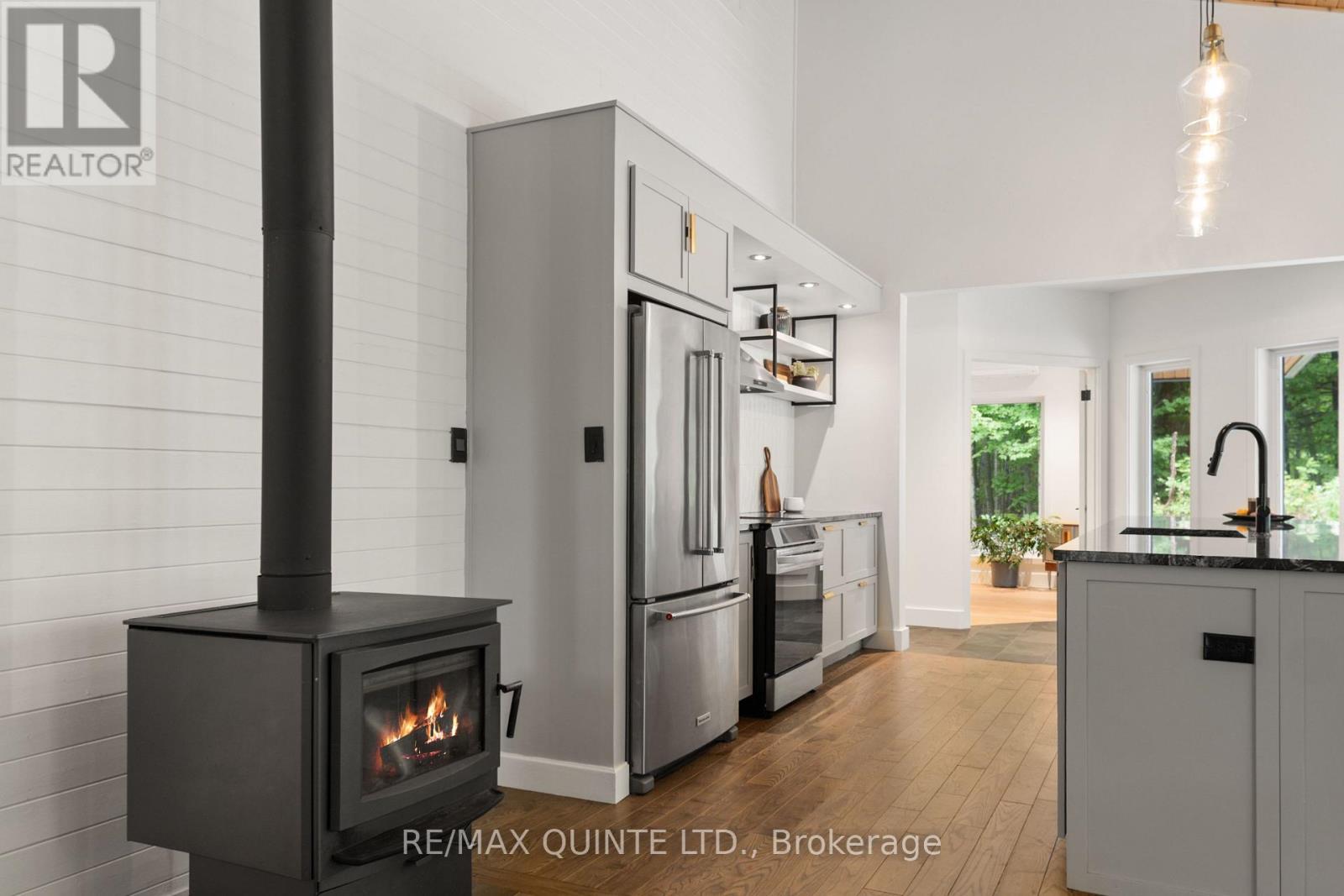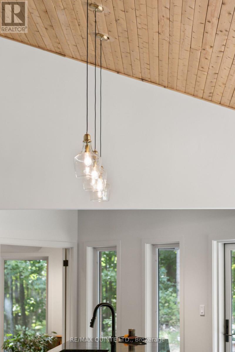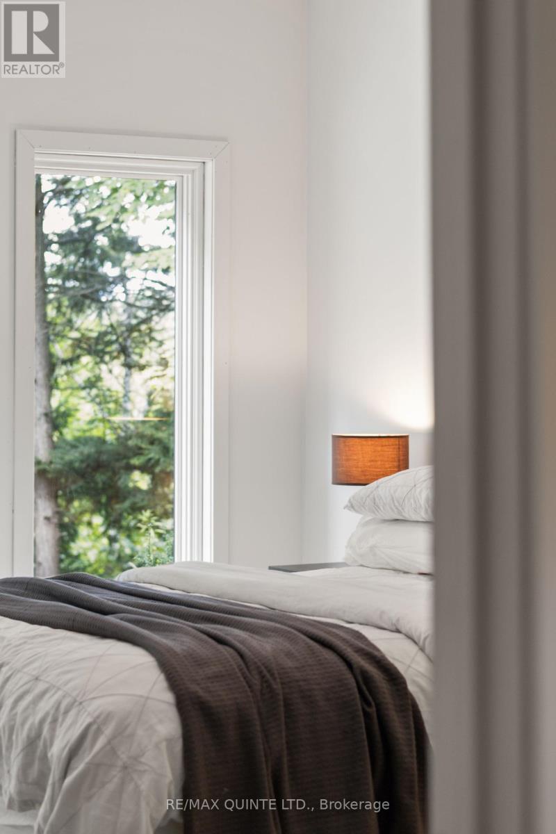 This light-filled Scandinavian-style home has been fully remodeled with custom design and high-quality materials, offering a unique blend of modern living and natural surroundings. Situated on a heavily treed 4.12-acre lot just 15 minutes from Kingston, it provides privacy and connection to nature while keeping you close to the city. Designed with entertaining in mind, the main floor features an open-concept kitchen, living, and dining area under soaring 16-foot vaulted ceilings, anchored by a wood stove. Off the kitchen, a full pantry and spacious laundry room add convenience, while a bonus room or office provides flexible use. A large main-floor bedroom with a full bathroom and custom tiled shower completes this level. An open-riser staircase with glass railing leads to the second floor, where a landing opens to another generous bedroom. The primary suite is a true retreat, beginning with a dramatic skylight-filled hallway that sets the tone. Inside, the suite offers an inviting office space, a spa-inspired ensuite with custom tilework and modern finishes, and a private bedroom perfect for unwinding. The suite culminates in a secluded terrace surrounded by trees, creating a seamless connection to nature and offering the perfect spot for morning coffee or evening relaxation. The lower level, accessed through the mudroom, provides additional storage and walkout access to the outdoors. Outside, this property is enhanced by a 20' x 20' fully insulated shop/studio, an additional insulated storage shed, and a half-acre organic garden. With Upper Brewers Locks at your doorstep and a nearby boat launch giving full access to the historic Rideau Canal and surrounding lakes, this home offers a rare opportunity to embrace a lifestyle of natural beauty and modern comfort. This one-of-a-kind property must be seen in person to be fully appreciated. (id:51158)