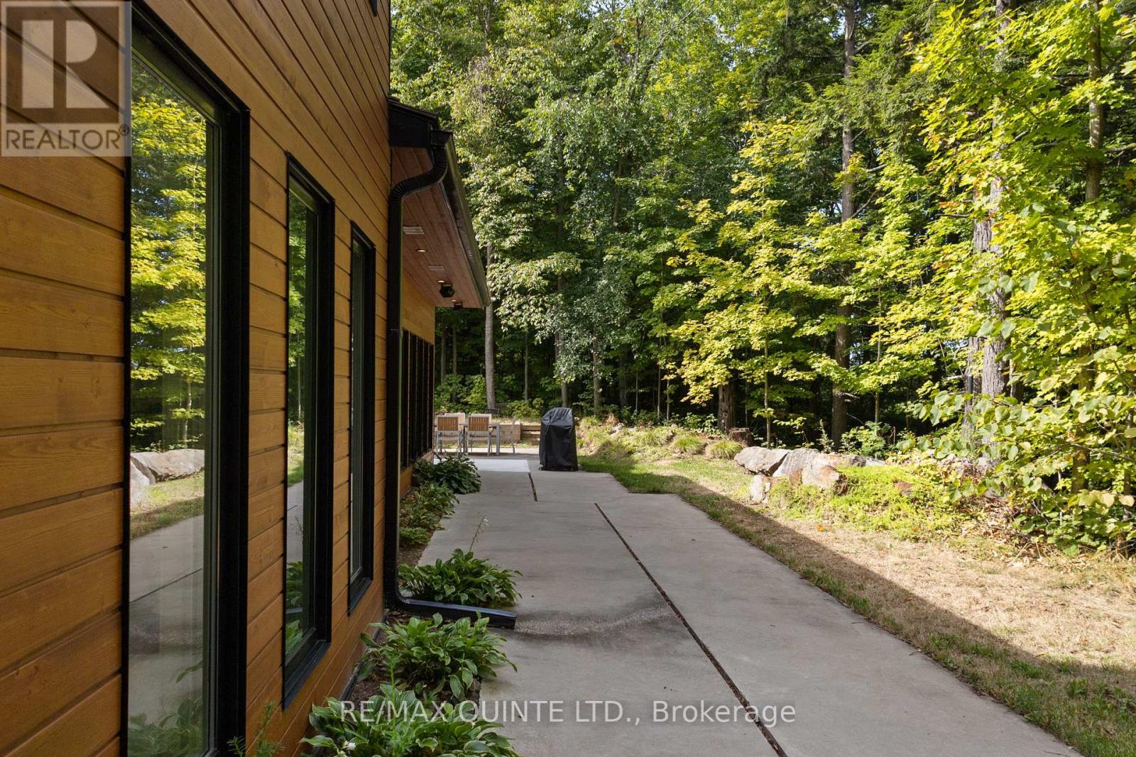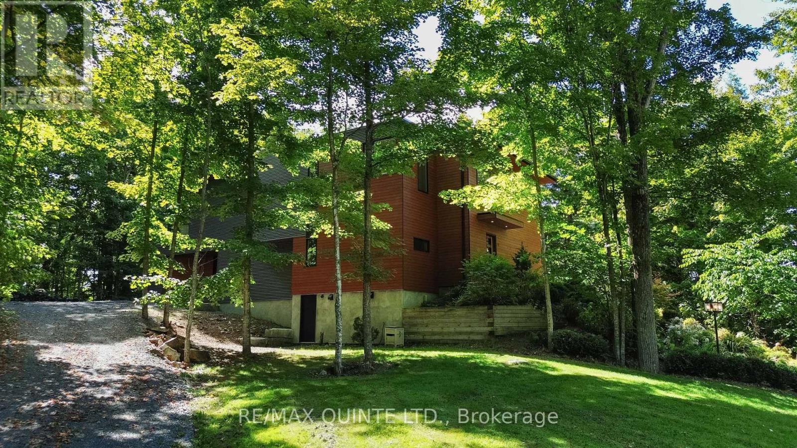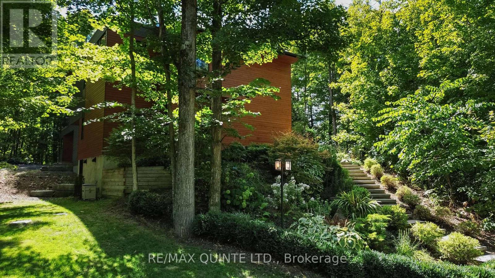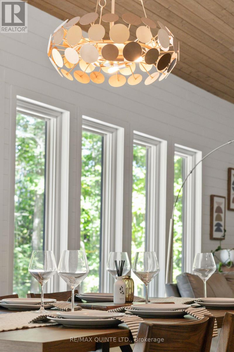 This light-filled Scandinavian-style home has been fully remodeled with custom design and high-quality materials, offering a unique blend of modern living and natural surroundings. Situated on a heavily treed 4.12-acre lot just 15 minutes from Kingston, it provides privacy and connection to nature while keeping you close to the city. Designed with entertaining in mind, the main floor features an open-concept kitchen, living, and dining area under soaring 16-foot vaulted ceilings, anchored by a wood stove. Off the kitchen, a full pantry and spacious laundry room add convenience, while a bonus room or office provides flexible use. A large main-floor bedroom with a full bathroom and custom tiled shower completes this level. An open-riser staircase with glass railing leads to the second floor, where a landing opens to another generous bedroom. The primary suite is a true retreat, beginning with a dramatic skylight-filled hallway that sets the tone. Inside, the suite offers an inviting office space, a spa-inspired ensuite with custom tilework and modern finishes, and a private bedroom perfect for unwinding. The suite culminates in a secluded terrace surrounded by trees, creating a seamless connection to nature and offering the perfect spot for morning coffee or evening relaxation. The lower level, accessed through the mudroom, provides additional storage and walkout access to the outdoors. Outside, this property is enhanced by a 20' x 20' fully insulated shop/studio, an additional insulated storage shed, and a half-acre organic garden. With Upper Brewers Locks at your doorstep and a nearby boat launch giving full access to the historic Rideau Canal and surrounding lakes, this home offers a rare opportunity to embrace a lifestyle of natural beauty and modern comfort. This one-of-a-kind property must be seen in person to be fully appreciated. (id:51158)
