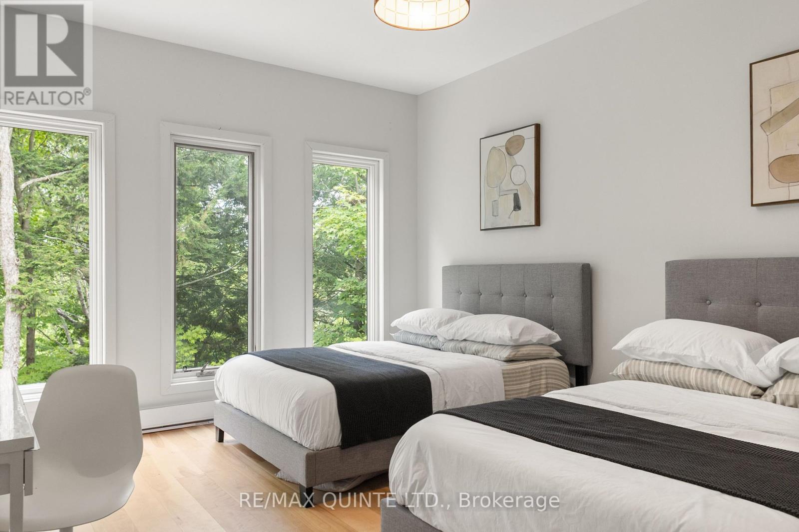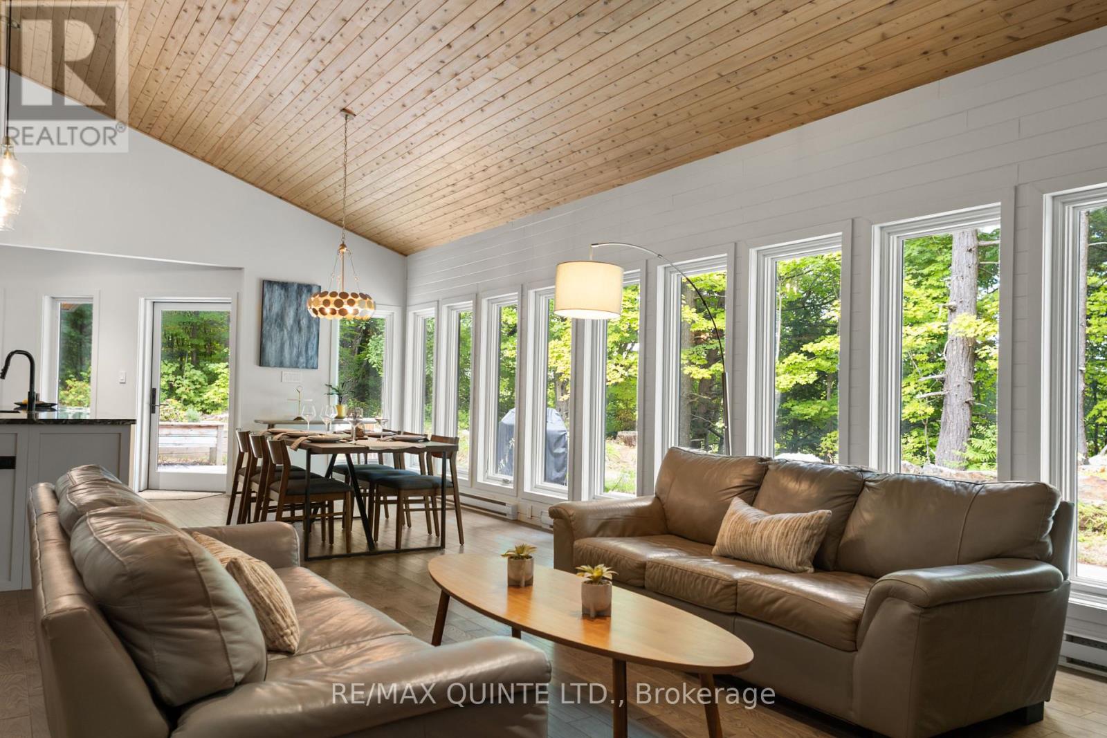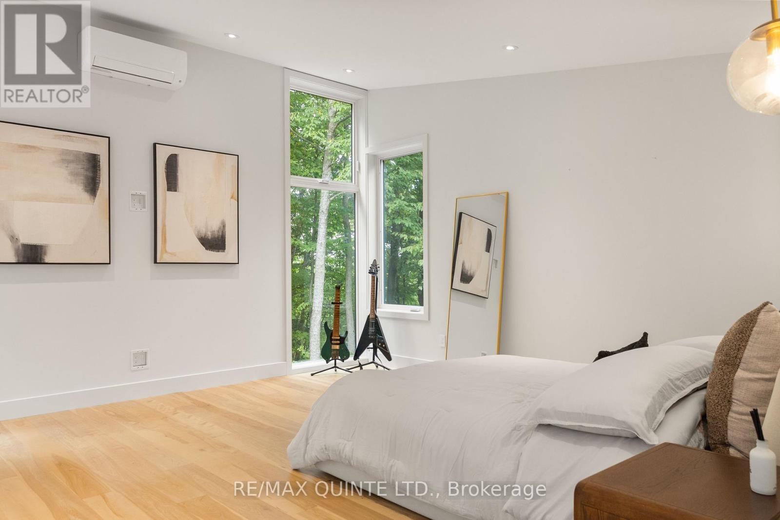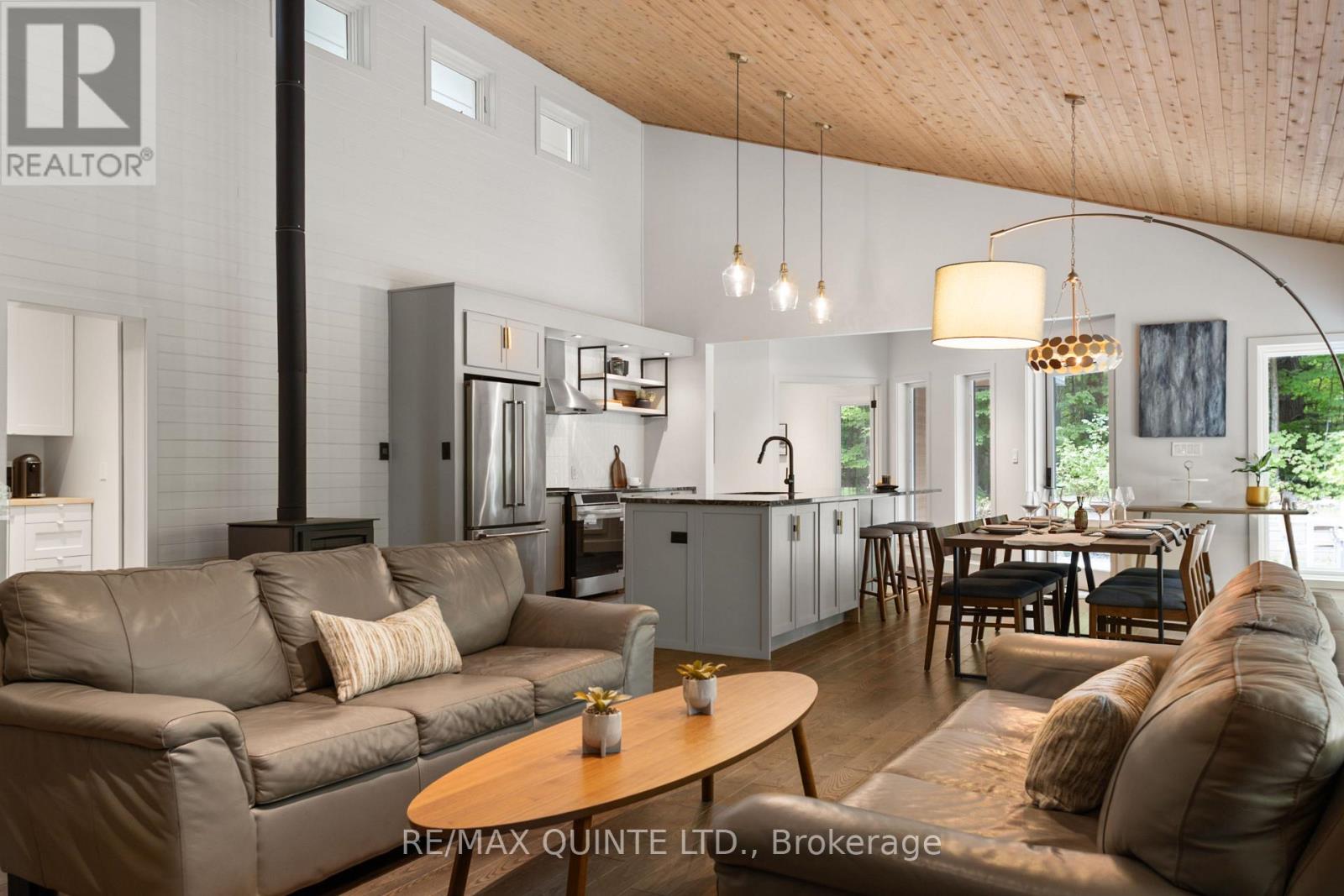 This light-filled Scandinavian-style home has been fully remodeled with custom design and high-quality materials, offering a unique blend of modern living and natural surroundings. Situated on a heavily treed 4.12-acre lot just 15 minutes from Kingston, it provides privacy and connection to nature while keeping you close to the city. Designed with entertaining in mind, the main floor features an open-concept kitchen, living, and dining area under soaring 16-foot vaulted ceilings, anchored by a wood stove. Off the kitchen, a full pantry and spacious laundry room add convenience, while a bonus room or office provides flexible use. A large main-floor bedroom with a full bathroom and custom tiled shower completes this level. An open-riser staircase with glass railing leads to the second floor, where a landing opens to another generous bedroom. The primary suite is a true retreat, beginning with a dramatic skylight-filled hallway that sets the tone. Inside, the suite offers an inviting office space, a spa-inspired ensuite with custom tilework and modern finishes, and a private bedroom perfect for unwinding. The suite culminates in a secluded terrace surrounded by trees, creating a seamless connection to nature and offering the perfect spot for morning coffee or evening relaxation. The lower level, accessed through the mudroom, provides additional storage and walkout access to the outdoors. Outside, this property is enhanced by a 20' x 20' fully insulated shop/studio, an additional insulated storage shed, and a half-acre organic garden. With Upper Brewers Locks at your doorstep and a nearby boat launch giving full access to the historic Rideau Canal and surrounding lakes, this home offers a rare opportunity to embrace a lifestyle of natural beauty and modern comfort. This one-of-a-kind property must be seen in person to be fully appreciated. (id:51158)
