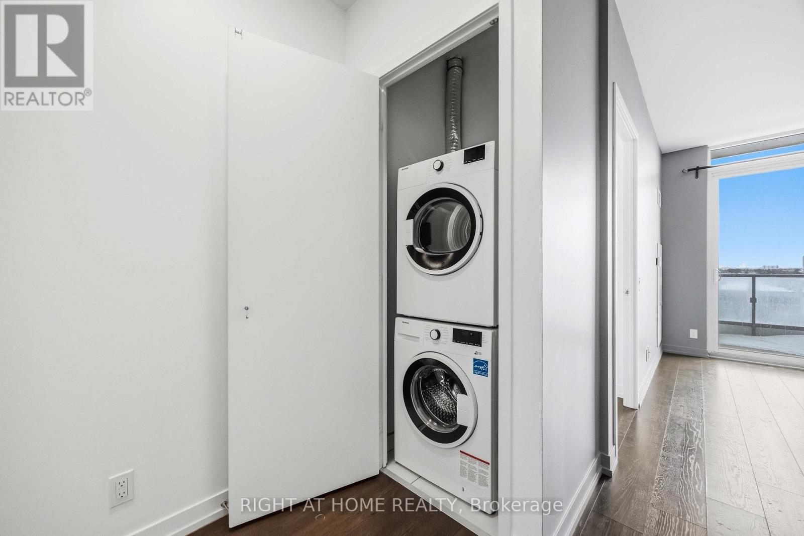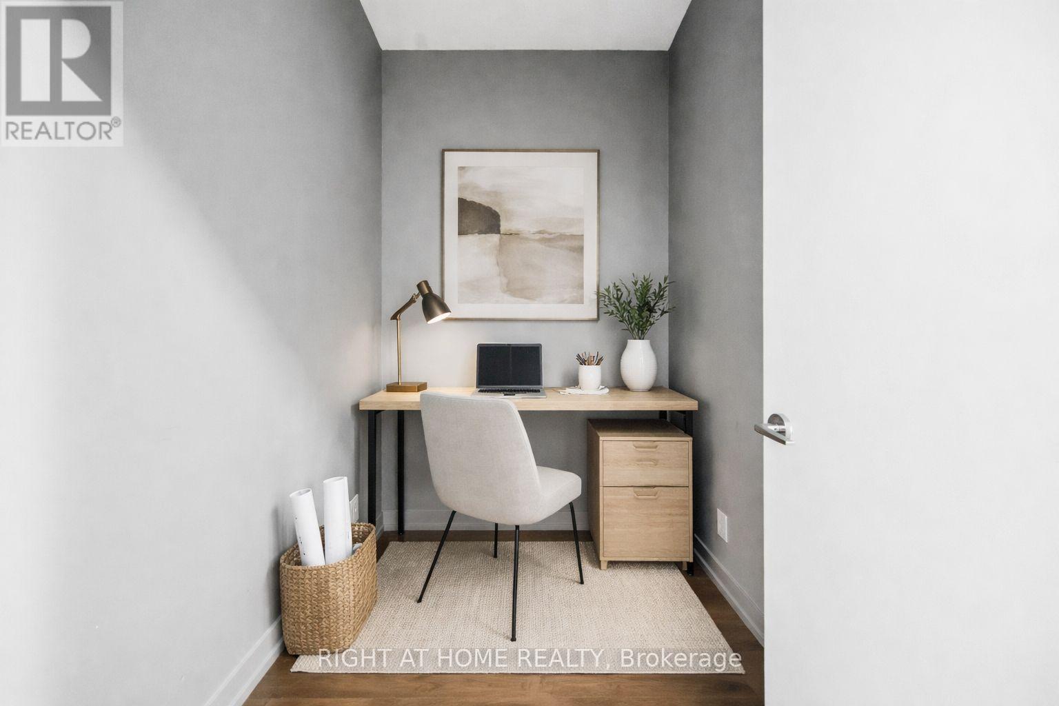 Welcome to Transit City Tower 3 (East Tower) - a functional 2-bedroom + den, 2-bathroom suite designed for modern urban living. Freshly painted, with 9-foot ceilings, floor-to-ceiling windows, and laminate flooring throughout, the suite feels bright, open, and inviting. The open-concept kitchen features quartz countertops, integrated appliances, and modern finishes, perfect for cooking and entertaining. The primary bedroom offers a private ensuite and closet space, while the second bedroom is ideal for family, guests, or a home office. The versatile den provides additional functional space, and the balcony offers unobstructed views for relaxing or entertaining. Residents enjoy amenities, including a state-of-the-art fitness centre, rooftop terrace, stylish lounge areas, and 24-hour concierge service. The building also provides access to the YMCA, a 9-acre park, shopping, dining, and entertainment, ensuring a vibrant urban lifestyle right at your doorstep. Located in the heart of the Vaughan Metropolitan Centre (VMC), this location offers unparalleled transit access - just steps from the VMC Subway Station, YRT Bus Terminal, and VIVA routes, with quick connections to downtown Toronto, York University, and Yorkdale Mall. Commuting is effortless with Highways 400 and 407 just minutes away. (id:51158)