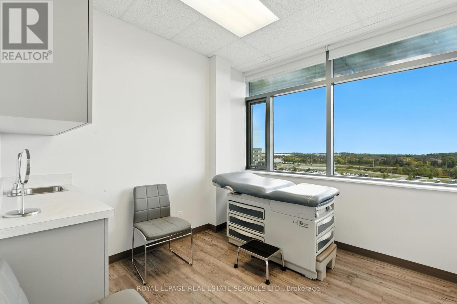 Premium Class A medical office suite in one of Oakville's most sought-after healthcare hubs, directly across from Oakville Trafalgar Memorial Hospital. This state-of-the-art medical building offers onsite services including lab, x-ray, ultrasound, bone density, pharmacy, and a dedicated doctors lounge, providing unmatched convenience for practitioners and patients alike.The suite is fully built out and thoughtfully designed, featuring a welcoming reception and waiting area, 11 exam rooms with sinks, 2 private offices, 2 in-suite washrooms, kitchen, 2 nurses stations, storage rooms, and a private waiting room. Seven exam rooms and two waiting areas feature full glass walls, creating a bright and modern clinical environment.**Turnkey opportunity** the Landlord's existing medical equipment, exam tables, desks, and chairs can be leased with the unit. Flexible demising options are available to accommodate smaller square footages.This is an ideal space for physicians, specialists, or allied health professionals seeking a high-profile, move-in ready location with built-in referral opportunities and immediate access to hospital resources. (id:51158)