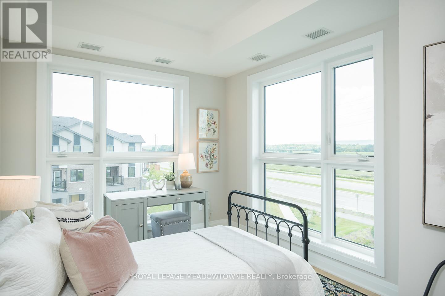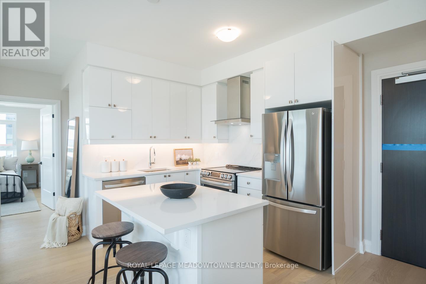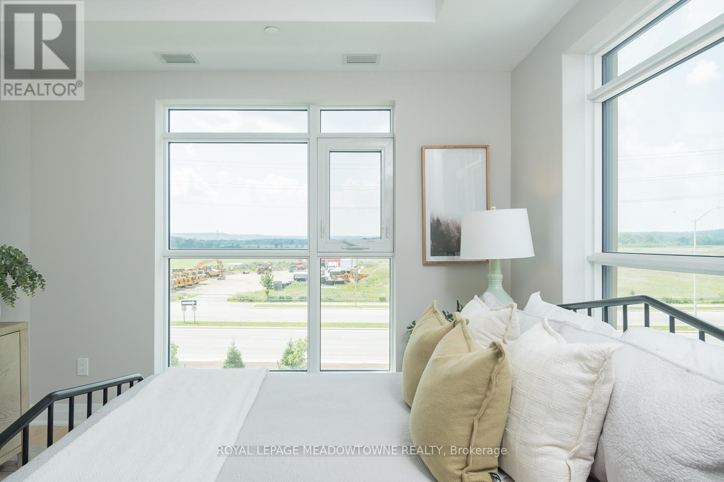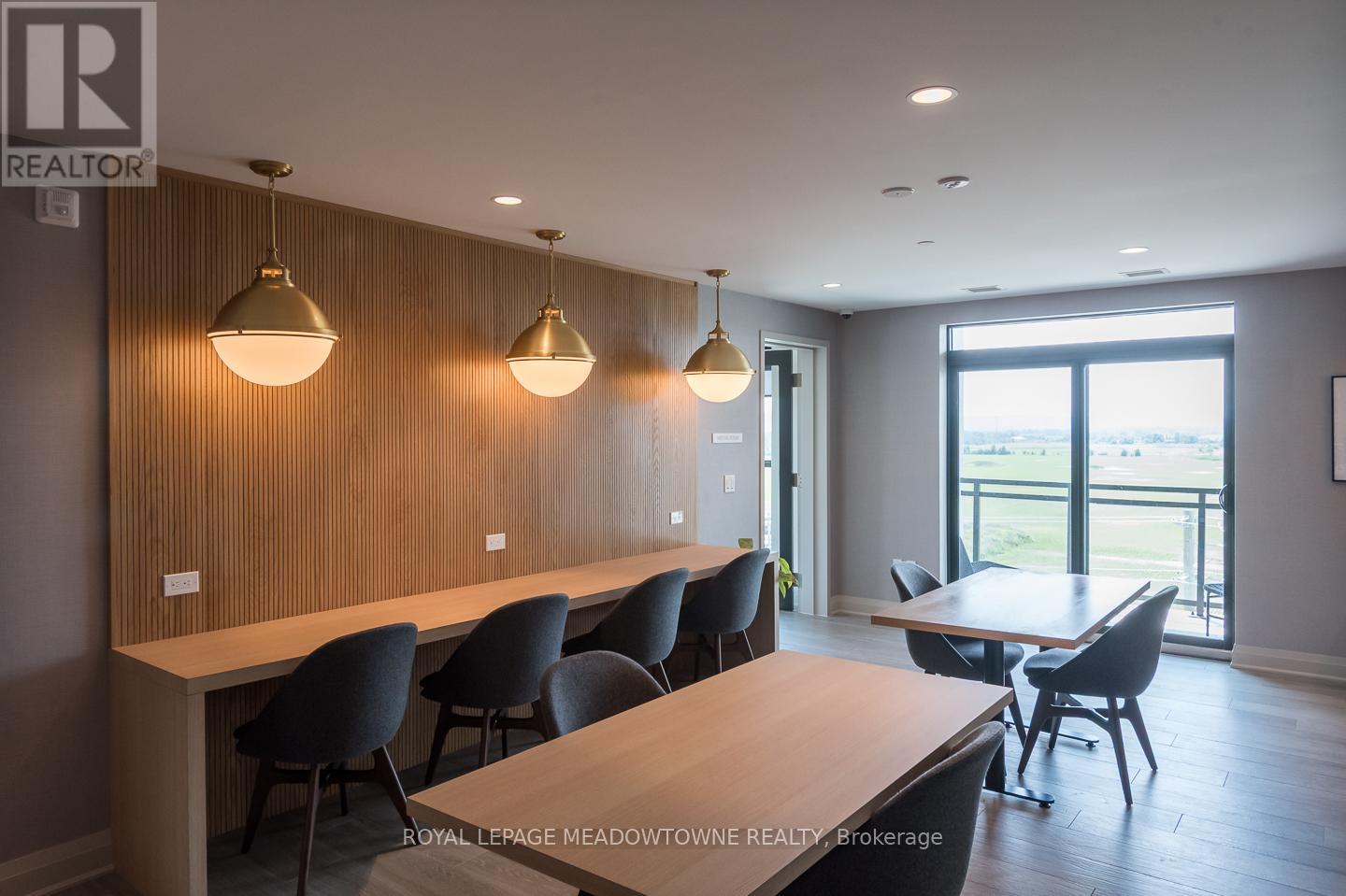 Welcome to this premium, gorgeous, brand new, double corner condo unit offering modern luxury and unbeatable convenience in one of Miltons most sought-after up coming locations. Bonus: 2 parking spots! (1 EV) Enjoy breathtaking panoramic views of the escarpment through floor-to-ceiling windows and soaring high ceilings that fill the space with natural light. This 2-bedroom + den suite features an open-concept living and dining area and a neutral colour palette, and direct access to a private balcony. The sleek high-gloss white kitchen is a chefs dream, boasting quartz countertops, matching backsplash, stainless steel appliances, under-cabinet lighting, and a large island with seating. Both bathrooms are elegantly designed, with the primary offering a 3-piece ensuite and walk-in closet. With two parking spots, in-suite laundry, laminate flooring throughout, and premium building amenitiesincluding concierge service, security cameras, rooftop terrace, party room, and co-working spacethis home has it all including 60K worth of structural and design centre upgrades, Over $50,000 in builder upgrades (flooring, countertops, cabinetry, lighting, appliances, finishes) and $10,000 premium for unit placement (view/floor/unit location). Ideally located near Kelso, Rattlesnake Point, Spring Ridge Farm, the Velodrome, and the future Milton Education Village, with excellent commuter access via the upcoming Tremaine 401 ramp. (id:51158)