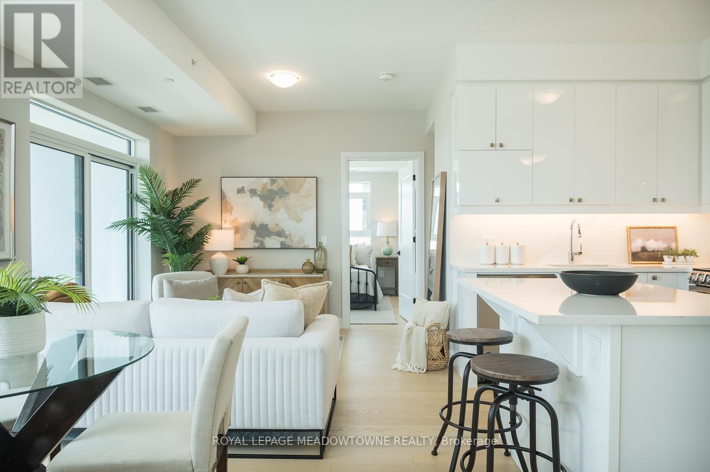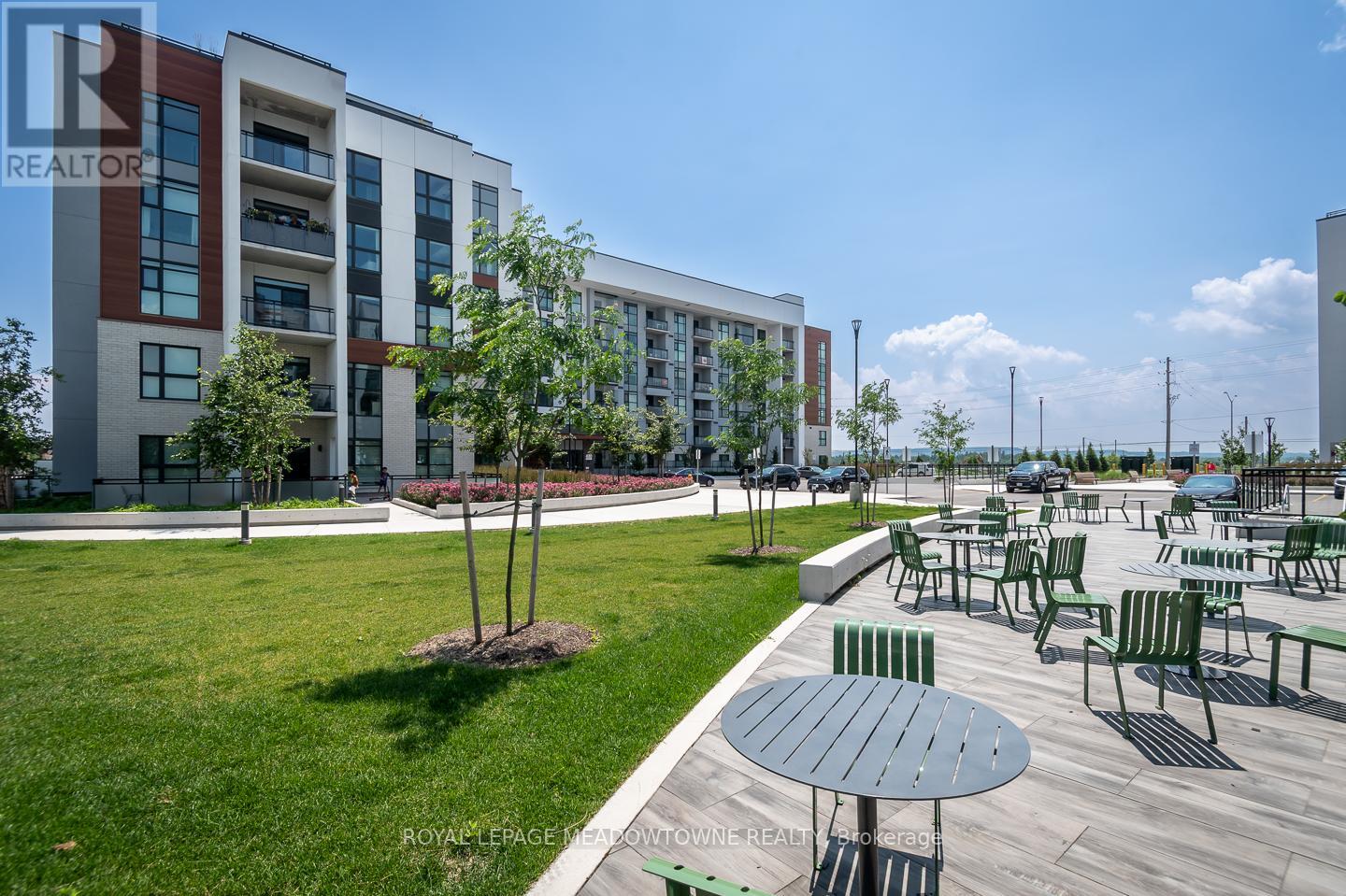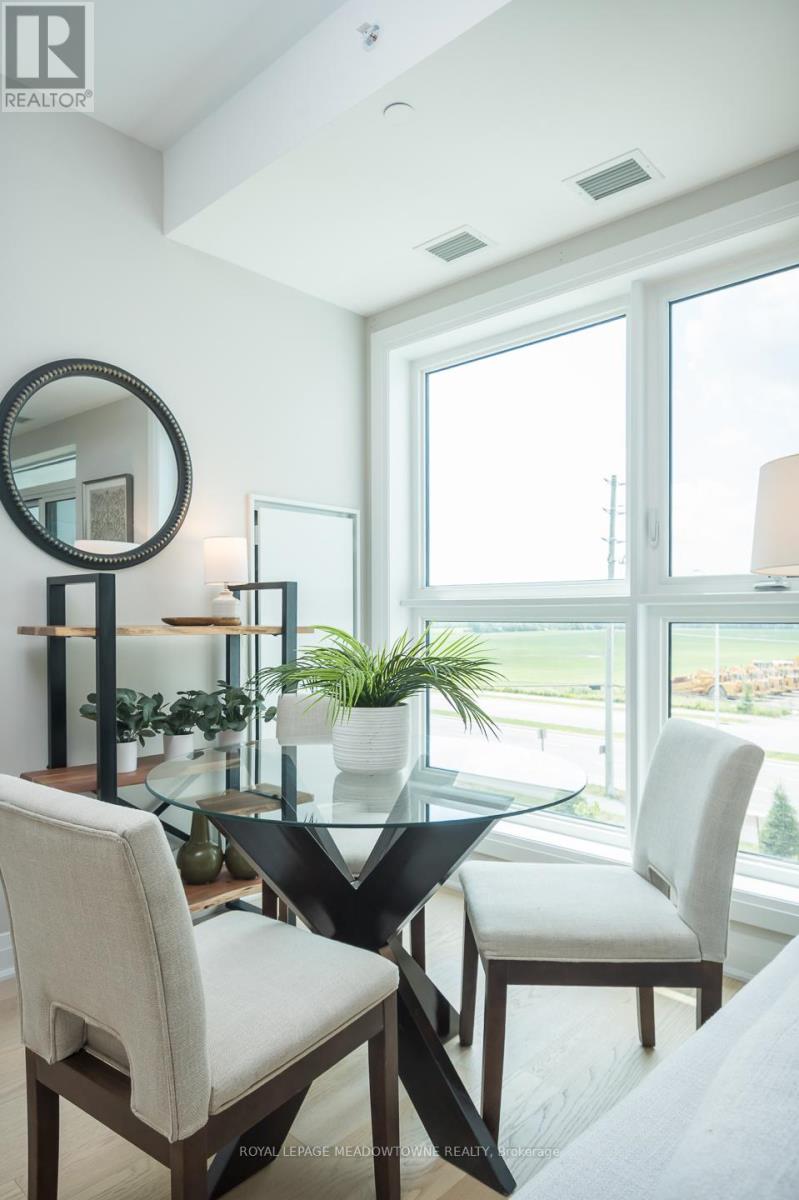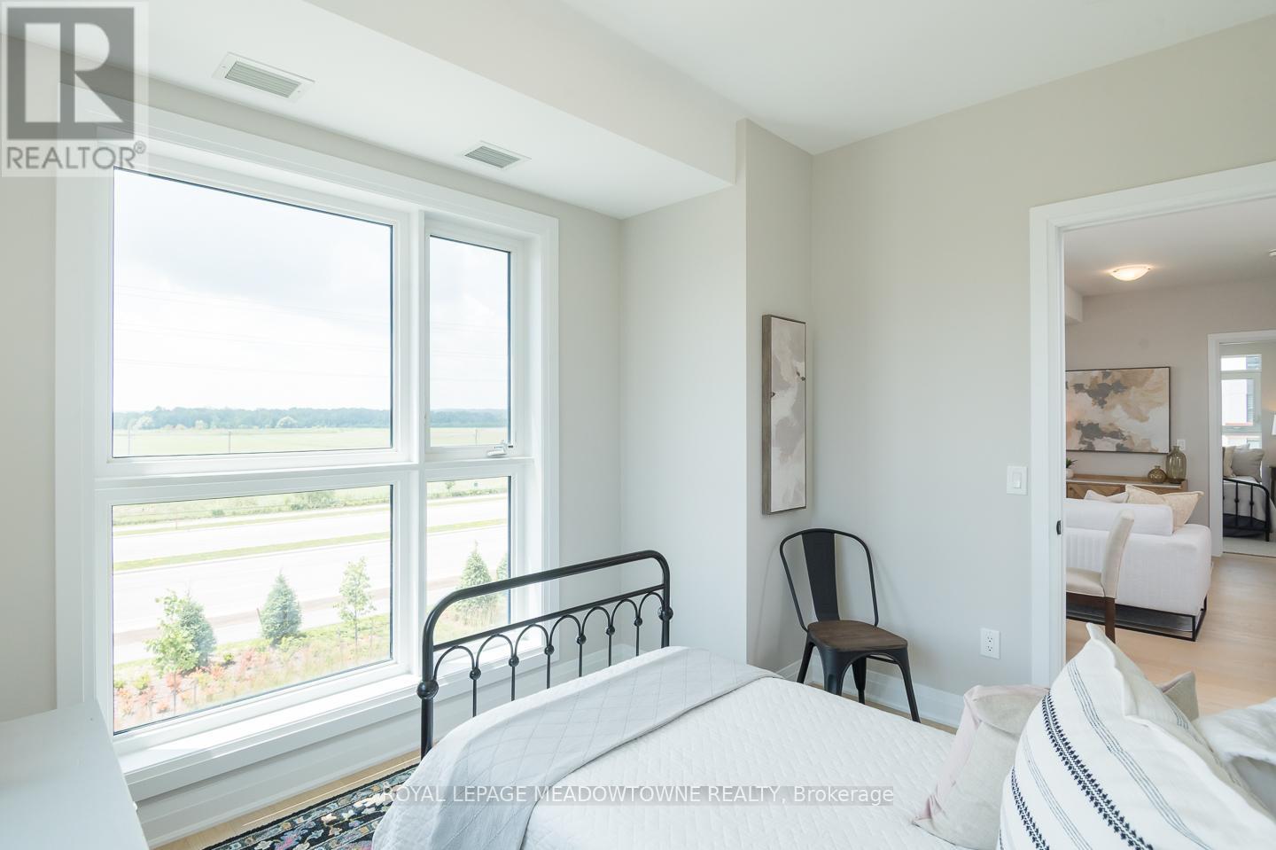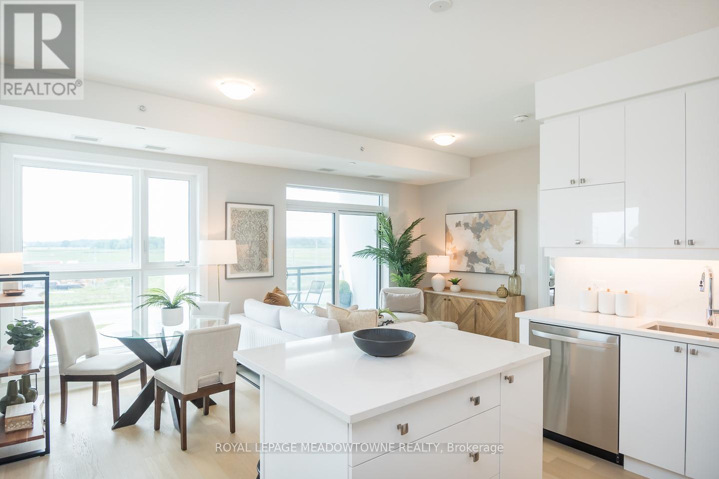 Welcome to this premium, gorgeous, brand new, double corner condo unit offering modern luxury and unbeatable convenience in one of Miltons most sought-after up coming locations. Bonus: 2 parking spots! (1 EV) Enjoy breathtaking panoramic views of the escarpment through floor-to-ceiling windows and soaring high ceilings that fill the space with natural light. This 2-bedroom + den suite features an open-concept living and dining area and a neutral colour palette, and direct access to a private balcony. The sleek high-gloss white kitchen is a chefs dream, boasting quartz countertops, matching backsplash, stainless steel appliances, under-cabinet lighting, and a large island with seating. Both bathrooms are elegantly designed, with the primary offering a 3-piece ensuite and walk-in closet. With two parking spots, in-suite laundry, laminate flooring throughout, and premium building amenitiesincluding concierge service, security cameras, rooftop terrace, party room, and co-working spacethis home has it all including 60K worth of structural and design centre upgrades, Over $50,000 in builder upgrades (flooring, countertops, cabinetry, lighting, appliances, finishes) and $10,000 premium for unit placement (view/floor/unit location). Ideally located near Kelso, Rattlesnake Point, Spring Ridge Farm, the Velodrome, and the future Milton Education Village, with excellent commuter access via the upcoming Tremaine 401 ramp. (id:51158)