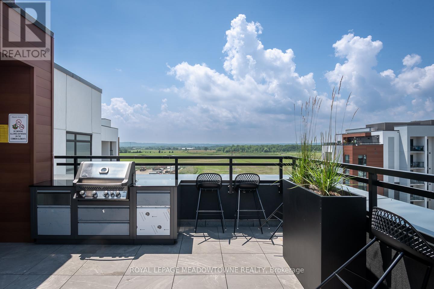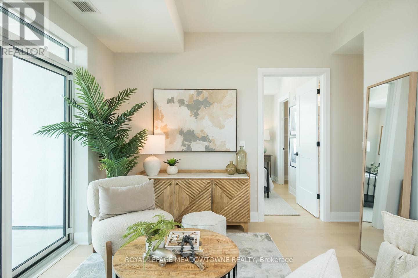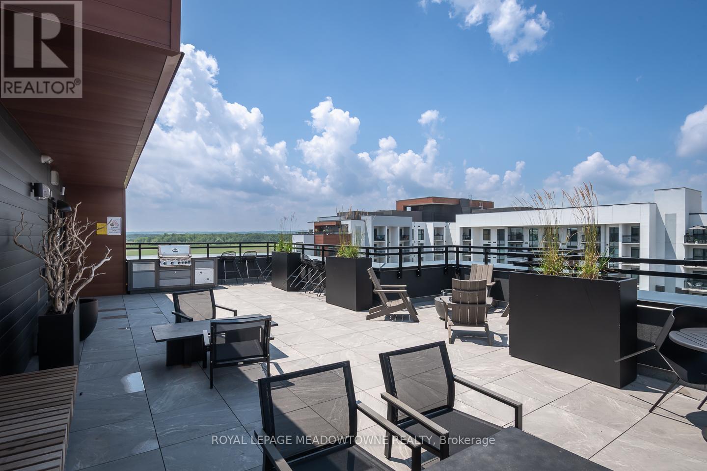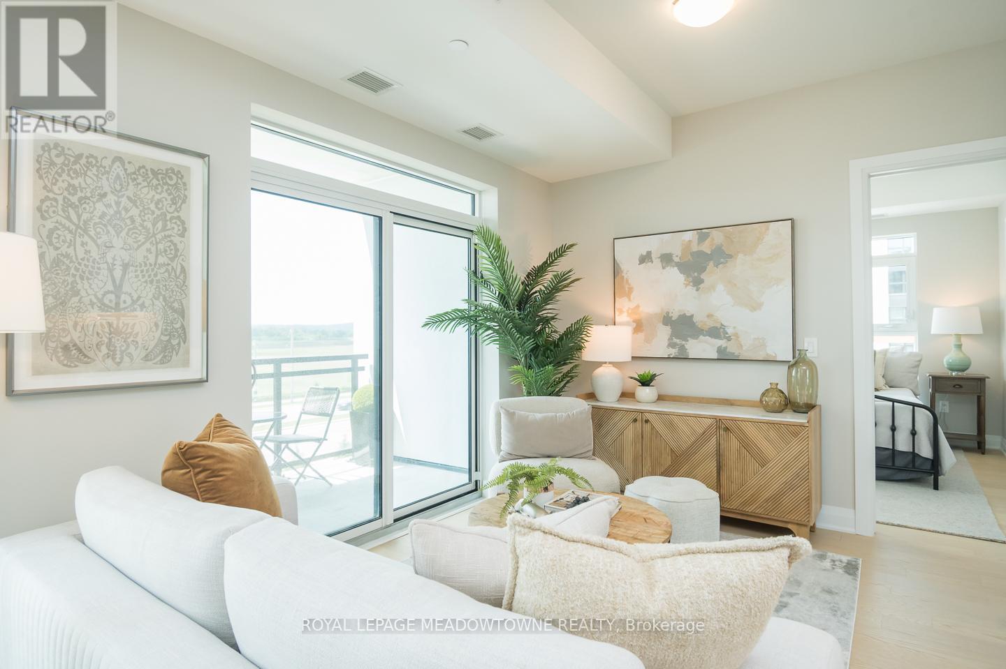 Welcome to this premium, gorgeous, brand new, double corner condo unit offering modern luxury and unbeatable convenience in one of Miltons most sought-after up coming locations. Bonus: 2 parking spots! (1 EV) Enjoy breathtaking panoramic views of the escarpment through floor-to-ceiling windows and soaring high ceilings that fill the space with natural light. This 2-bedroom + den suite features an open-concept living and dining area and a neutral colour palette, and direct access to a private balcony. The sleek high-gloss white kitchen is a chefs dream, boasting quartz countertops, matching backsplash, stainless steel appliances, under-cabinet lighting, and a large island with seating. Both bathrooms are elegantly designed, with the primary offering a 3-piece ensuite and walk-in closet. With two parking spots, in-suite laundry, laminate flooring throughout, and premium building amenitiesincluding concierge service, security cameras, rooftop terrace, party room, and co-working spacethis home has it all including 60K worth of structural and design centre upgrades, Over $50,000 in builder upgrades (flooring, countertops, cabinetry, lighting, appliances, finishes) and $10,000 premium for unit placement (view/floor/unit location). Ideally located near Kelso, Rattlesnake Point, Spring Ridge Farm, the Velodrome, and the future Milton Education Village, with excellent commuter access via the upcoming Tremaine 401 ramp. (id:51158)