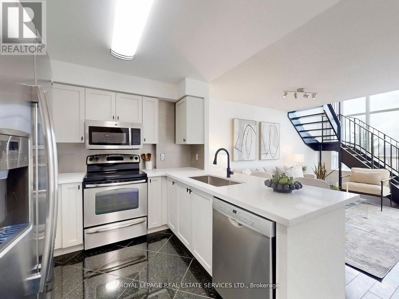$844.06 MonthlyHard to believe its in Richmond Hill! One bedroom two bathrooms, 2 storey loft condominium. Its upscale loft living at the Gates of Bayview Glen2 condominium with a downtown chic feel. Bathrooms have been renovated, kitchen has beenupdated and has a brand new quartz countertop which provides space for dining, and brand new sink and faucet. It hasstainless steel appliances. Suite has been freshly painted. Open concept kitchen and comfortable living space and astunning hardwood staircase to second level. There are entrances to unit on two separate floors. Laundry is conveniently located on second levelwith storage space. There is a foyer upon entrance in this model which is rare. The building has begun an extensive renovation including all hallways and lobby. It will look spectacular and brand new. Close to Langstaff Go station, community centre, shopping & future subway. Shows extremely well, move right in! (id:51158)