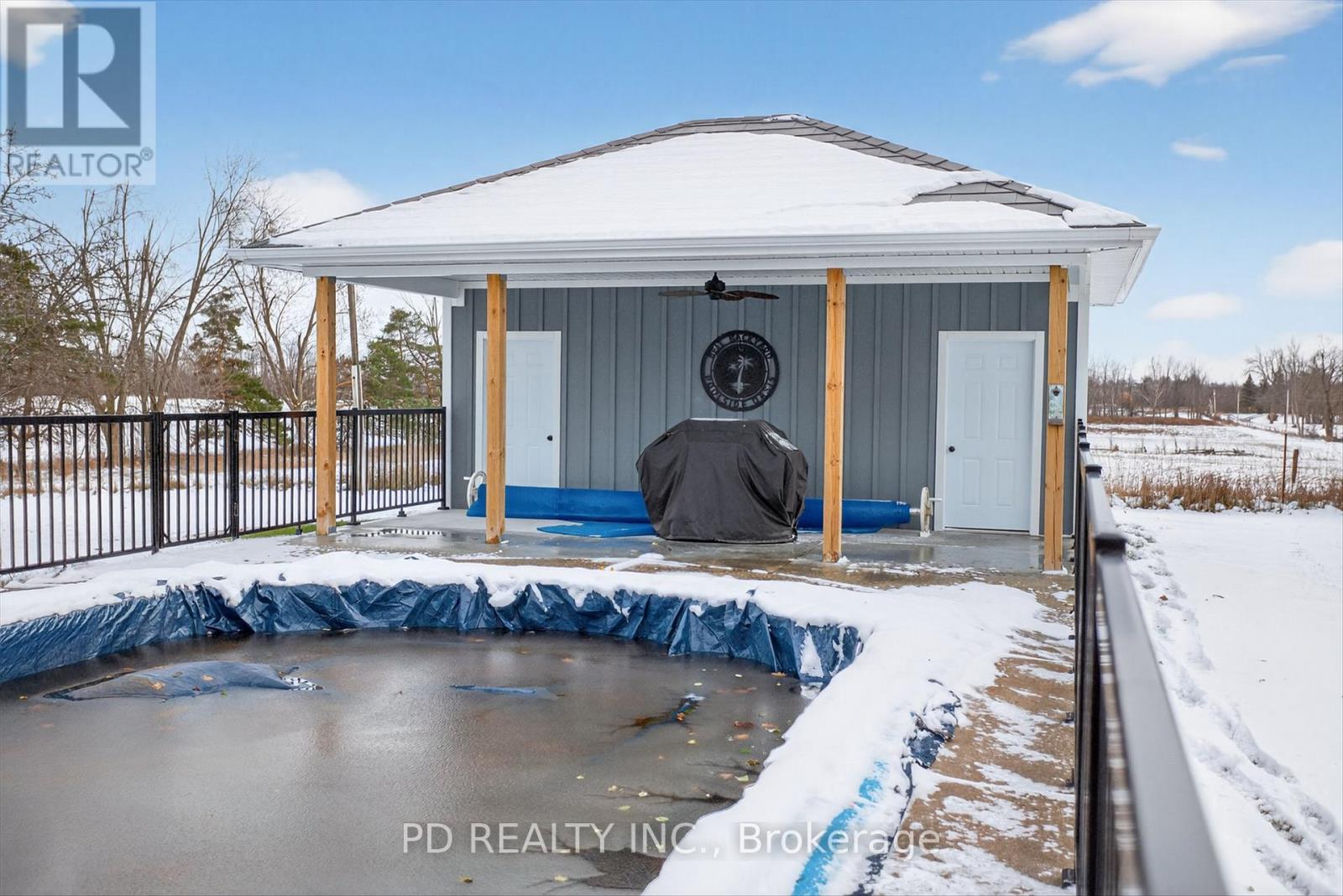 Enjoy the best of country living while being just minutes from all the amenities of Lindsay. This updated and well-cared-for raised bungalow sits on a private 1.23-acre property and offers a truly move-in-ready lifestyle. The main floor features hardwood floors, 3 bedrooms, a family room, a spacious kitchen with built-in appliances, a generous dining area, and a cozy living room with a vaulted ceiling, gas fireplace, and a walkout to the deck overlooking the heated inground pool. The pool includes a new liner (2024) and is complemented by a new pool house with hydro and a covered patio (2023).The fully finished walkout basement, complete with a covered entrance, adds excellent versatility with a second 4-piece bathroom, rec. room, laundry room, plus 2 additional rooms providing plenty of space for family and guests. Car enthusiasts and hobbyists will love the oversized attached 2-car garage, which is insulated, heated, and equipped with garage door openers. A fully insulated detached 2-car garage/shop with a covered apron provides even more room for storage or projects. Additional features include: metal roof, forced-air propane heat, central air conditioning, GenerLink, and ample parking. This property offers the perfect blend of comfort, privacy, and convenience - a must-see opportunity! (id:51158)
