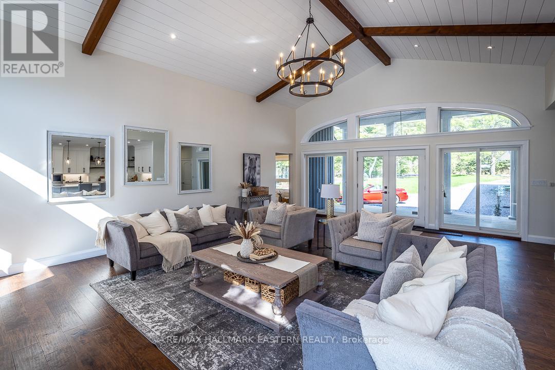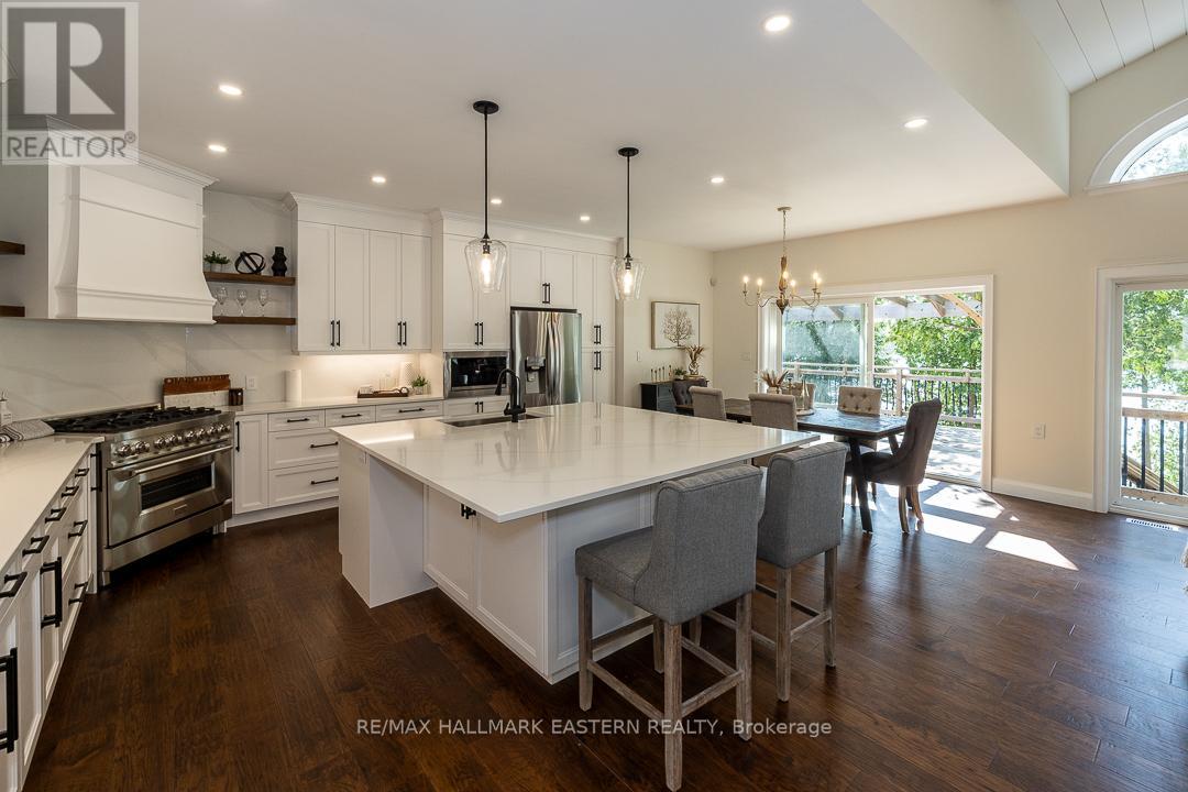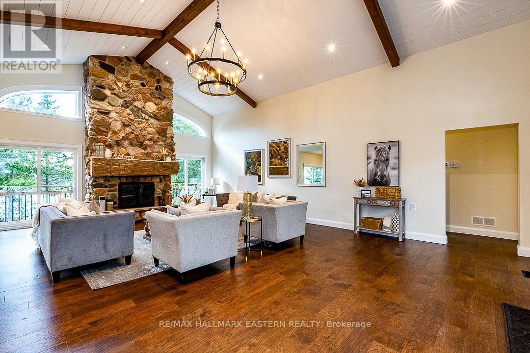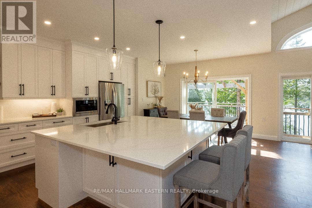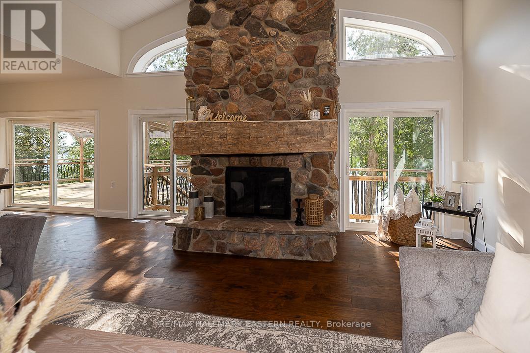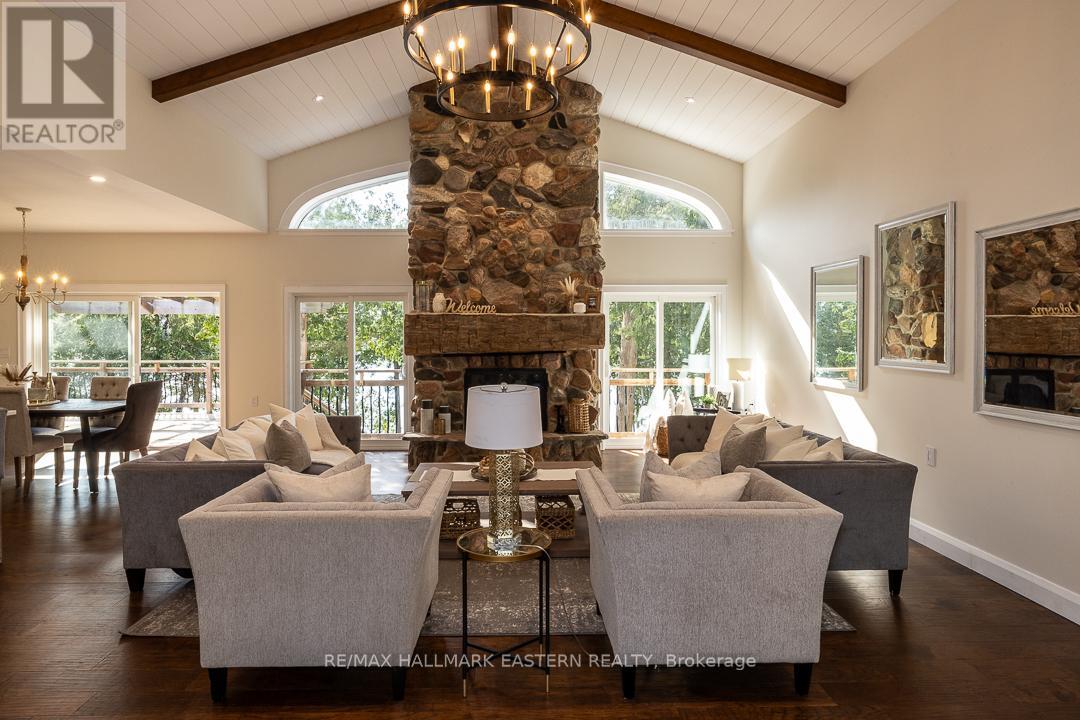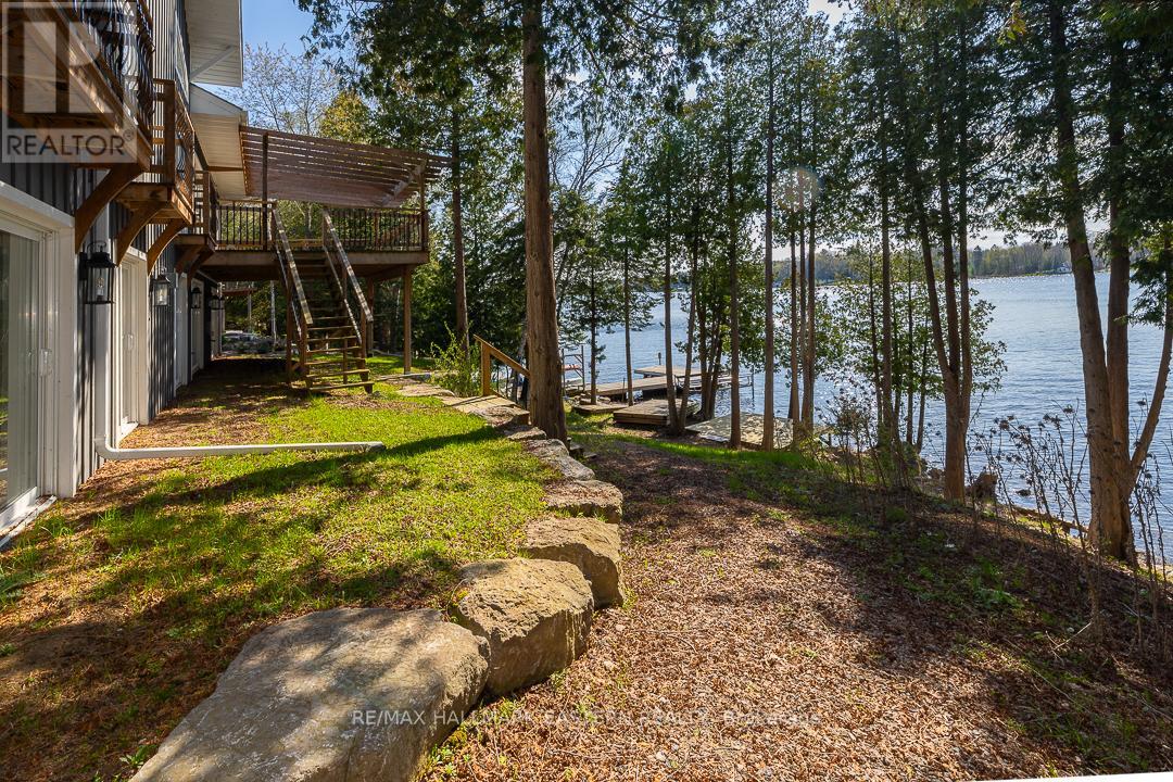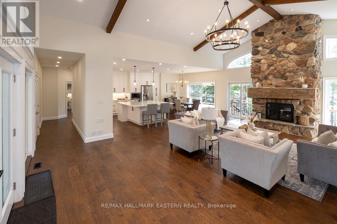 Immerse yourself in a fusion of nature and comfort on one of the most sought after locations on Balsam Lake, "Indian Point Rd." Fresh, new on trend interior with wood, stone and a clean white palette to suit all styles. 5 Bed/4.5 Baths, including a fabulous split floor plan. Main floor primary suite, laundry, great room with soaring ceilings, floor to ceiling fieldstone fireplace, open concept chefs kitchen outfitted with impressive quartz island, 6 burner gas range, all overlooking stunning water views. The lower level family room with lovely wet bar, oversized sauna and additional bedrooms offers plenty of room for family and friends. Fully backed up generator, electric car plug in, room for all the toys, in the 6 bay oversized garage, and just 1.5 hrs to GTA . Walk on trials, skate on the frozen lake, snowmobile into pristine forests, kayak, tennis, fishing, swim and so much more. This spacious beauty is ready to go for the waterfront dream you have been waiting for. (id:51158)
