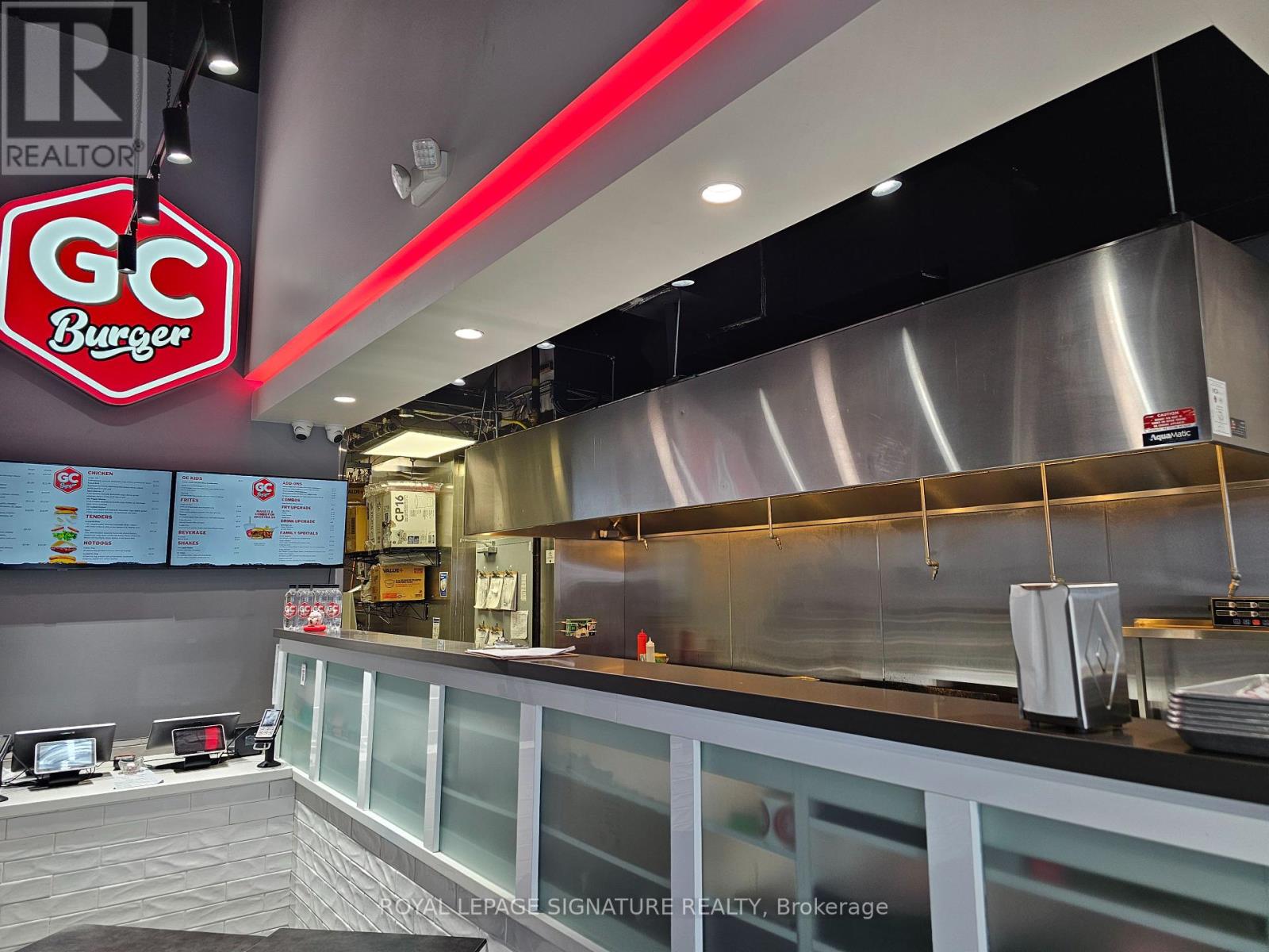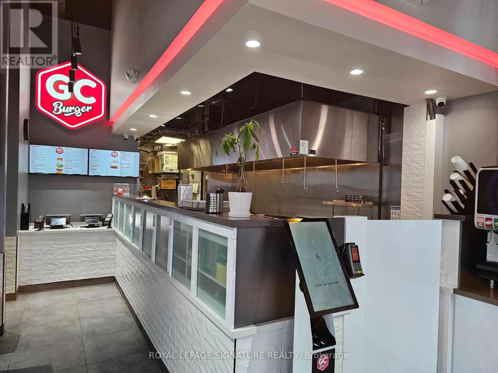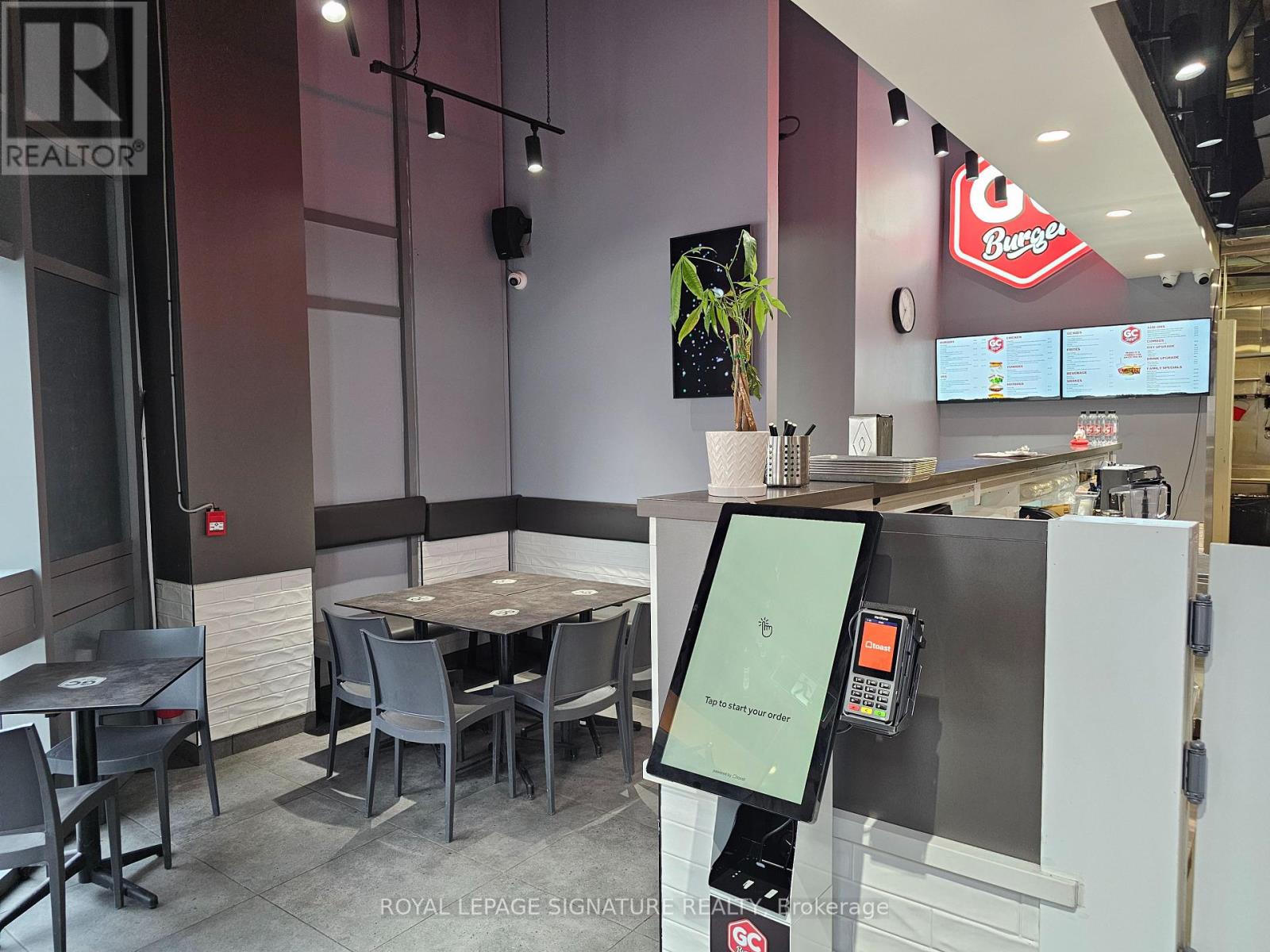 GC Burger franchise location in the heart of the University District in Kitchener-Waterloo.Situated at the base of 308 King, a newly built condo tower dedicated to student accommodation,this is a prime location for high foot traffic and visibility. The unit features 1,073 sq ft with a modern QSR layout, seating for 16 inside, plus a patio with additional seating. Equipped with a massive 16-ft commercial hood, two walk-in fridges, and a full line of new equipment this turnkey setup is ideal for efficient operations. Attractive lease rate of $5,487 gross rent including TMI with 4 + 5 years remaining. Full training to be provided pending franchisor approval, with royalties set at 6% + 2.5%. Please do not go direct or speak to staff. (id:51158)