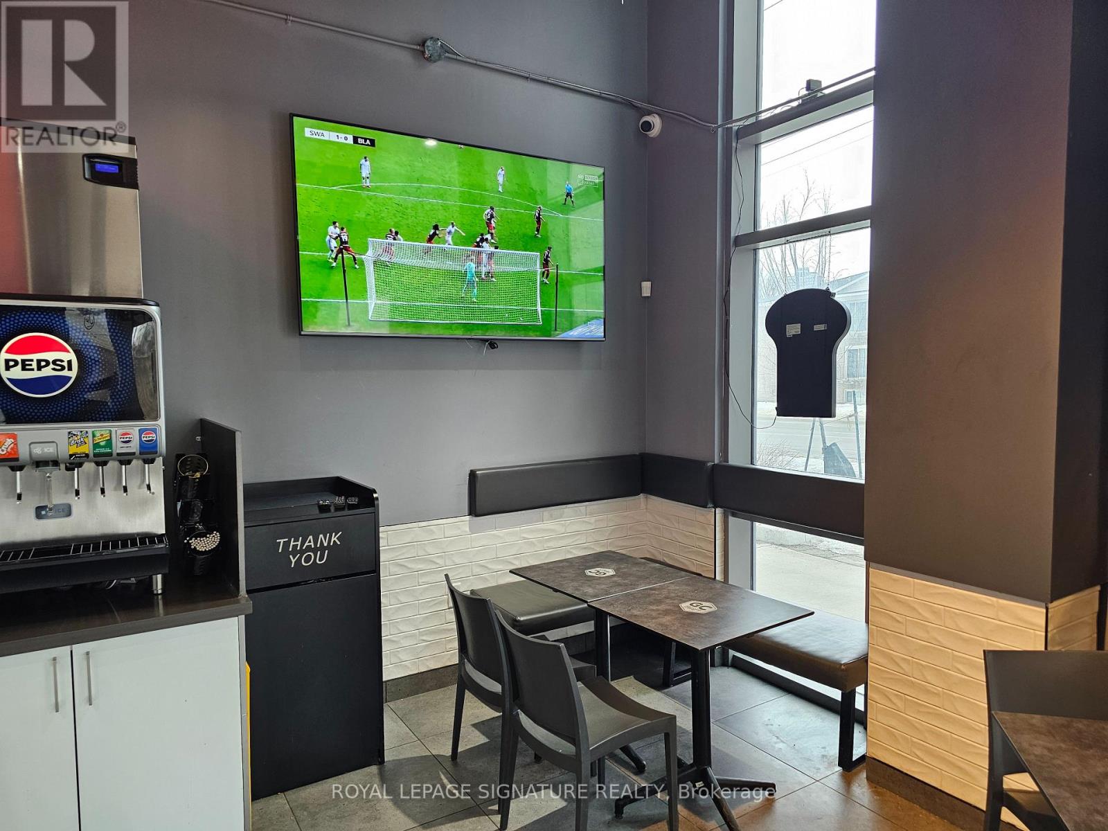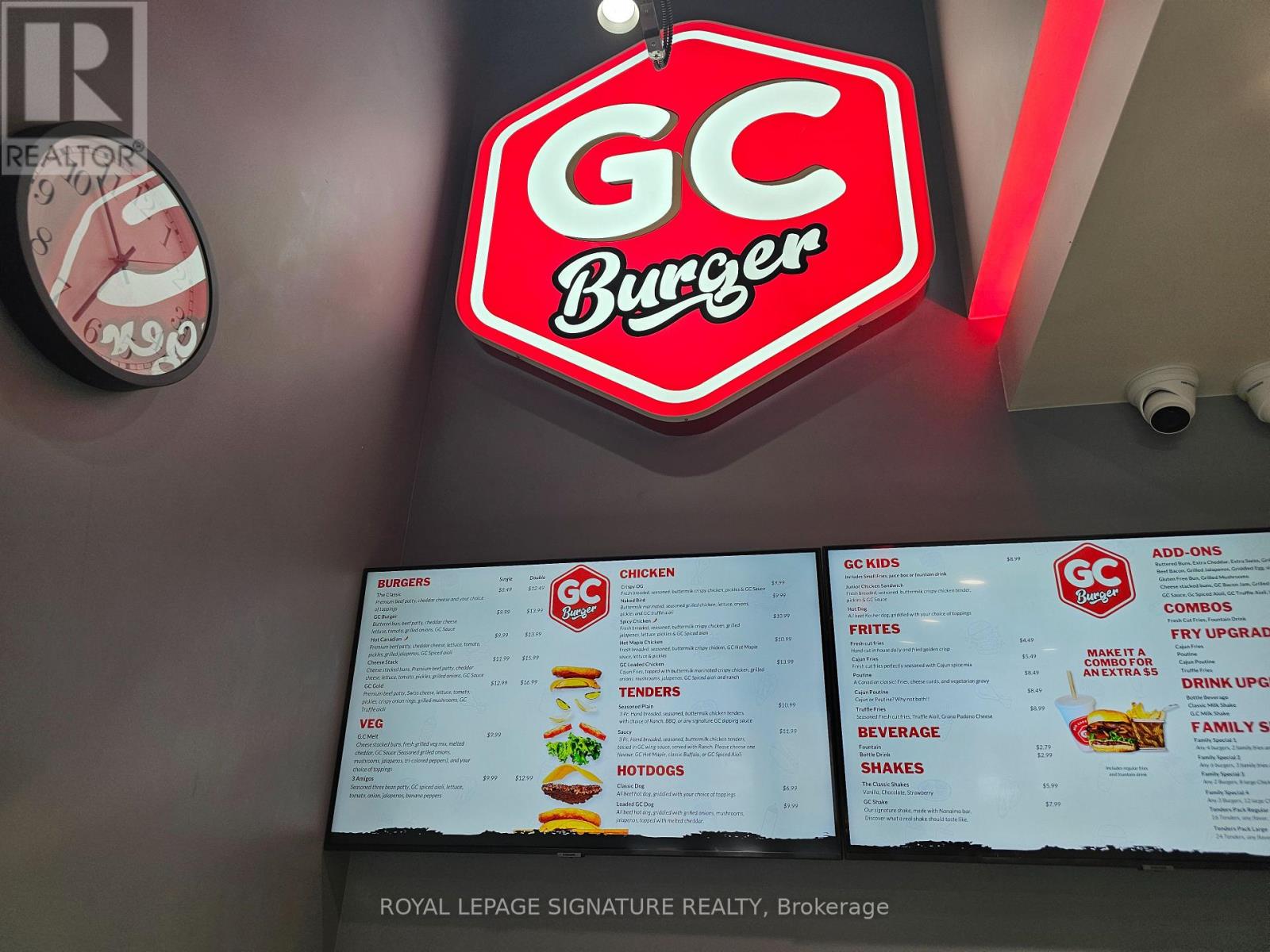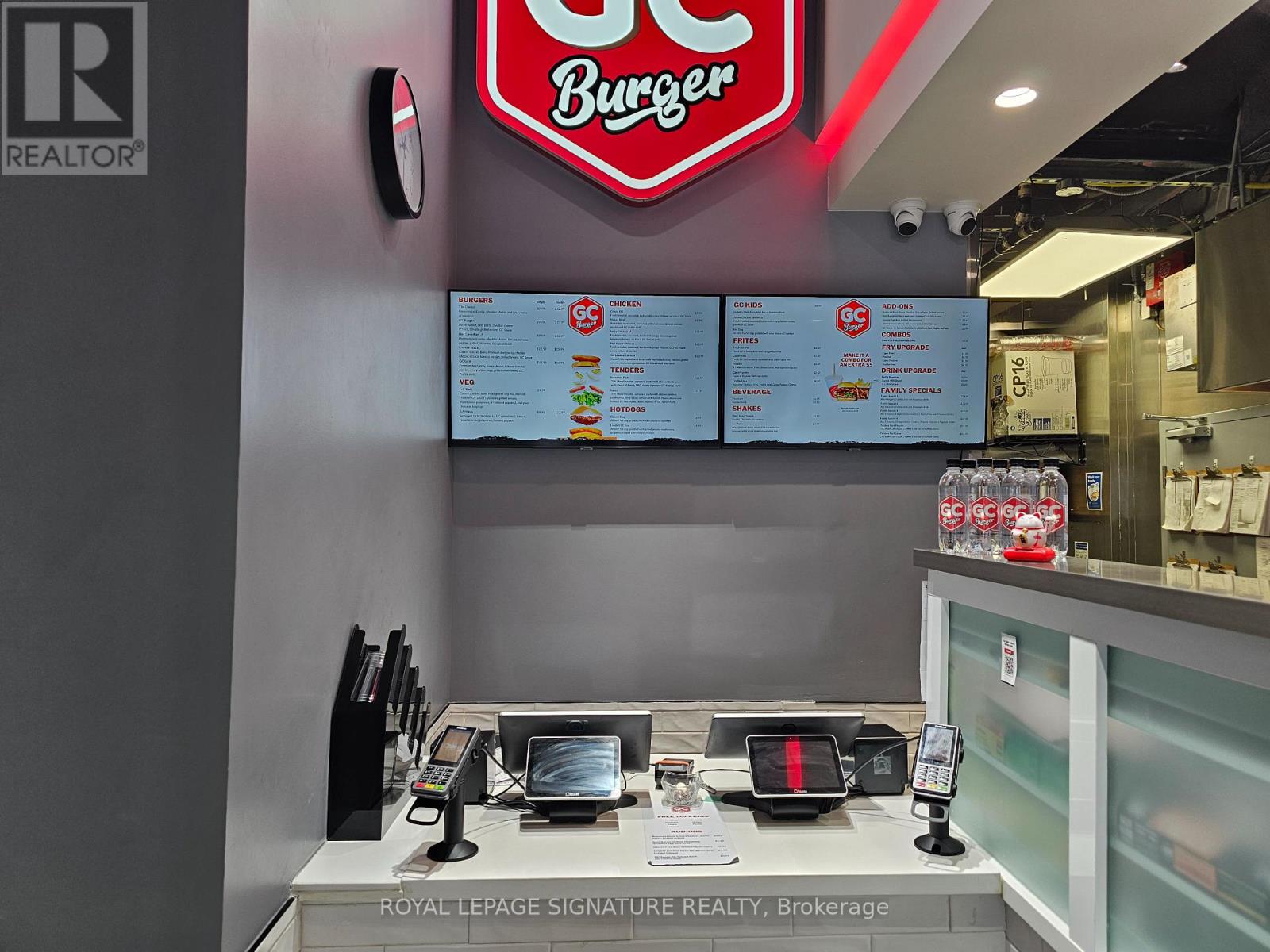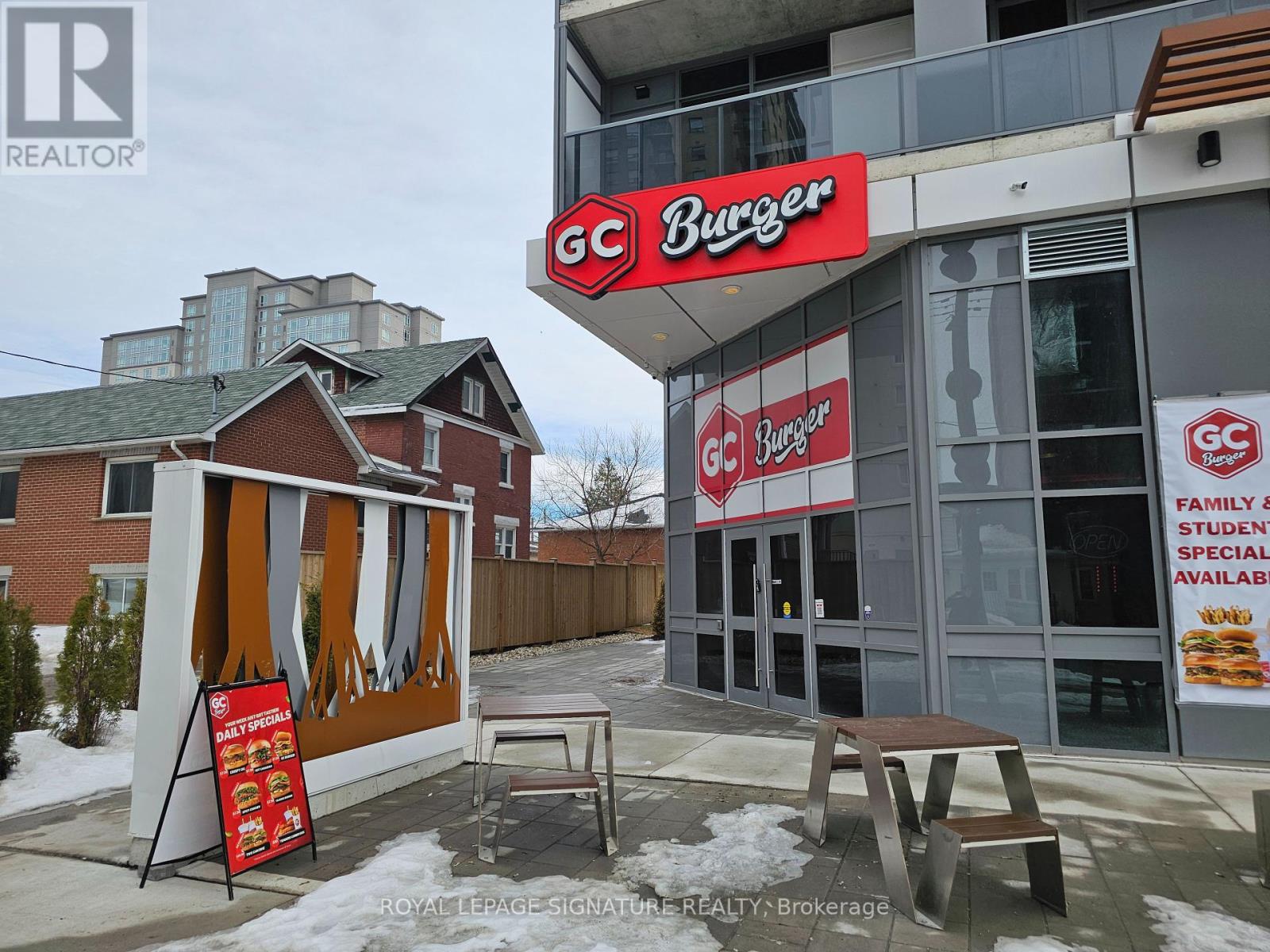 GC Burger franchise location in the heart of the University District in Kitchener-Waterloo.Situated at the base of 308 King, a newly built condo tower dedicated to student accommodation,this is a prime location for high foot traffic and visibility. The unit features 1,073 sq ft with a modern QSR layout, seating for 16 inside, plus a patio with additional seating. Equipped with a massive 16-ft commercial hood, two walk-in fridges, and a full line of new equipment this turnkey setup is ideal for efficient operations. Attractive lease rate of $5,487 gross rent including TMI with 4 + 5 years remaining. Full training to be provided pending franchisor approval, with royalties set at 6% + 2.5%. Please do not go direct or speak to staff. (id:51158)