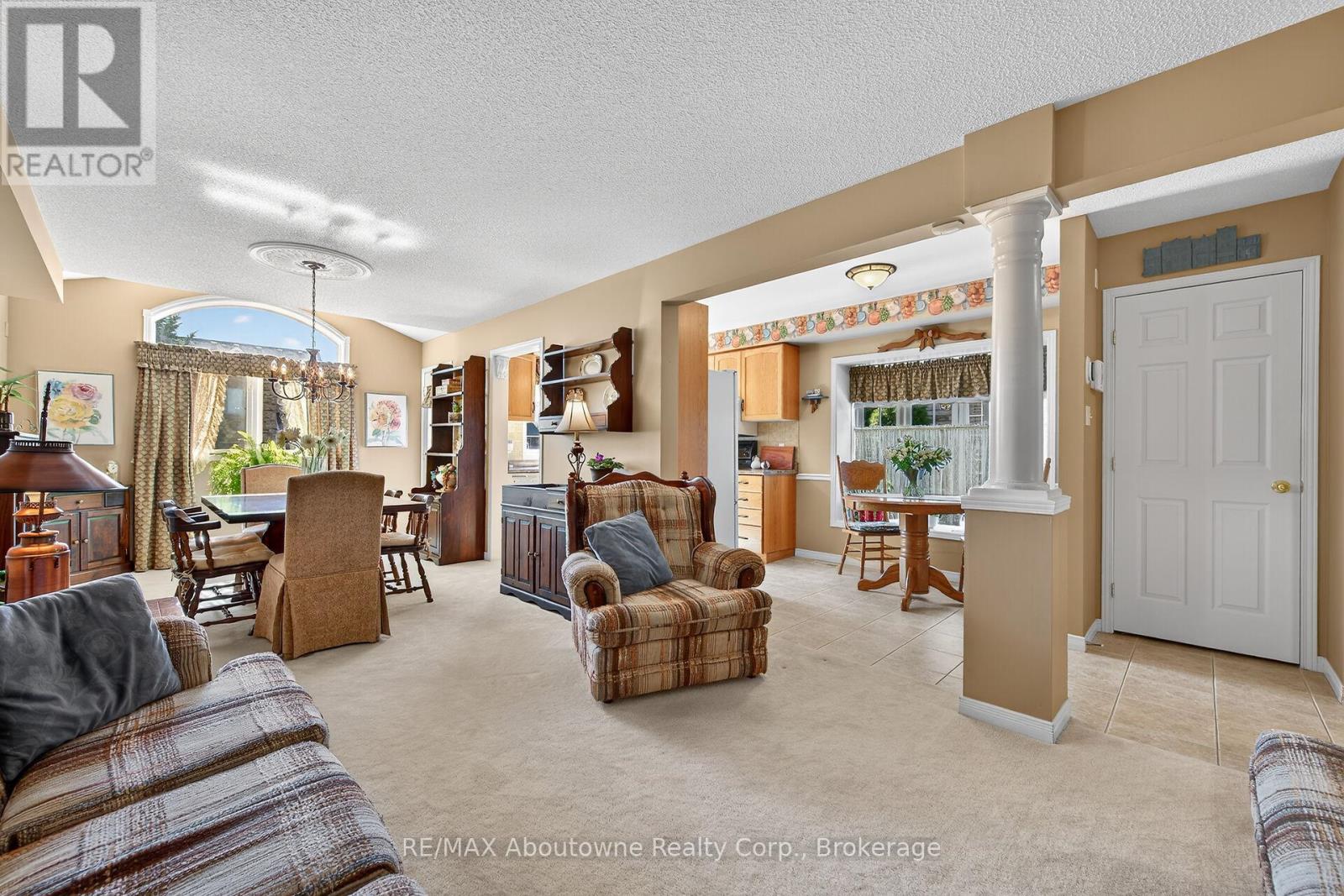 Welcome to this well-maintained freehold 2-bedroom, 2.5 bath townhouse, perfectly situated below the scenic escarpment and just moments from schools, parks, the lake, wineries, shopping, restaurants and quick Q.E.W. access. Proudly owned by the original owner, this end-unit home affords abundant natural light from the large windows throughout. The open- concept main floor features a bright kitchen with breakfast area, an extended dining room with vaulted ceiling and walkout to the back deck, and a comfortable living room - ideal for both everyday living and entertaining. Warm hardwood stairs lead to the upper level where you will find 2 generous-sized bedrooms, including the principal suite with a walk-in closet and 4-piece ensuite showcasing a separate shower and relaxing soaker tub. A second 4-piece bath, convenient second-floor laundry and a versatile media loft/family room complete the level. The professionally finished lower level provides additional living space with a spacious recreation room. The furnace room has the added convenience of a laundry sink. There is a rough-in for central vacuum. Outdoors - enjoy a fully fenced backyard highlighted by mature gardens with plenty of room to relax or entertain. There's no need to haul your lawnmower through the home with side access to the yard. Useful inside entry from the single-car garage. Exposed aggregate driveway provides parking for four additional cars. Updates include roof shingles (2017), furnace (2019), central air (2021) some windows (2021).This home blends comfort with convenience and provides a solid foundation with wonderful potential to personalize and decorate to suit your style - all in a quiet sought-after Grimsby neighbourhood. (id:51158)