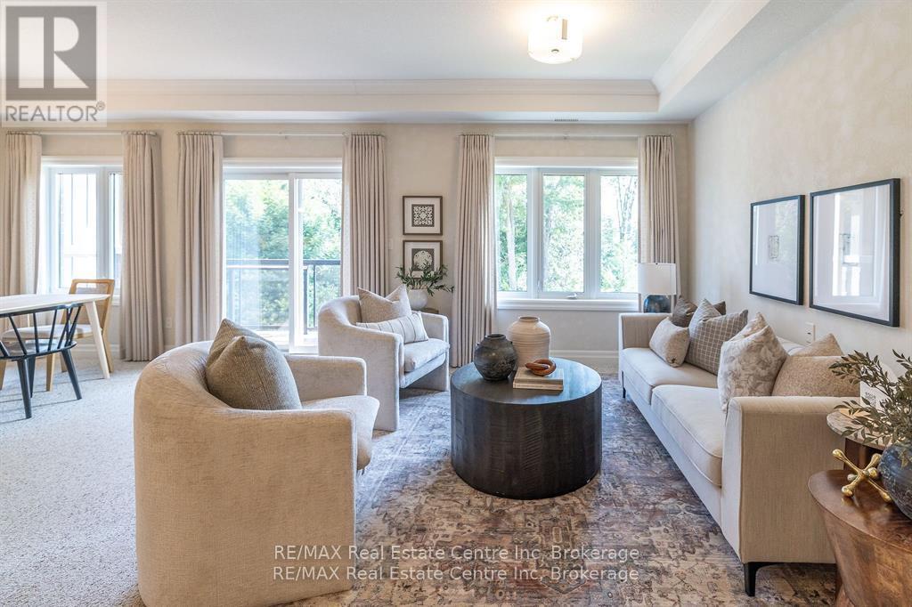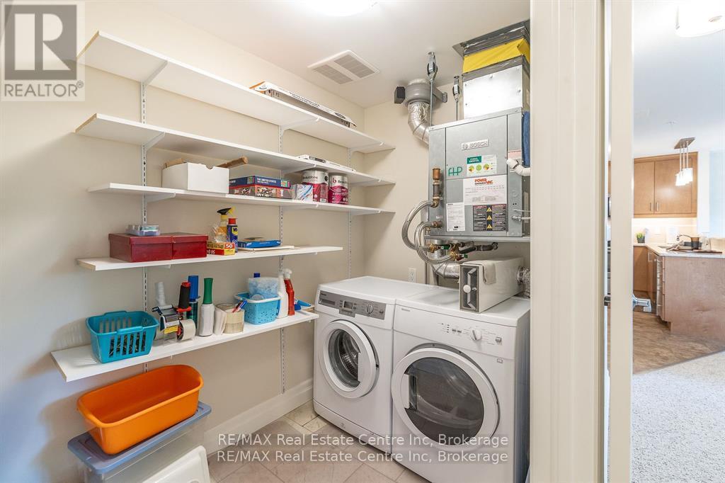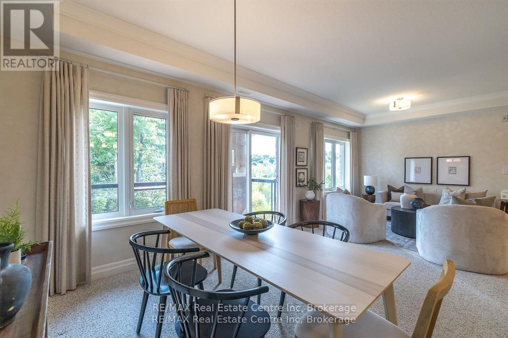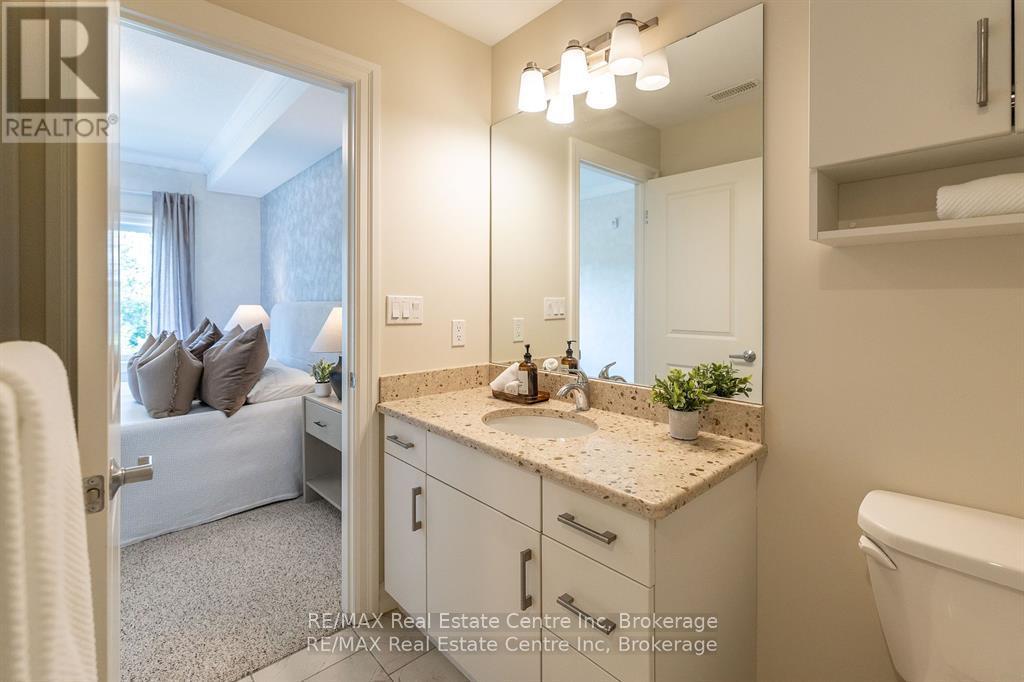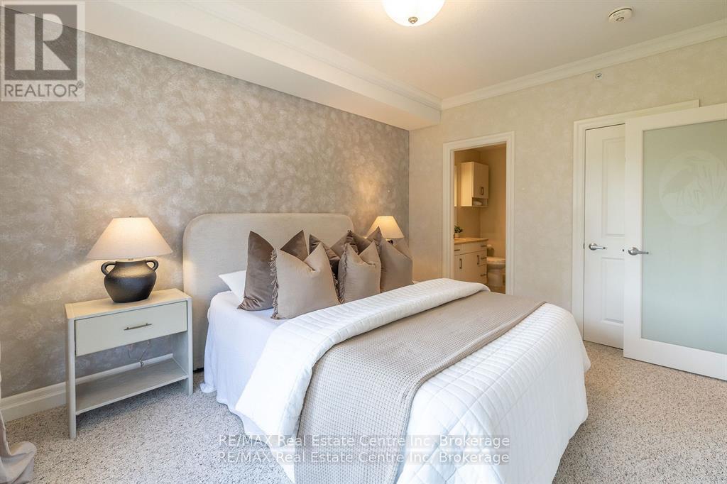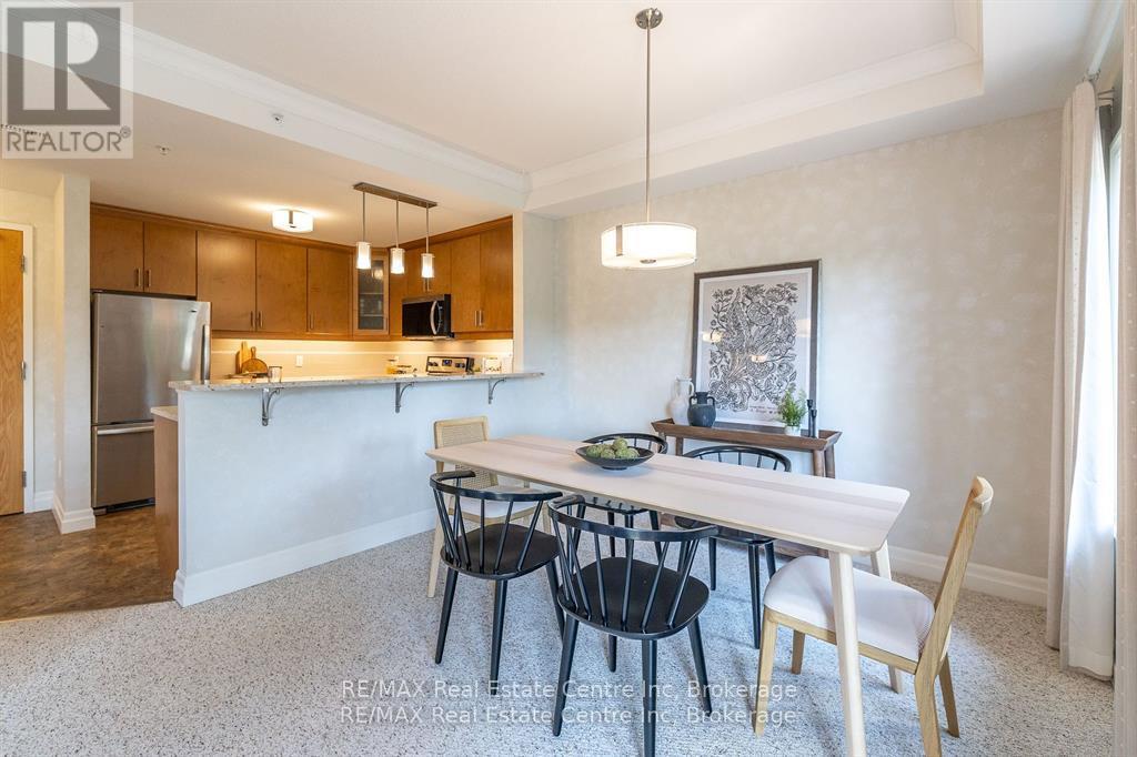 Welcome to 310-23 Stumpf Street, Eloraa bright and spacious 2-bedroom, 2-bathroom condo tucked away in a quiet setting with serene greenspace views. Located in one of Eloras most sought-after buildings, this unit combines comfort, community, and convenience.Inside, youll find an open-concept layout designed for everyday living and entertaining. The modern kitchen is a true highlight, featuring cork flooring, quartz countertops, stainless steel appliances, and a functional eat-up bar. It seamlessly connects to the dining area and sunlit living room, where sliding doors open to your private patio overlooking nature.The primary suite boasts its own ensuite, while the second bedroom provides versatile space for guests, a home office, or both. Added conveniences include in-suite laundry, generous storage, and the bonus of an owned underground parking space and locker.Residents also enjoy access to a large party room and a fully equipped fitness centreperfect for social gatherings or staying active.With downtown Elora just a short walk away, scenic trails and parks nearby, and the Grand River right across the street, this move-in-ready condo offers the perfect balance of village charm and natural beauty. Whether youre downsizing, investing, or searching for a peaceful place to call home, this one truly has it all. (id:51158)