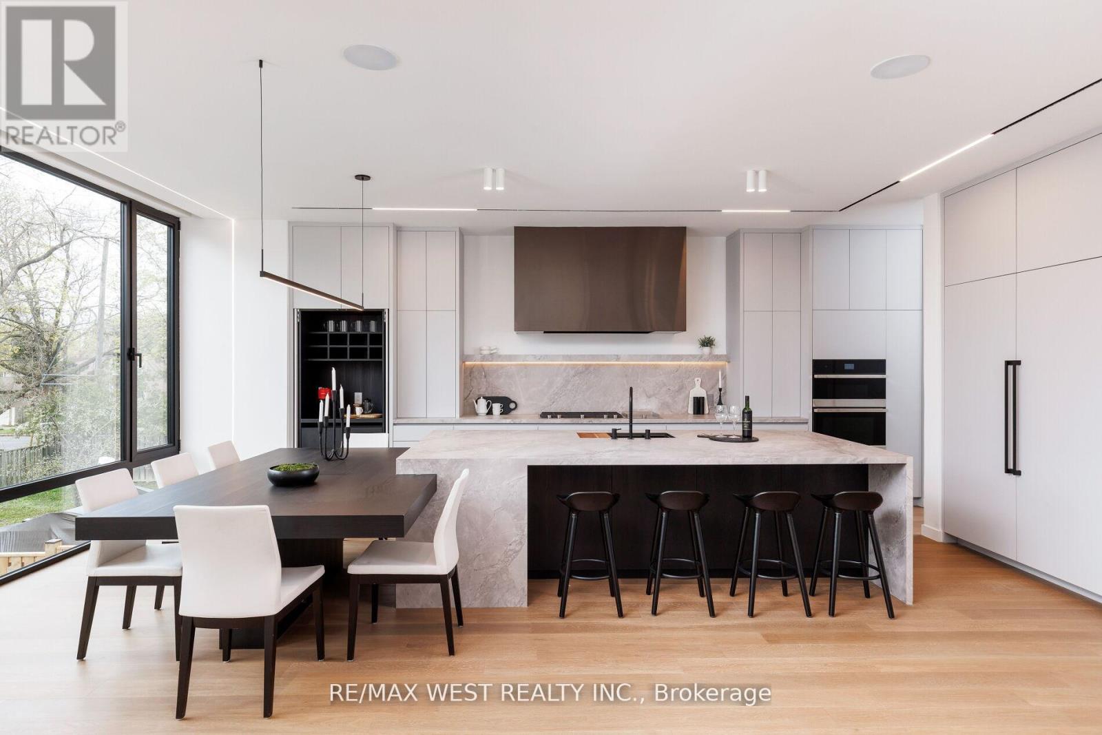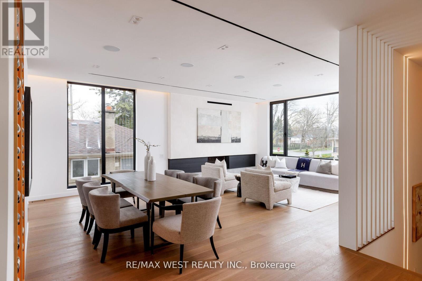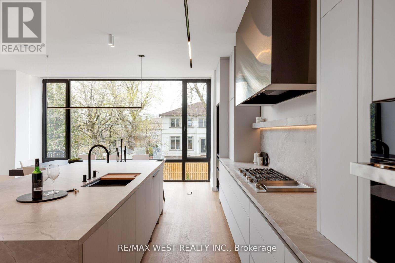 Setting a new standard for luxury living in Willowdale, this extraordinary home, built on a 50 ft x 132 ft lot with 6000+ sqft of luxury living space, showcases meticulous design, craftsmanship, and an extraordinary attention to detail. Soaring 14 ft European pivot entry door. Refined foyer dressed in modern paneling that is artfully illuminated with integrated LED lighting. Spacious principal rooms with seamless flow. A formal dining room and a generously sized living area featuring floor to ceiling windows, built-in custom cabinetry, built in speakers, and a gas fireplace decorated by a stunning blend of marble, natural oak wood, and Italian plaster. The Chefs Kitchen boasting custom cabinetry, engineered stone countertops, oversized island with an integrated breakfast table and Jenn-Air appliances package that includes a noteworthy 53 gas cooktop with 6 burners and a griddle. The equally inviting family room includes integrated speakers, premium Italian lime plaster wall finishes, and a 14 ft x 10 ft patio door that connects you to the outdoor deck. A secondary kitchen for everyday use is cleverly nested across the butler's pantry. The grand study provides the perfect space for a library or home office. Upstairs, the primary suite offers a luxurious retreat with a hotel inspired ensuite. Three additional spacious bedrooms on this floor each featuring private ensuites, WICs and built-in study areas. A convenient laundry room completes the second floor. In a class of its own, the lower level boasts unprecedented 16 ft ceilings, heated floors, and a host of premium features including a walk-out courtyard, a beautifully crafted dry sauna, a home gym, a second laundry room, a guest bedroom, and a powder room with direct access to the courtyard. State-of-the-art technology and home automation are integrated throughout the entire residence. 10ft ceilings and main and second floor. (id:51158)