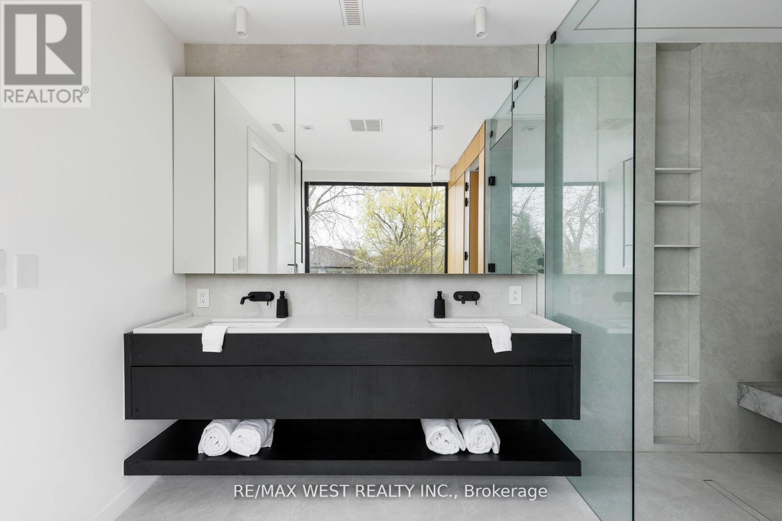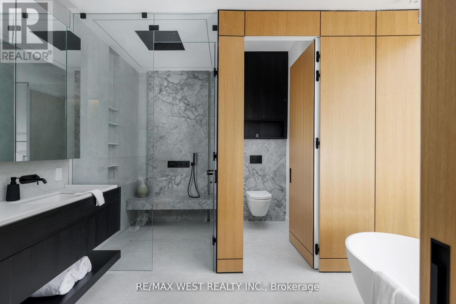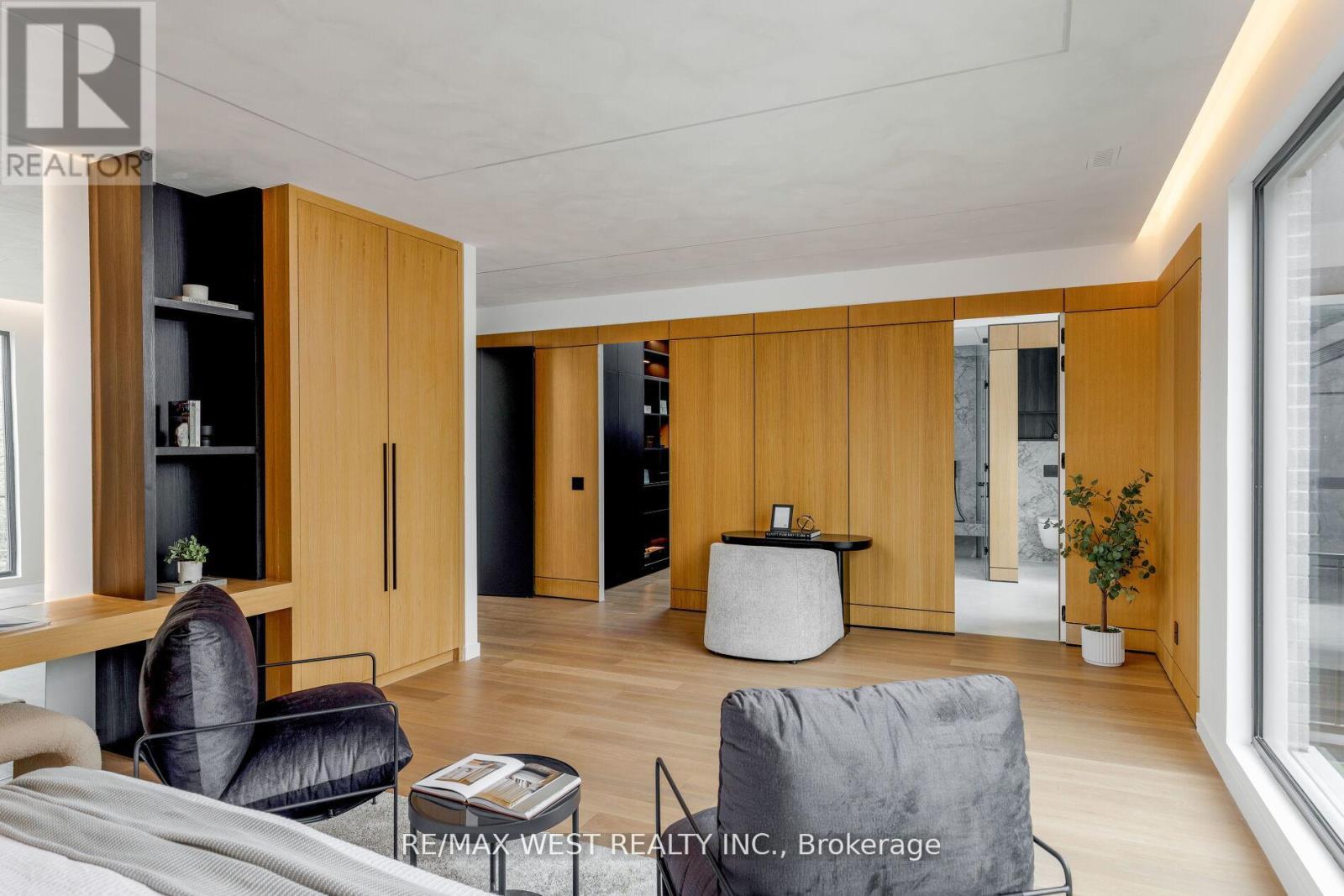 Setting a new standard for luxury living in Willowdale, this extraordinary home, built on a 50 ft x 132 ft lot with 6000+ sqft of luxury living space, showcases meticulous design, craftsmanship, and an extraordinary attention to detail. Soaring 14 ft European pivot entry door. Refined foyer dressed in modern paneling that is artfully illuminated with integrated LED lighting. Spacious principal rooms with seamless flow. A formal dining room and a generously sized living area featuring floor to ceiling windows, built-in custom cabinetry, built in speakers, and a gas fireplace decorated by a stunning blend of marble, natural oak wood, and Italian plaster. The Chefs Kitchen boasting custom cabinetry, engineered stone countertops, oversized island with an integrated breakfast table and Jenn-Air appliances package that includes a noteworthy 53 gas cooktop with 6 burners and a griddle. The equally inviting family room includes integrated speakers, premium Italian lime plaster wall finishes, and a 14 ft x 10 ft patio door that connects you to the outdoor deck. A secondary kitchen for everyday use is cleverly nested across the butler's pantry. The grand study provides the perfect space for a library or home office. Upstairs, the primary suite offers a luxurious retreat with a hotel inspired ensuite. Three additional spacious bedrooms on this floor each featuring private ensuites, WICs and built-in study areas. A convenient laundry room completes the second floor. In a class of its own, the lower level boasts unprecedented 16 ft ceilings, heated floors, and a host of premium features including a walk-out courtyard, a beautifully crafted dry sauna, a home gym, a second laundry room, a guest bedroom, and a powder room with direct access to the courtyard. State-of-the-art technology and home automation are integrated throughout the entire residence. 10ft ceilings and main and second floor. (id:51158)