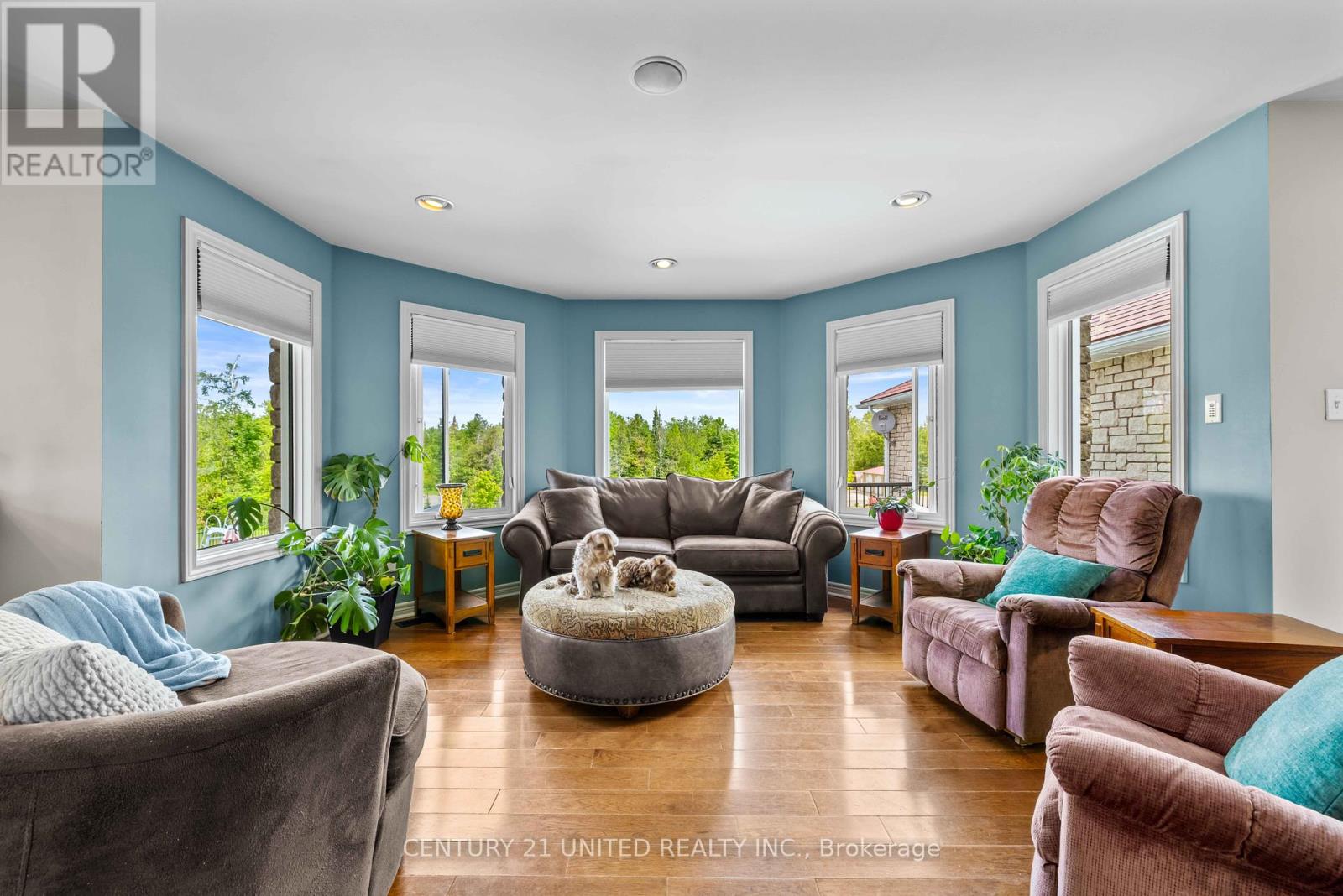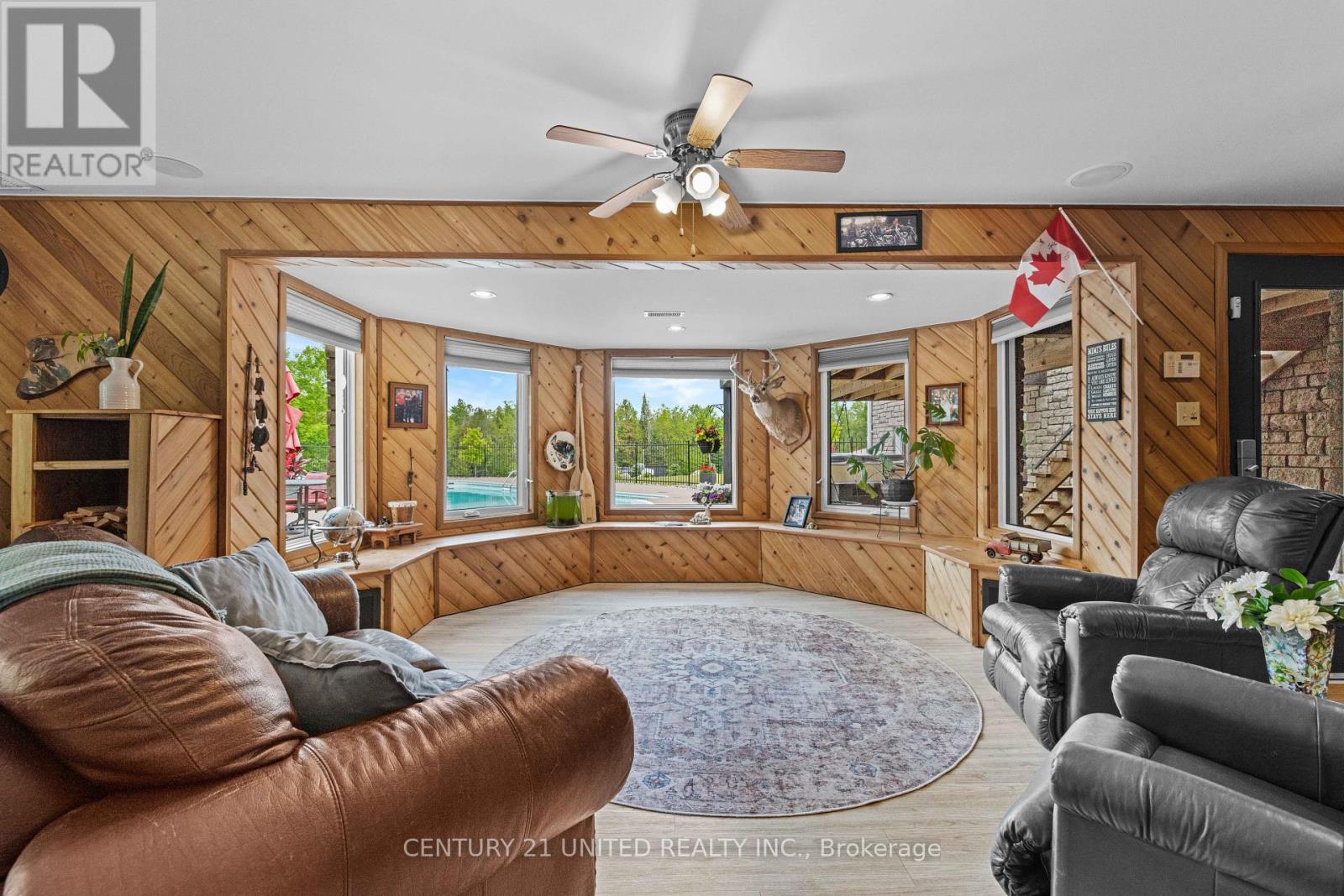 Welcome to this stunning custom-built home in the heart of Ennismore! Set amidst extensive, professionally designed landscaping, this property offers a private oasis for relaxation and entertaining. Step outside to your own resort-style retreat featuring a large, fully gated inground pool, hot tub, and a charming pool house--ideal for summer gatherings or quiet evenings under the stars. The detached three-car garage provides ample space for vehicles, toys, and hobbies, while multiple RV hookups make hosting guests a breeze. Inside, the spacious layout boasts two separate family living areas, offering flexibility for both intimate family time and larger get-togethers. Fitness enthusiasts will appreciate the dedicated home gym, while the basement comes roughed-in for a granny suite with direct walkout access to the backyard--perfect for multi-generational living or potential income. With an abundance of parking and storage throughout, this home is designed to accommodate your every need. Whether you're seeking a peaceful sanctuary, an entertainers paradise or a space to work from home, this exceptional property truly has it all. (id:51158)