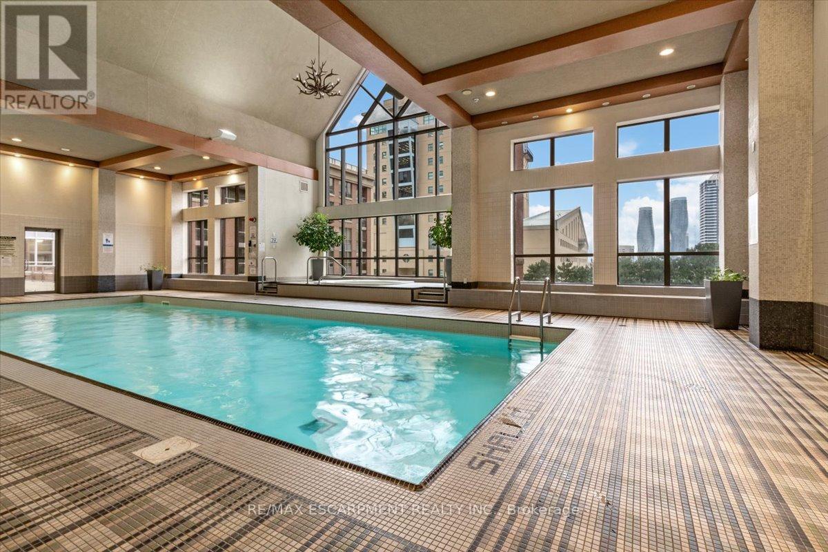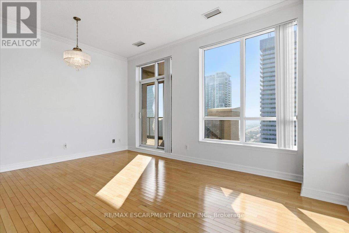 Luxurious Upper Penthouse with panoramic lake and city views. Bright and spacious 10 feet ceilings, 2-bedroom, 2-bath, 2 private balconies, upgraded flooring throughout, and an open-concept layout ideal for modern living. Enjoy a beautifully updated kitchen with stainless-steel appliances, new light fixtures, wood cabinetry and granite counters, plus upgraded bathrooms with new vanities. Located in the heart of Mississauga, steps to Square One, Celebration Square, Library, Cineplex, Sheridan College, YMCA, parks, and the bus terminal. The building offers 24/7 concierge and exceptional amenities including an indoor pool, whirlpool, sauna, fitness & weight rooms, party room, media/movie theatre, virtual golf, guest suites and more. Only 6 suites on the top floor, quiet, private, and rarely available. Main floor services include a walk-in clinic, dental office, pharmacy, coffee shop, 24/7 supermarket and hair salon. Truly executive living in the sky. (id:51158)
