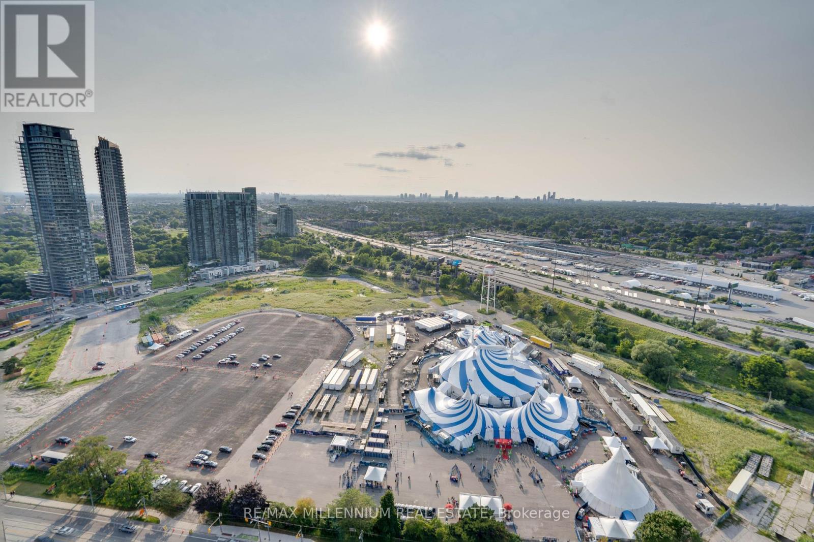 WELCOME TO LUXURIOUS LIVING AT LARGO WATERFRONT CONDOS! THIS OPEN CONCEPT, SPACIOUS, HIGH FLOOR, CORNER SW FACING UNIT WITH BREATHTAKING CITY AND LAKEVIEWS IS ONE RARE GEM. THIS 2 BEDROOM, 2 BATHROOM UNIT IS LOADED WITH UPGRADES INCLUDING BUT NOT LIMITED TO 11FT CEILINGS THROUGHOUT, FLOOR TO CEILING WINDOWS, HIGH QUALITY LAMINATE FLOORS, FULL-SIZE LAUNDRY UNITS, MODERN KITCHEN WITH CENTER ISLAND, COMPLETED BACKSPLASH & GRANITE COUNTERTOPS, STAINLESS STEEL APPLIANCES, A LARGE WRAP AROUND BALCONY WITH SPECTACULAR FEWS, AND MUCH MORE! LOCATED AT THE HEART OF MIMICO IN A VIBRANT NEIGHBOURHOOD LITERALLY STEPS THE THE WATERFRONT, PARKS, BOAT DOCKS, SHOPS, RESTAURANTS, PUBLIC TRANSIT, AND MORE! MINUTES AWAY TO QEW AND ONLY A 20 MINUTE STREET CAR RIDE AND 10 MINUTE DRIVE TO THE DOWNTOWN CORE! EXCEPTIONAL CONDO IDEAL FOR COUPLES AND FAMILIES.THIS FULLY AMENITIZED BUILDING HAS IT ALL! INDOOR POOL WITH JACUZZI, LARGE GYM WITH AEROBICS AND CYCLING ROOM, HOT SAUNA, CAR WASH, DOG WASH, CONCIERGE, VISITORS PARKING, BIKE STORAGE, GAMES ROOM, PARTY ROOM & MEDIA ROOM, AND MUCH MORE! (id:51158)
