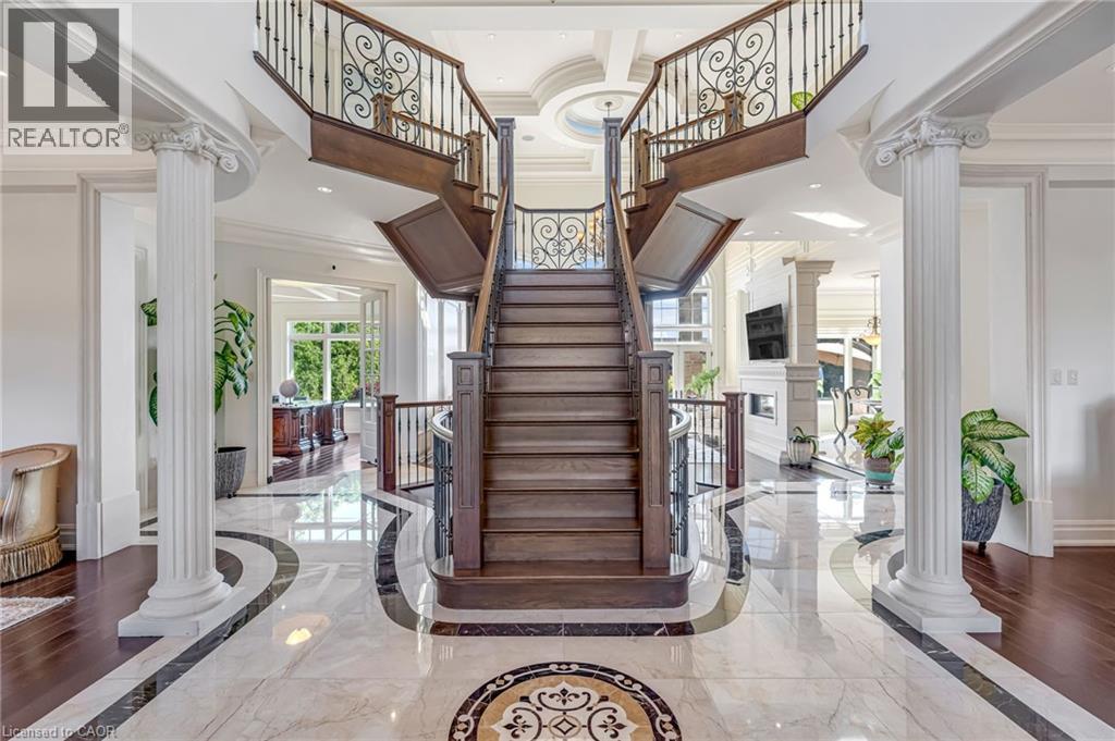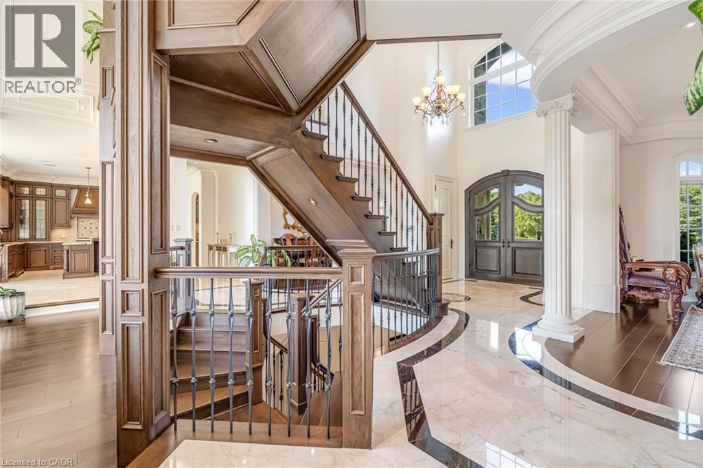 LUXURY| Captivating Setting | Custom Jay Robinson Estate | 1.95 Acres of Refined Living | 5 Bed | 6 Bath. Custom-built estate by Jay Robinson. Spanning nearly 7,500 sq. ft. of meticulously crafted living space, unmatched blend of luxury, comfort, & privacy. Nestled amidst conservation lands & scenic horse farms. Inside features: soaring 18-foot vaulted ceilings, a dramatic limestone feature wall, custom millwork, complete-home Sony sound system perfect for entertaining or quiet evenings in. The chef-inspired gourmet kitchen is equipped w/premium appliances by Wolf | Liebherr | Marvel |Miele | Fisher & Paykel. The luxurious primary suite features dual walk-in closets, spa-like ensuite, & private balcony overlooking tranquil countryside vistas. Designed for year-round efficiency & comfort, the home inc. dual furnaces, A/C units, wells, hot water tanks, triple sump pump system w/ battery backup. A Generac generator- 20KW providing full-home power assurance w/ a 200-amp panel. Oversized 3-car garage complete w/2- EV chargers, reflecting the property's commitment to modern sustainability. Outdoors, enjoy a resort-style pool complete w/built-in lazy river & cascading waterfall. Swim spa hot & professionally landscaped gardens. A basketball pad is perfect for recreational use & potential retrofit for multi-sport play, inc. Pickleball. Night-lit gardens w/ water feature further elevate the ambiance. Cabana w/ 5-piece bath, built-in BBQ, & dedicated al fresco dining area. Recreational amenities include a mini putt golf course & expansive open space designed for entertaining. The lower level offers a separate walk-up entrance and is primed for customization with rough-ins for a kitchen and 2- bathroom is ideal for a future in-law suite or guest retreat. Potential for an elevator installation. This exceptional rural estate offers complete privacy, timeless style, a true resort-like lifestyle, minutes from top-tier amenities such as Costco & renowned Bruce Trail. (id:51158)