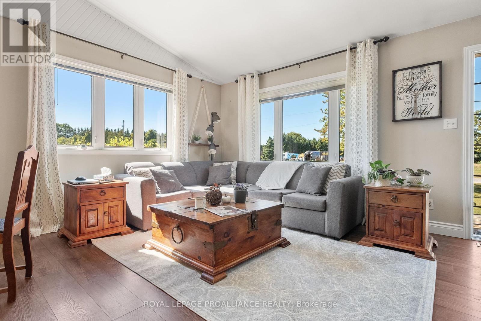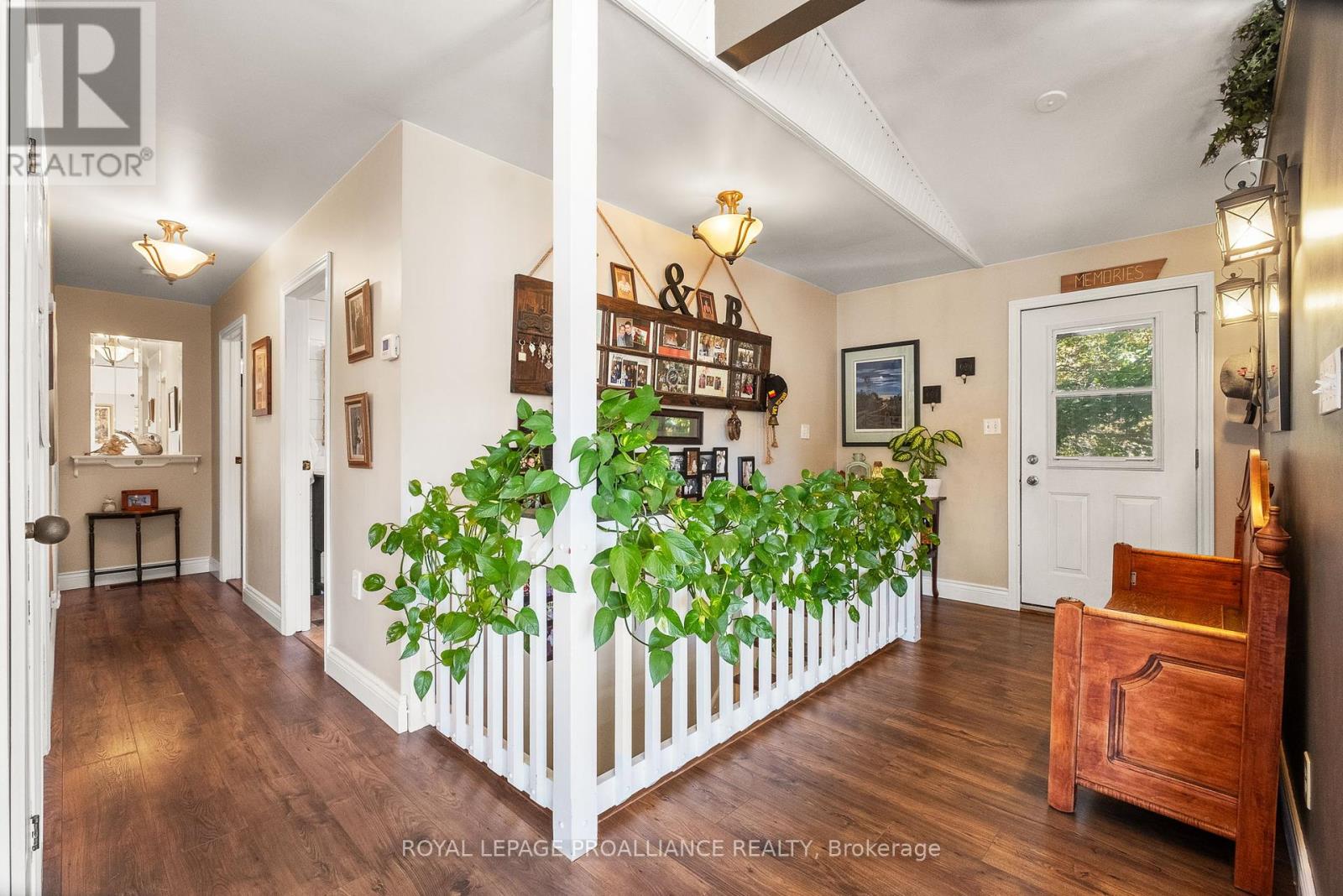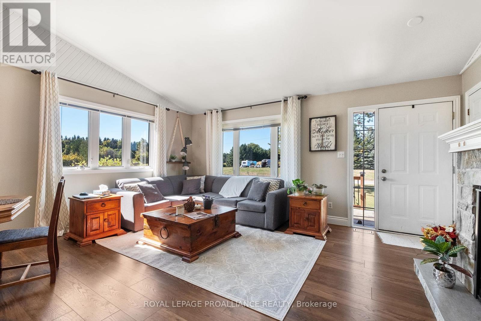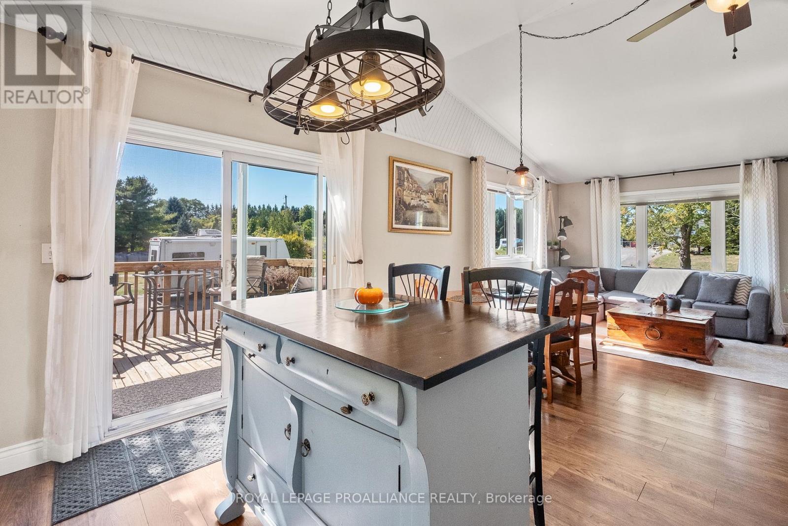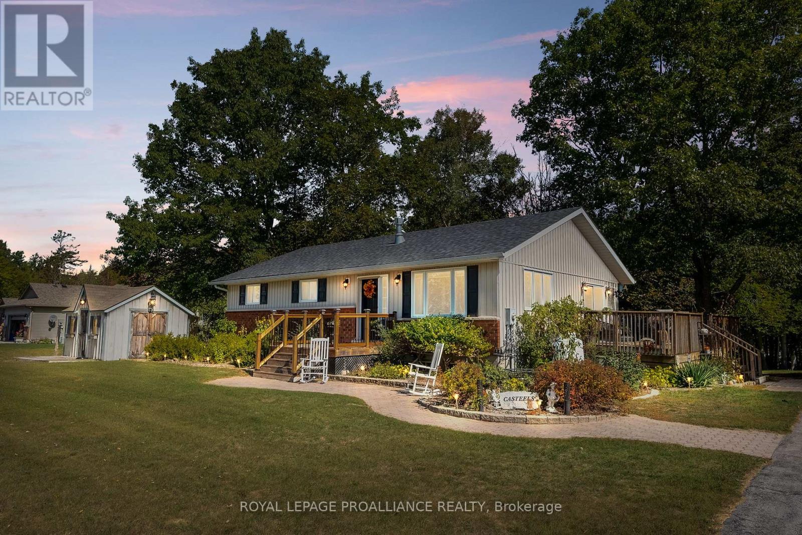 Welcome to 313 Peter's Road in Cramahe. This well-kept raised bungalow sits on a beautifully manicured 1-acre lot, offering both comfort and flexibility for todays lifestyle. The main level features bright living and dining spaces, a functional kitchen, and three generous bedrooms including a spacious primary with walkout to the deck. Large windows throughout fill the home with natural light and frame views of the surrounding property. The finished lower level is designed with versatility in mind, complete with a second kitchen, additional bedrooms, full bathroom, and walkout to the backyard. Whether you're seeking space for extended family, a private in-law suite, or a multigenerational setup, this home adapts to your needs with ease. Outdoors, the property truly shines. A large deck provides the perfect setting for entertaining or quiet evenings under the trees, while the expansive yard offers space for gardens, play, or simply enjoying nature. The huge detached two-car garage and workshop adds incredible utility, ideal for hobbyists, storage, or a home-based business. Set in a peaceful country location just minutes to the 401 and nearby town amenities, this property delivers the best of both worlds: privacy and space with the convenience of easy access to everything you need. A well-cared-for home, ready to welcome its next chapter. (id:51158)
