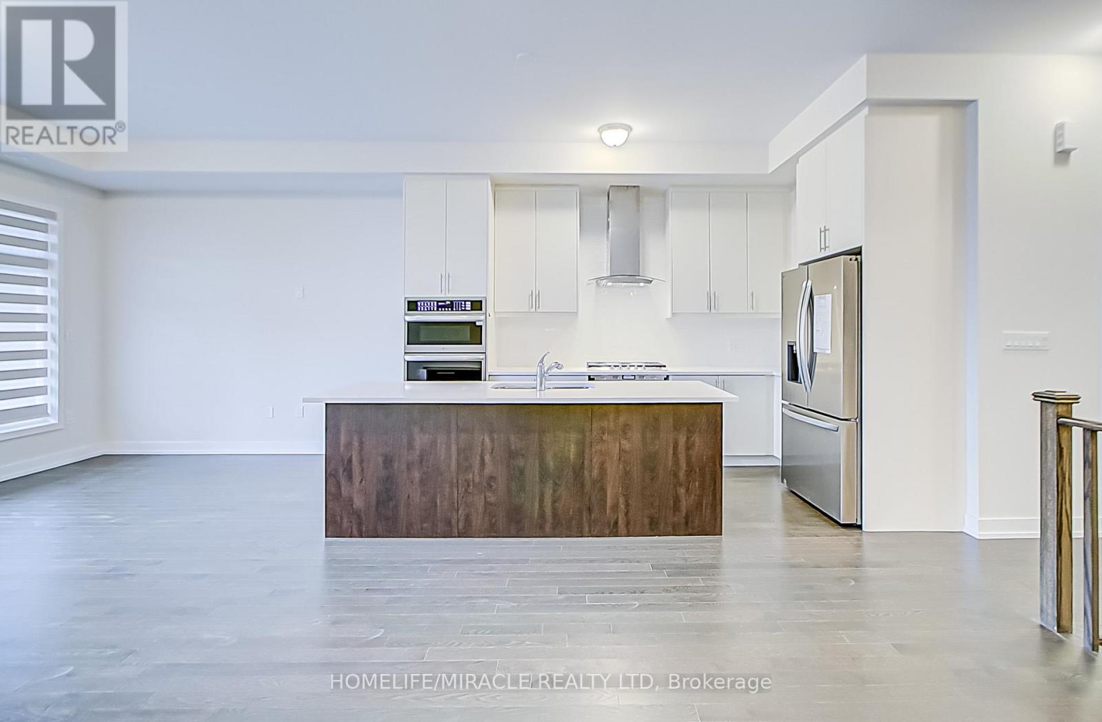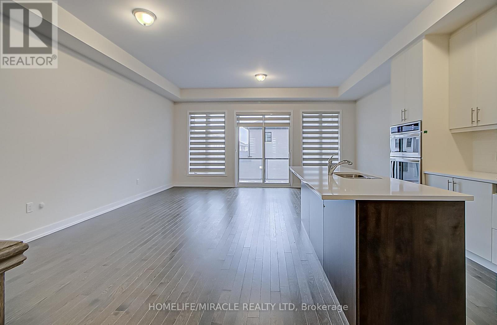 Gorgeous townhome (2,360 sq. ft) facing 4-acre park located in the family friendly community of Joshua Creek. This home features hardwood throughout, countless upgrades including quartz counters, undermount sinks, luxurious vanities, high ceilings (10 ft. on main and 9 ft. on upper) and an elegant oak staircase. Chef's kitchen features B/I Stainless Steel appliances and extended upper cabinets. Primary bedroom has a 5 pc. spa-like ensuite with double vanity, freestanding tub and standing glass shower. Main floor has separate living and family rooms, along with an office. Ground floor is above grade and features another bedroom and an ensuite. Lots of parking with a double car garage and 2 spots on the driveway. Upstairs Laundry. Basement is unfinished for additional storage. Two sprawling terraces for entertaining friends and family. Unbeatable location close to highways, top schools, grocery, restaurants etc. (id:51158)
