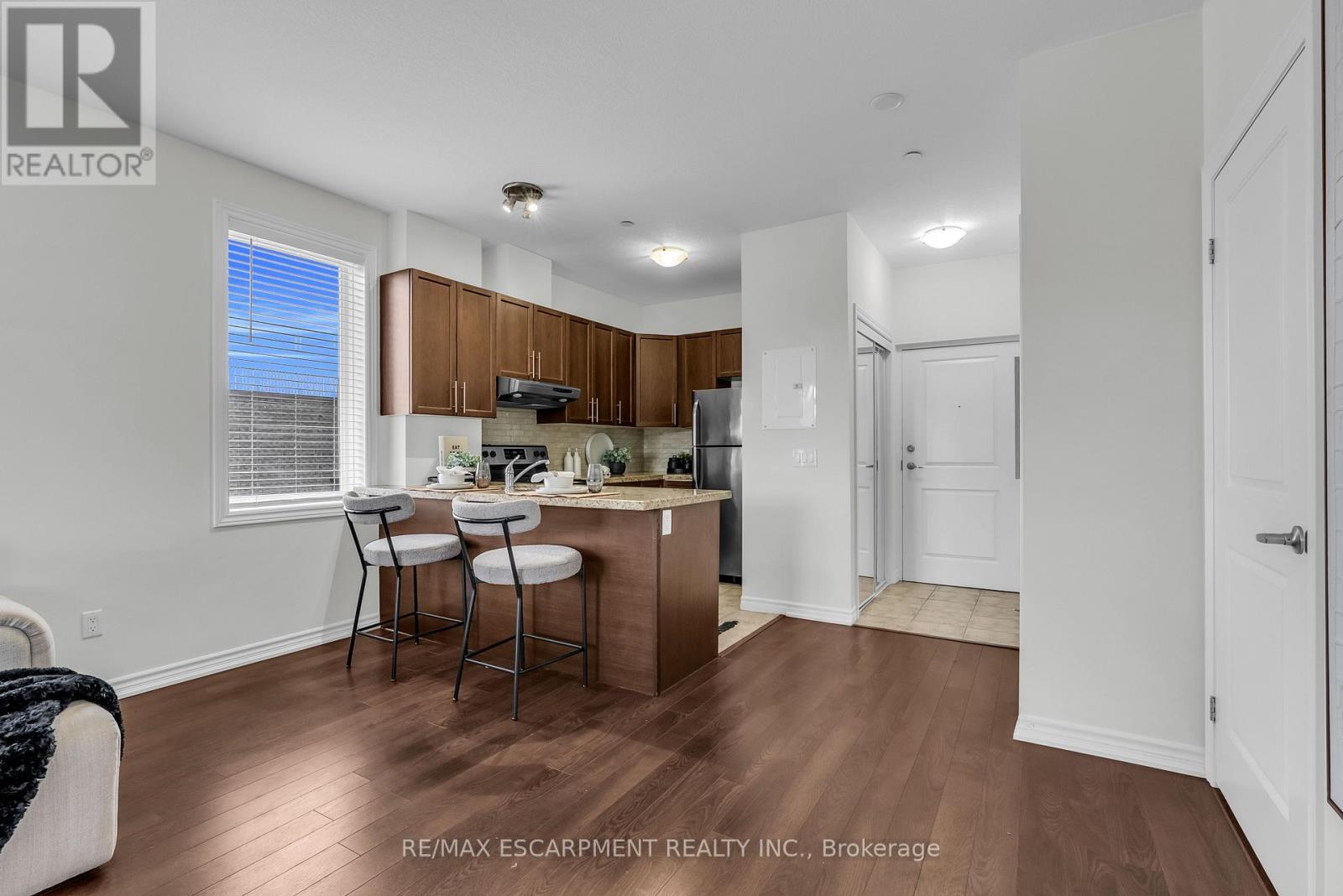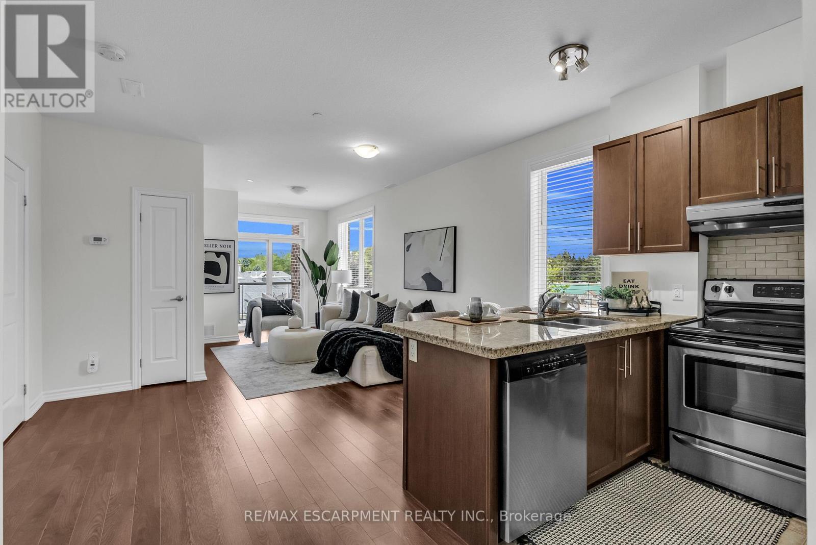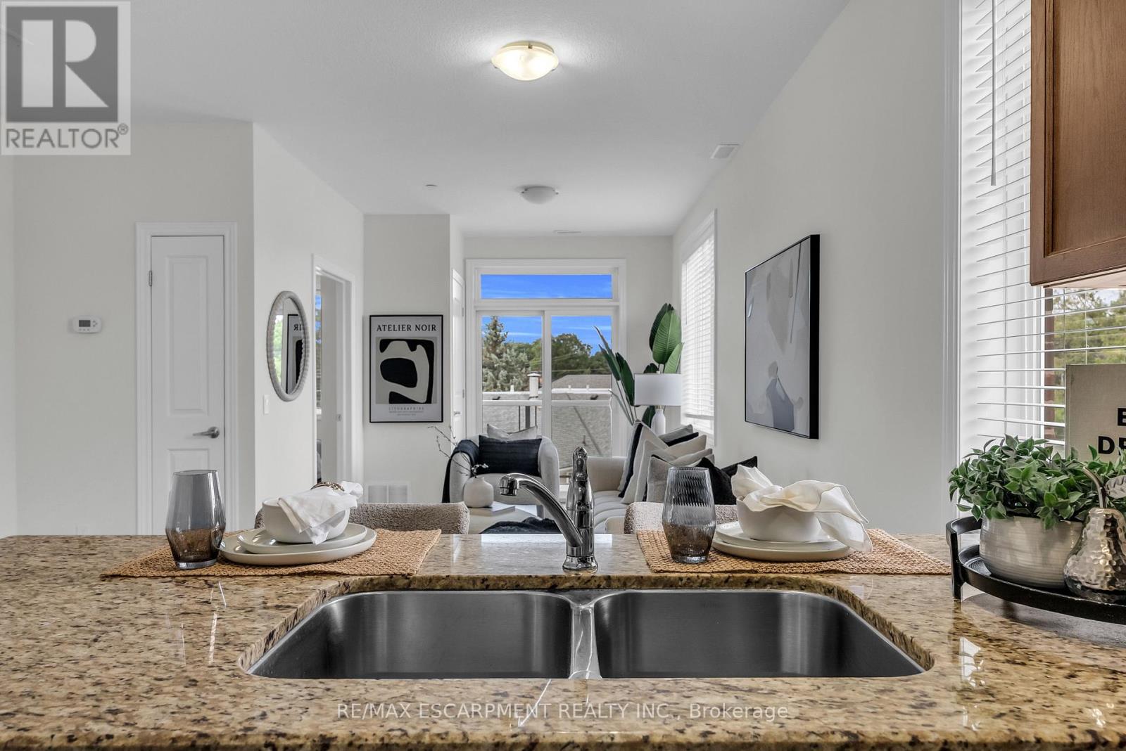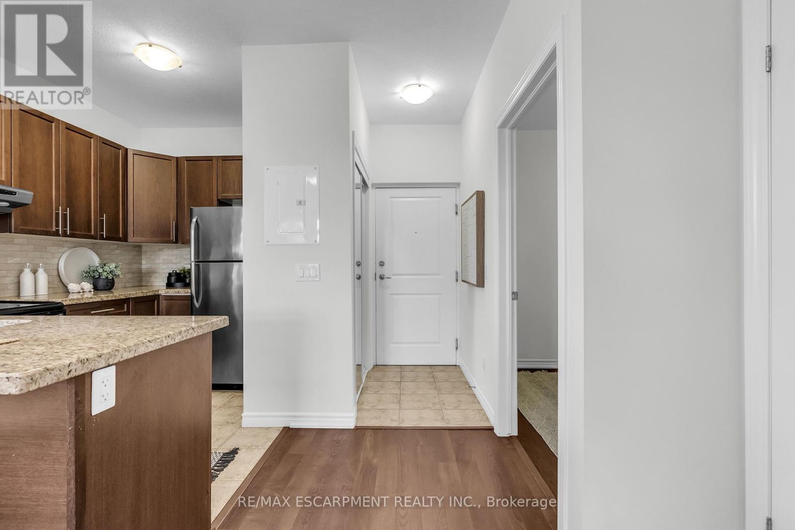 $403.49 MonthlyAttn: First time buyers or downsizers. This is the unit that you have been waiting for, Shows 10+++ Immaculate. Location Location, quality built in the heart of Ancaster, rarely offered in this building spacious 3rd floor (721 sq ft) 2 bedroom, END UNIT with extra windows provides for bright natural light throughout. Immaculate freshly painted, featuring high end laminate flooring, granite countertops, 9 ft. ceilings and large private balcony, one underground parking spot, ensuite privilege, in suite laundry. High walk score. Steps to groceries, banks, shopping, walking trails and more. Easy access to 403, This unit is PRICED TO SELL and will not last. (id:51158)