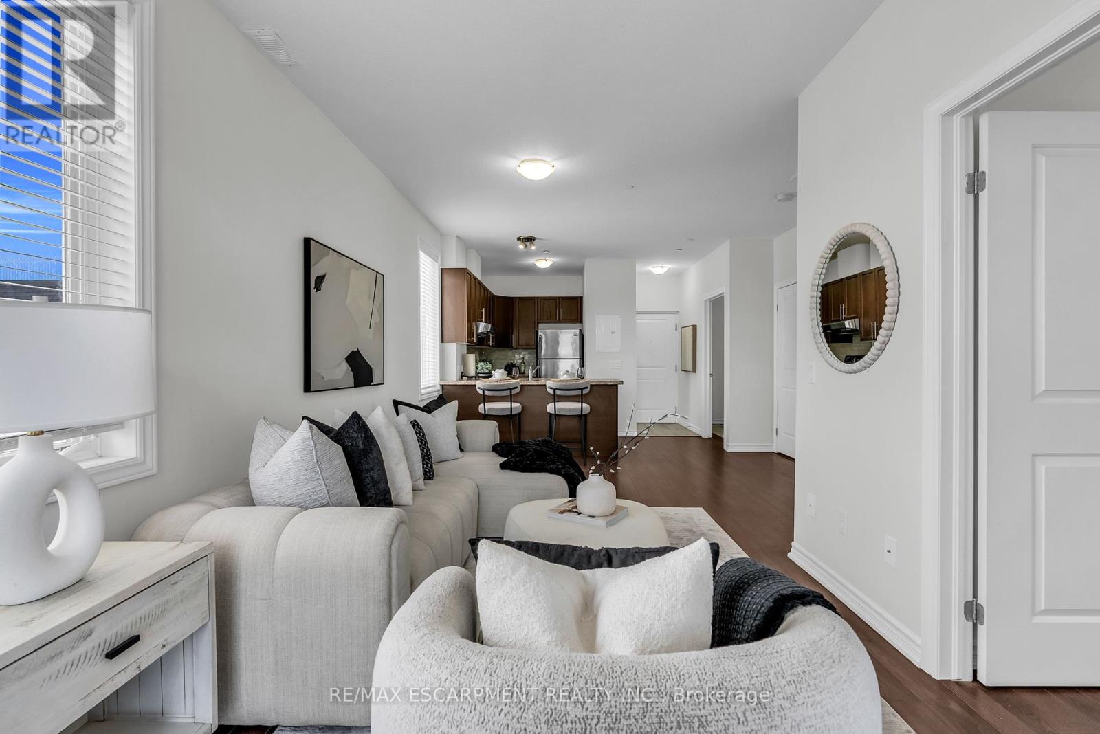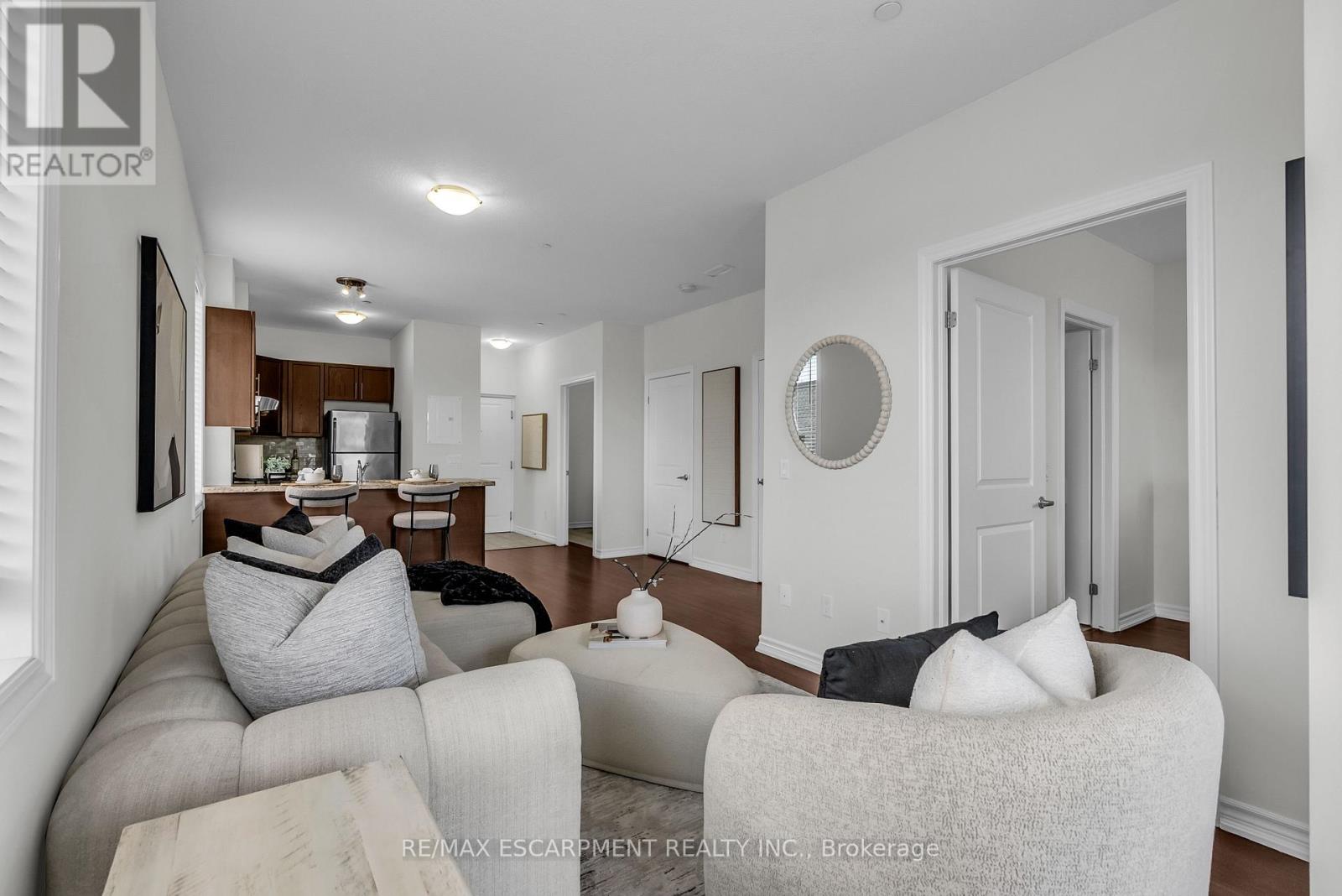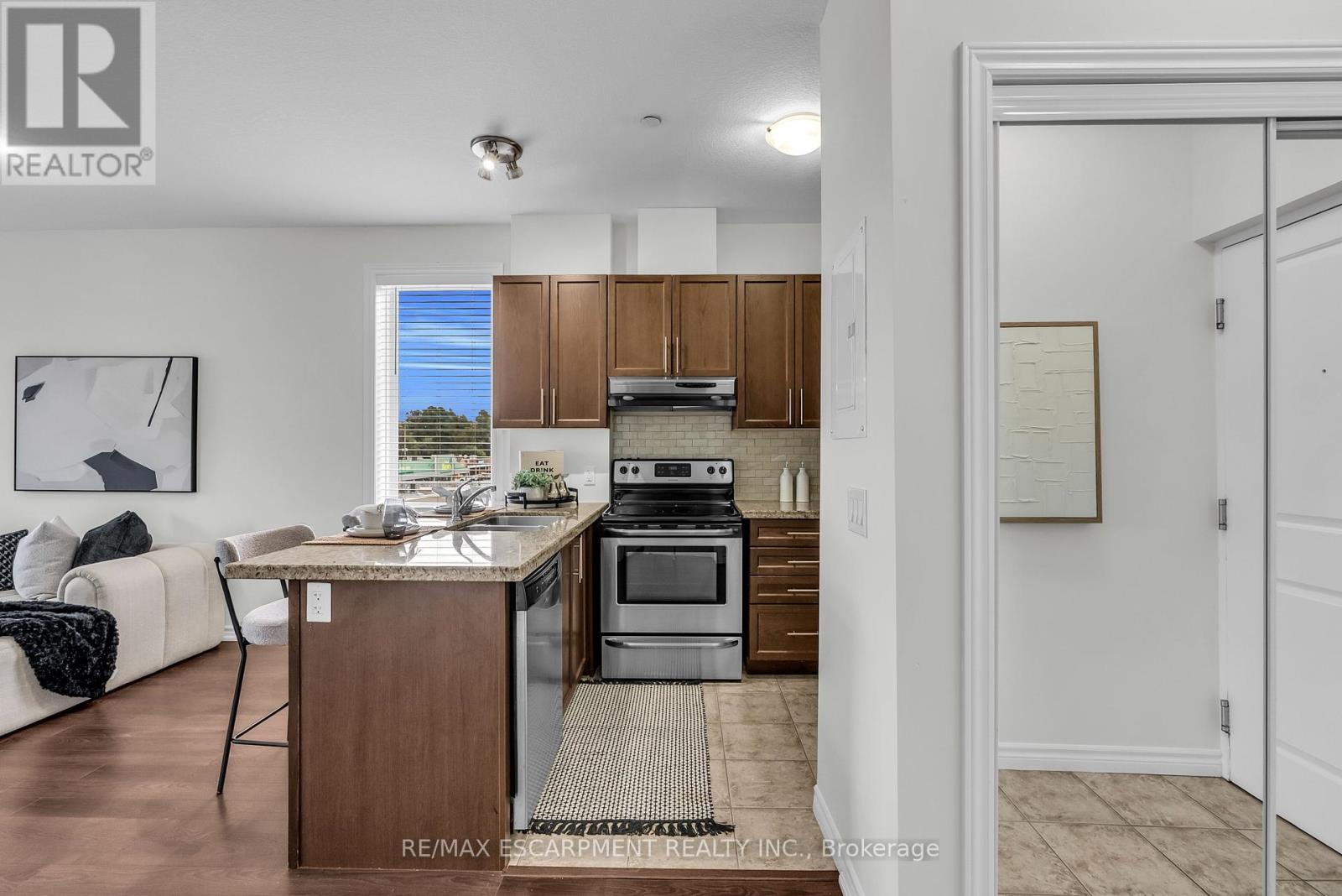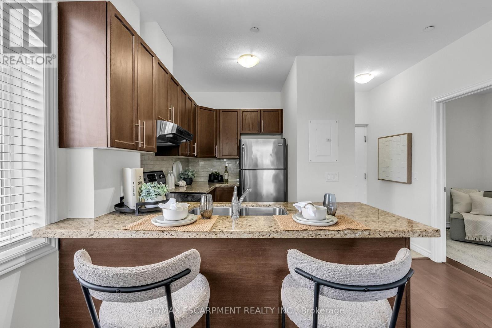 $403.49 MonthlyAttn: First time buyers or downsizers. This is the unit that you have been waiting for, Shows 10+++ Immaculate. Location Location, quality built in the heart of Ancaster, rarely offered in this building spacious 3rd floor (721 sq ft) 2 bedroom, END UNIT with extra windows provides for bright natural light throughout. Immaculate freshly painted, featuring high end laminate flooring, granite countertops, 9 ft. ceilings and large private balcony, one underground parking spot, ensuite privilege, in suite laundry. High walk score. Steps to groceries, banks, shopping, walking trails and more. Easy access to 403, This unit is PRICED TO SELL and will not last. (id:51158)