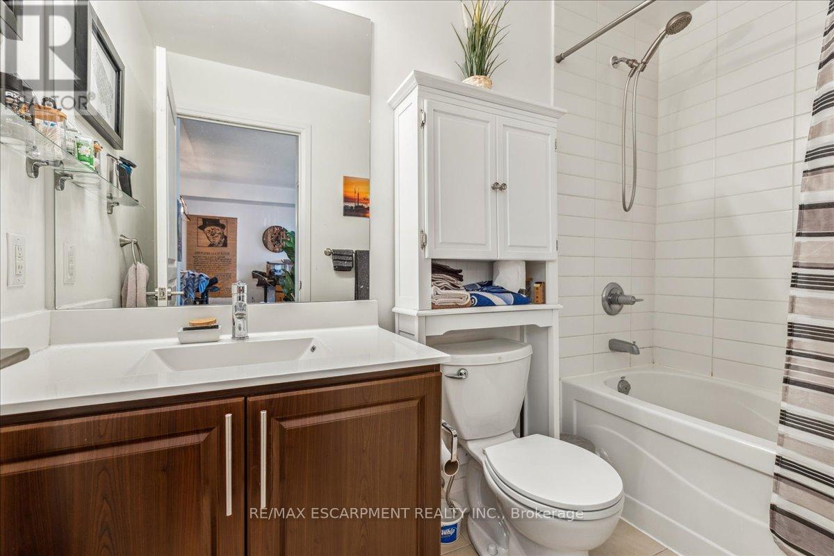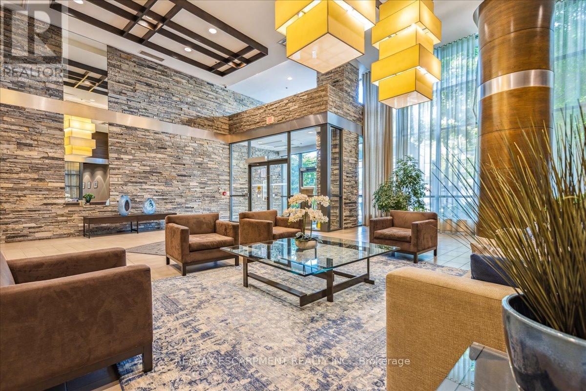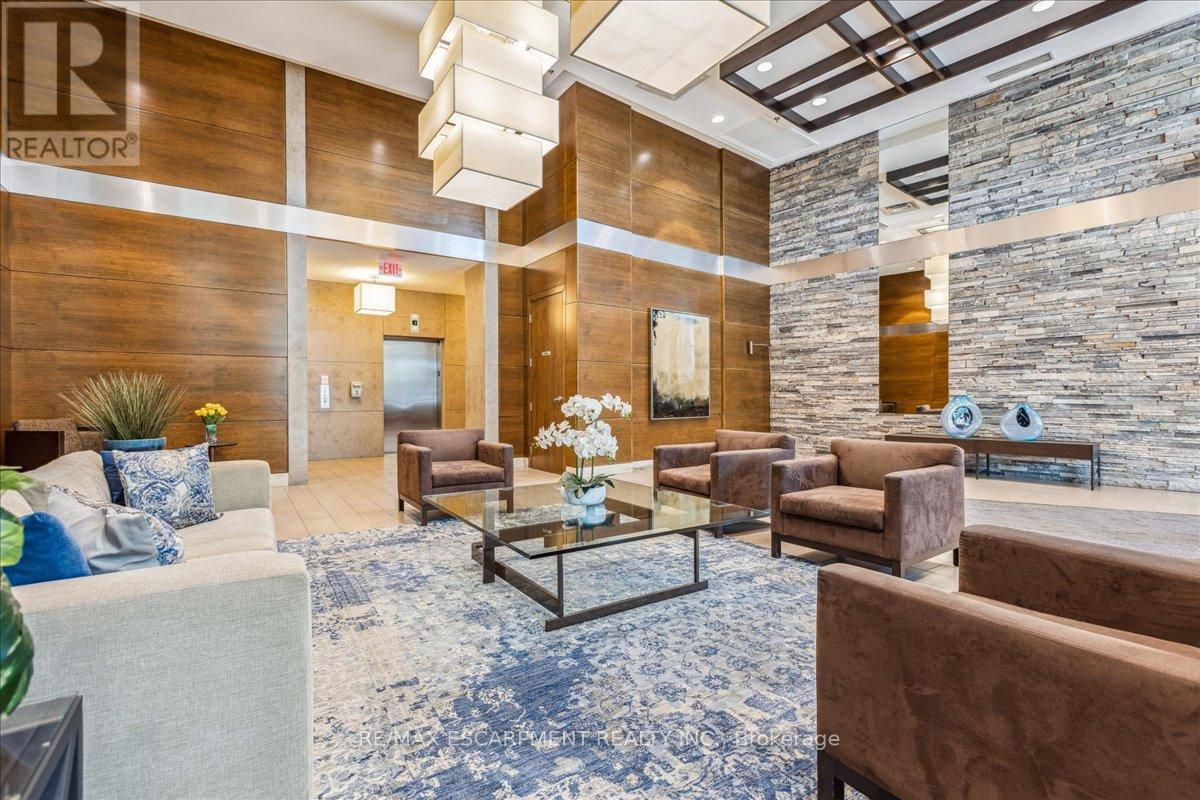 Luxury Living in the Heart of Port Credit. Welcome to North Shore, where upscale design meets unbeatable convenience. This stunning 1-bedroom + den suite offers bright, open-concept living with premium laminate flooring, updated lighting, and a thoughtfully designed layout perfect for both everyday comfort and entertaining. The sun-filled kitchen features granite countertops, a designer backsplash, double sink, and a spacious island overlooking the living and dining areas-ideal for hosting or enjoying casual meals. Step out onto your private balcony, an inviting extension of your living space and the perfect spot to enjoy your morning coffee. Relax in the generous primary bedroom, complete with double-door closets and large windows that flood the room with natural light. The spa-inspired bathroom showcases an updated vanity and a beautifully tiled tub/shower combination. The versatile den offers endless possibilities-home office, hobby room, library, or additional storage-tailored to your lifestyle. This unit truly has it all! Residents enjoy award-worthy amenities including a state-of-the-art gym, stylish party room, serene courtyard, and a breathtaking rooftop terrace with panoramic views. All of this just steps from the vibrant Port Credit community-renowned restaurants, boutique shopping, GO Transit, waterfront trails, and Lake Ontario. Luxury, convenience, and lifestyle-this is the one you've been waiting for! (id:51158)