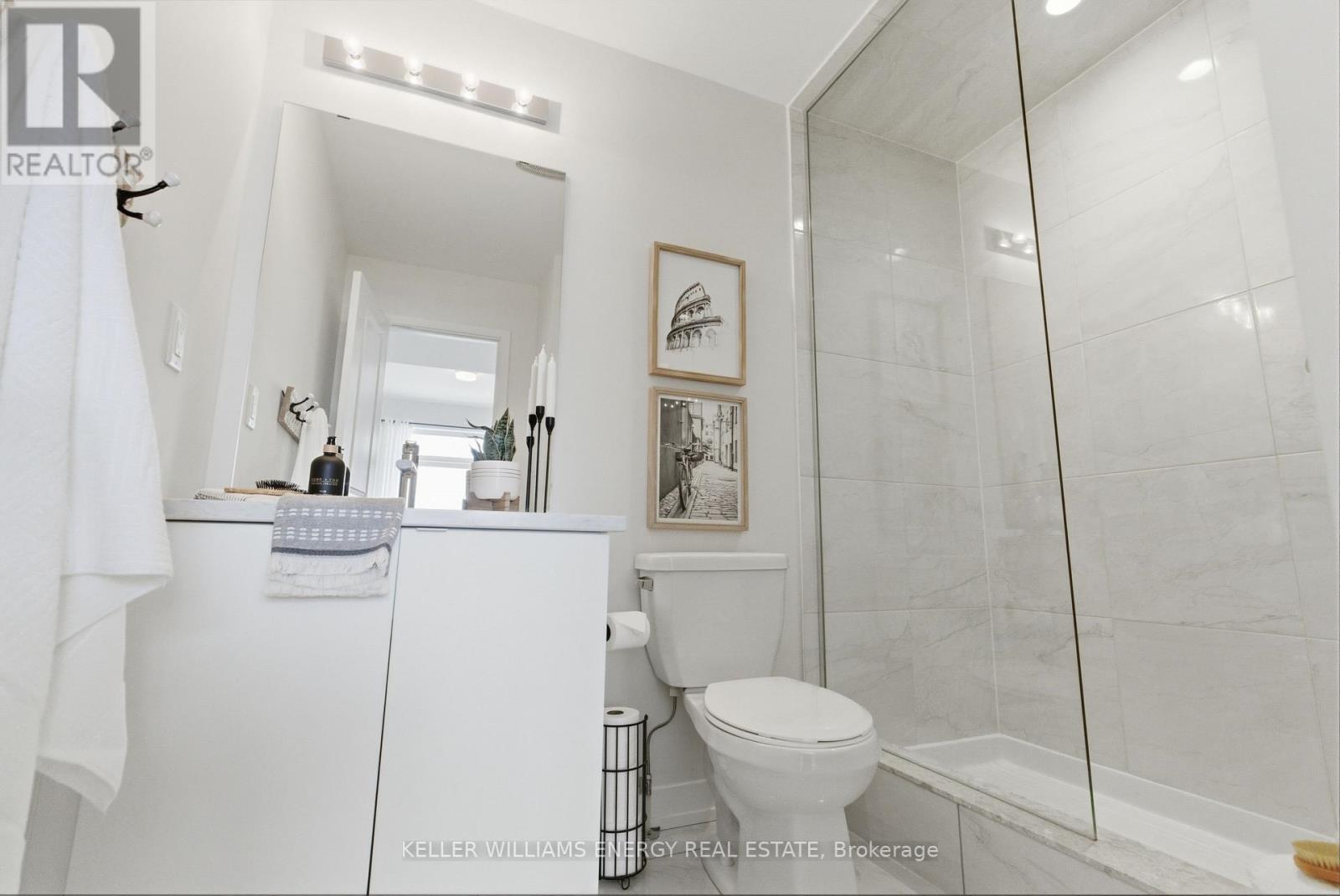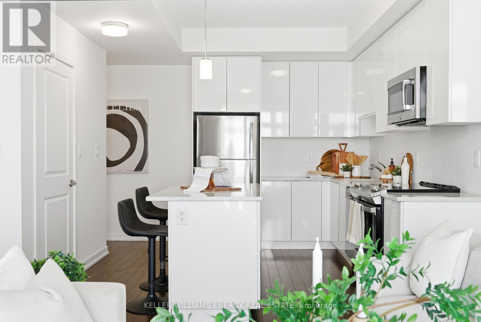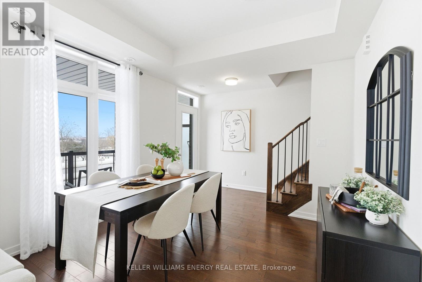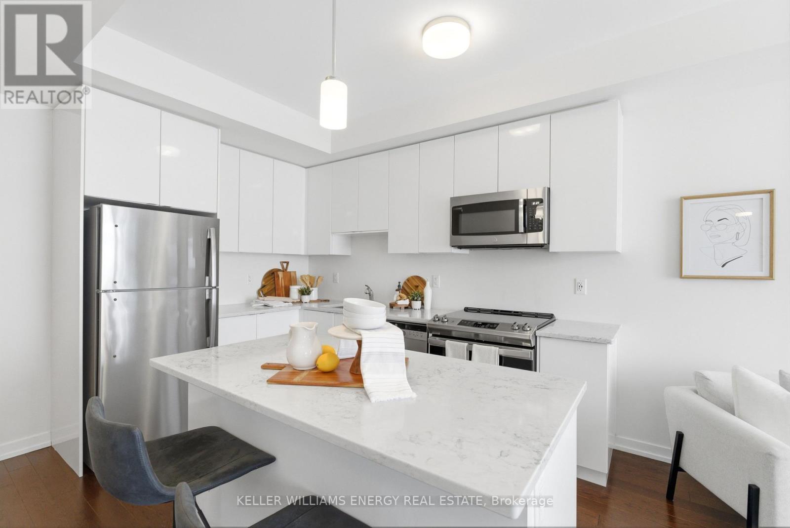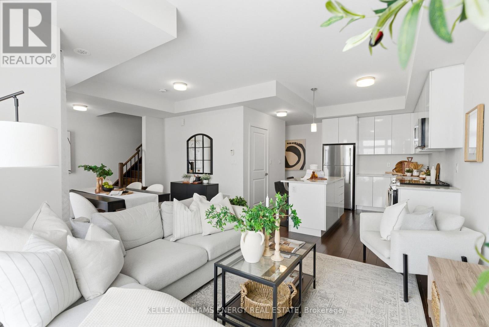 $409 MonthlyWelcome To This Stunning Home Featuring Modern Upgrades Throughout, Located In The Heart Of Pickering! Step Inside To A Welcoming Entry Level Featuring A Convenient Closet And Direct Access To The Garage. Upstairs, The Bright And Spacious Open-Concept Living Area Impresses With 9-Foot Ceilings, Hardwood Flooring, And An Updated Powder Room. The Modern Kitchen Boasts Stainless Steel Appliances, Quartz Countertops, And A Centre Island With Seating, Seamlessly Flowing Into The Living And Dining Areas. Large Windows Flood The Space With Natural Light And Lead To Your Private Balcony, Perfect For Morning Coffee Or Entertaining Guests. The Upper Level Offers Hardwood Flooring Throughout, Convenient Stackable Laundry, A Stylish Main Bathroom And Two Great Sized Bedrooms, Including A Serene Primary Retreat With 9.5-Foot Ceiling, Large Window, Walk-In Closet, And A Sleek 3-Piece Ensuite With A Walk-In Glass Shower! Outside, Enjoy A Nearby Park And Every Amenity You Could Dream Of Just Steps Away. This Move-In-Ready Home Offers The Perfect Blend Of Comfort, Style, And Convenience, Simply Unpack And Start Enjoying Everything It Has To Offer! Home Was Built In 2021. All Kitchen Appliances (2021), Clothes Washer & Dryer (2021), Powder Room (2025). Monthly Maintenance Fees Include Exterior Window Cleaning, Visitor Parking, Community Space Use & Maintenance (Park) & Garbage Collection. (id:51158)