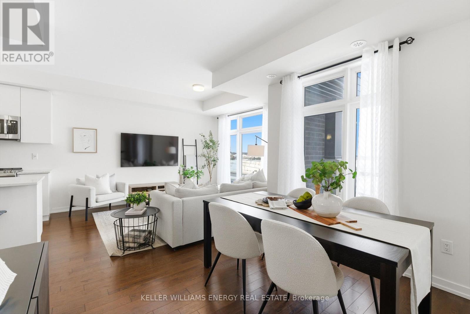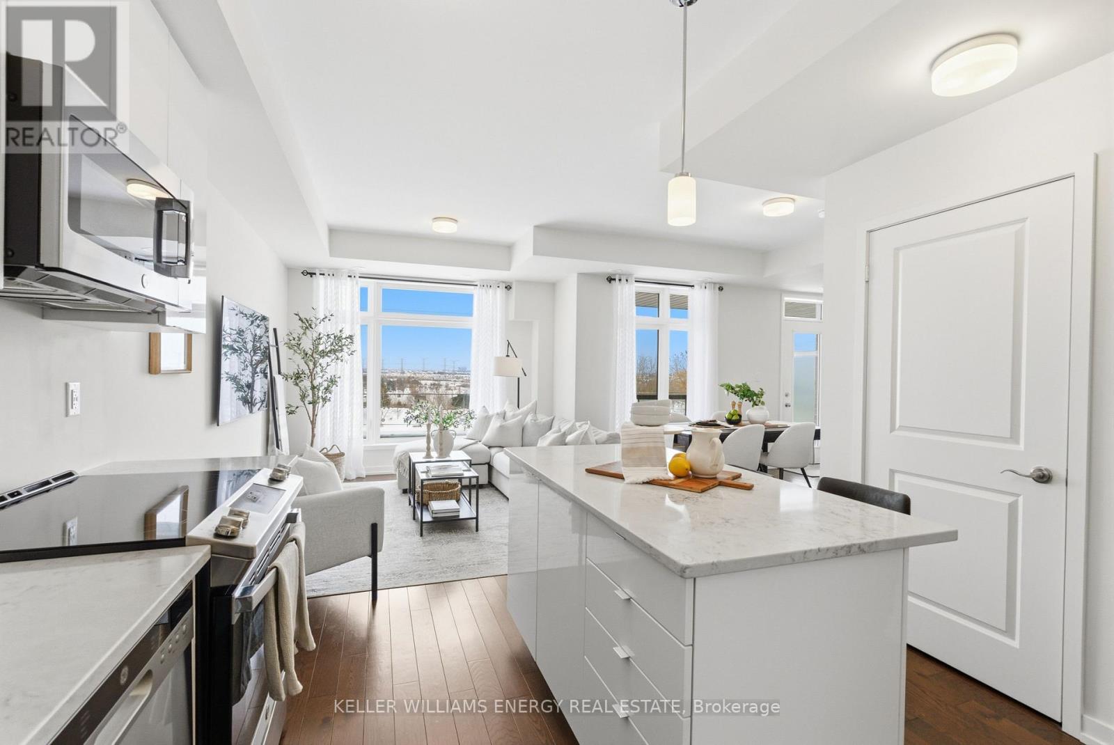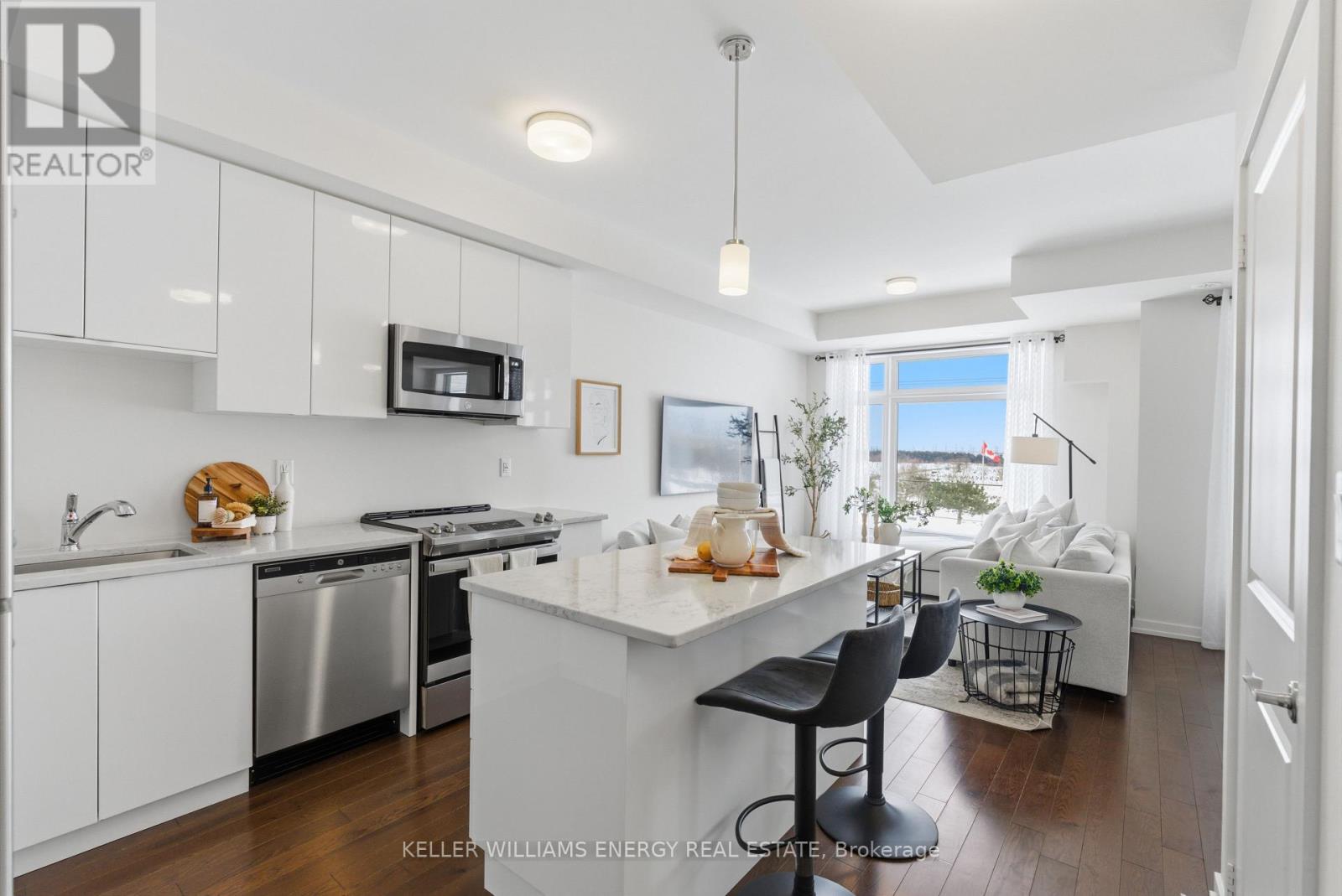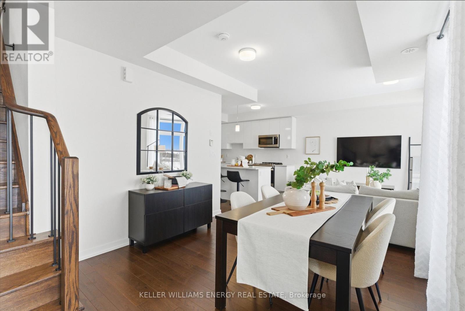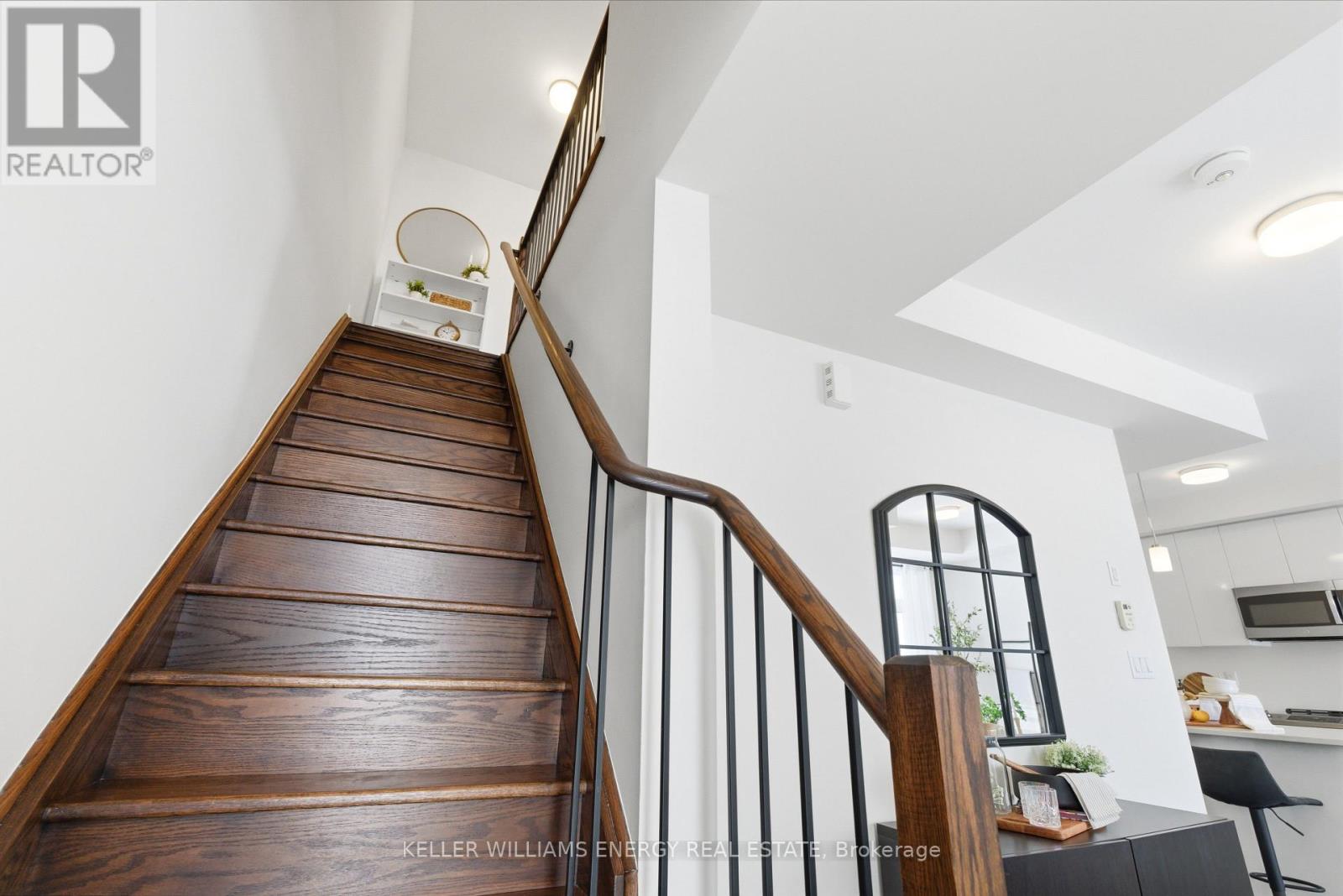 $409 MonthlyWelcome To This Stunning Home Featuring Modern Upgrades Throughout, Located In The Heart Of Pickering! Step Inside To A Welcoming Entry Level Featuring A Convenient Closet And Direct Access To The Garage. Upstairs, The Bright And Spacious Open-Concept Living Area Impresses With 9-Foot Ceilings, Hardwood Flooring, And An Updated Powder Room. The Modern Kitchen Boasts Stainless Steel Appliances, Quartz Countertops, And A Centre Island With Seating, Seamlessly Flowing Into The Living And Dining Areas. Large Windows Flood The Space With Natural Light And Lead To Your Private Balcony, Perfect For Morning Coffee Or Entertaining Guests. The Upper Level Offers Hardwood Flooring Throughout, Convenient Stackable Laundry, A Stylish Main Bathroom And Two Great Sized Bedrooms, Including A Serene Primary Retreat With 9.5-Foot Ceiling, Large Window, Walk-In Closet, And A Sleek 3-Piece Ensuite With A Walk-In Glass Shower! Outside, Enjoy A Nearby Park And Every Amenity You Could Dream Of Just Steps Away. This Move-In-Ready Home Offers The Perfect Blend Of Comfort, Style, And Convenience, Simply Unpack And Start Enjoying Everything It Has To Offer! Home Was Built In 2021. All Kitchen Appliances (2021), Clothes Washer & Dryer (2021), Powder Room (2025). Monthly Maintenance Fees Include Exterior Window Cleaning, Visitor Parking, Community Space Use & Maintenance (Park) & Garbage Collection. (id:51158)