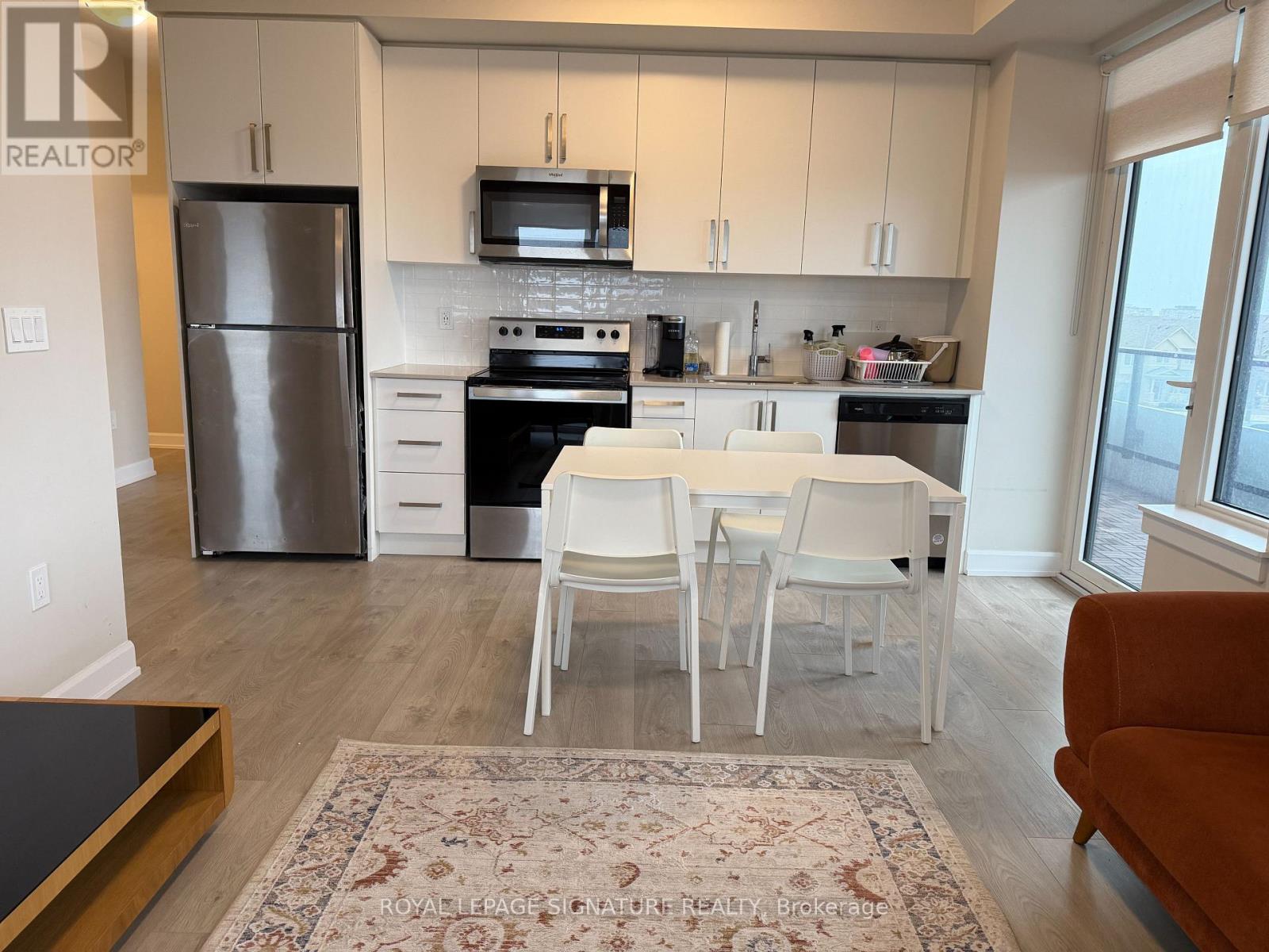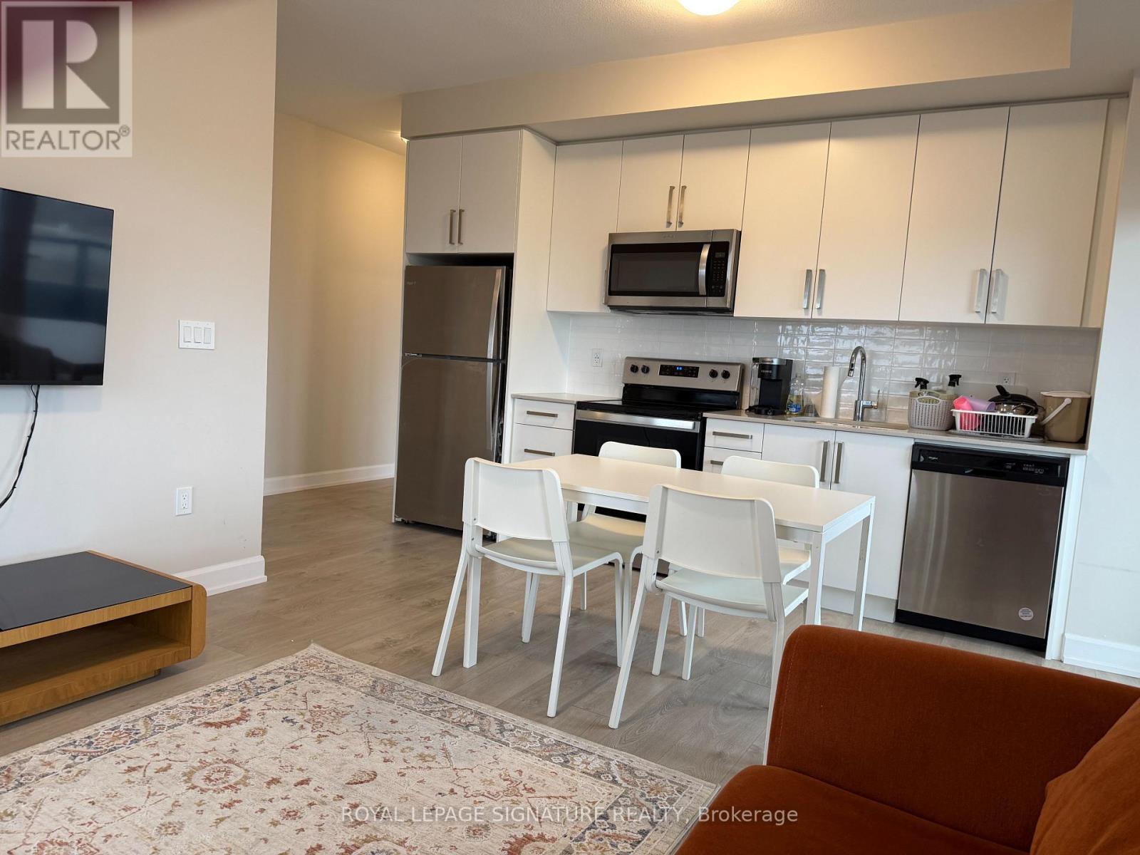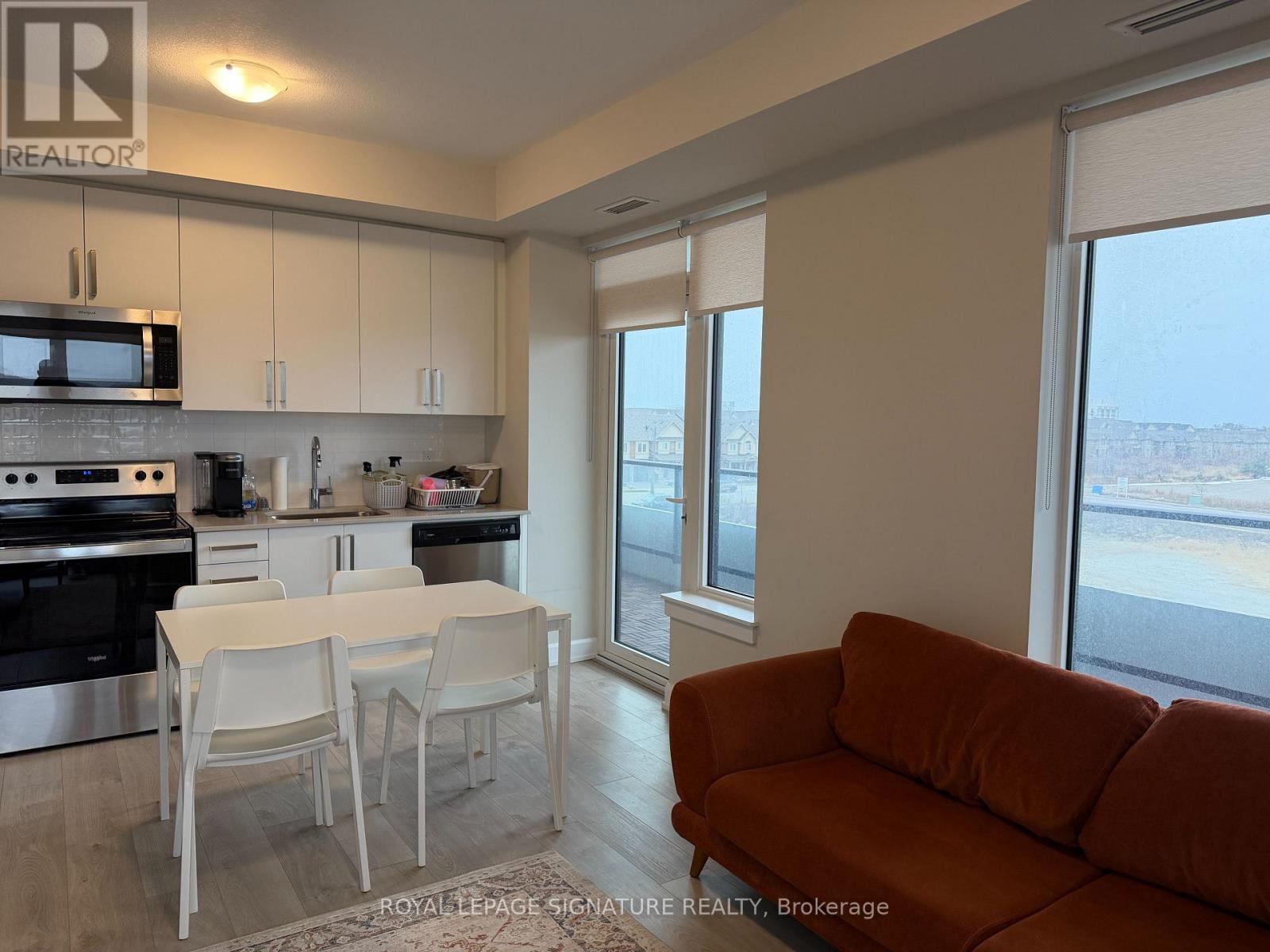 Experience luxury living in Oakville's prestigious Joshua Meadows community! This stunning 2-bedroom, 2-bathroom condo offers 820 sq. ft. of contemporary living space with an open-concept design, high ceilings, and floor-to-ceiling windows that fill the home with natural light. Step onto your private wrap around balcony and take in the beautiful forest backdrop with serene views of the Mississauga skyline. The chef-inspired kitchen has been thoughtfully upgraded, featuring a large extended peninsula island with dining overhang, custom cabinetry, added storage within the island, a built-in upgraded stovetop oven, quartz countertops, stainless steel appliances, and a custom pantry offering exceptional functionality and style. Built by Branthaven, this home includes Smart Connect technology providing integrated access control, smart temperature settings, and leak detection for modern convenience. Residents enjoy access to premium amenities including a rooftop terrace with outdoor kitchen and BBQs, pet wash station, geothermal heating and cooling, keyless entry, party and entertainment lounge, and fitness and yoga studios. Located just minutes from top-rated schools, major highways (403, 407, QEW), GO Stations, parks, restaurants, and shopping, this condo perfectly combines modern design, luxury, and location. (id:51158)