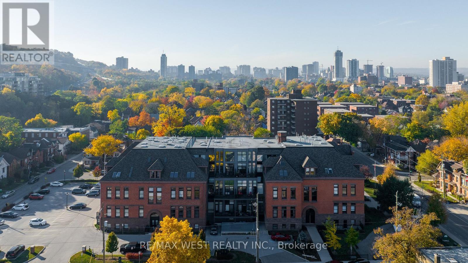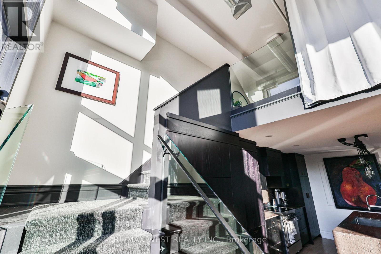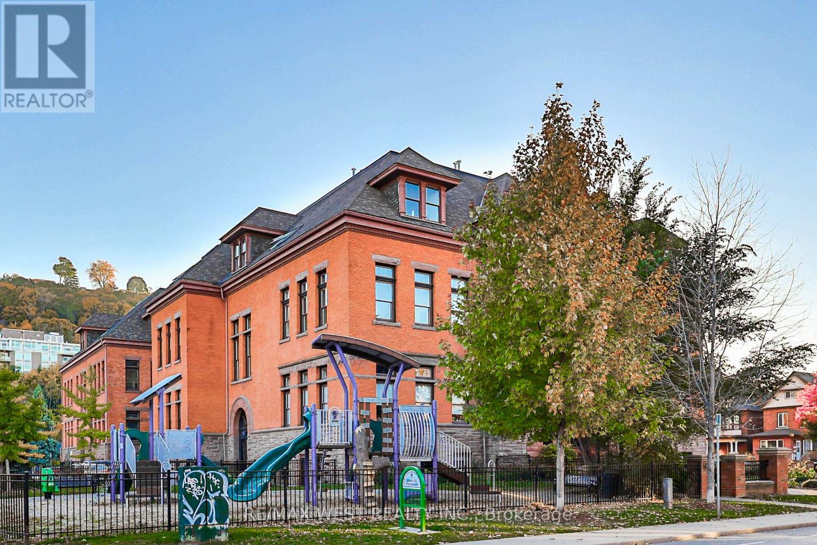 $853.25 MonthlyWelcome to a showstopping, one-of-a-kind hard loft set within the iconic Stinson School Lofts. This historic boutique conversion blends timeless Victorian architecture with refined, modern design in a way that's truly unmatched. With 1300 sq ft of interior living space and an additional 864 sq ft private terrace, this two-level loft is a rare find. Soaring 17-foot ceilings and two-storey Reynaers windows flood the home with natural light. Original brick, exposed PSL beams, and industrial steel hardware add authentic character, while curated finishes bring elevated style. The chefs kitchen features maple cabinetry, premium European appliances, and a dramatic denim granite waterfall island. Entertain in the open-concept great room or step outside to your custom Japanese-style wood patio with planters and treetop views - your own private outdoor retreat. Upstairs, the primary suite is a peaceful haven with custom closets, a feature PSL post, and a spa-worthy ensuite wrapped in marble. A second bedroom or flexible office/guest space offers built-ins and warm wool carpeting. Every inch has been considered - from the bespoke glass staircase to the custom lighting throughout. Set in a boutique building rich with history, and located near Hamilton's downtown core, Wentworth Steps, and the Escarpment trails, this loft offers urban edge with soul. A true architectural gem - rarely offered and impossible to replicate. (id:51158)