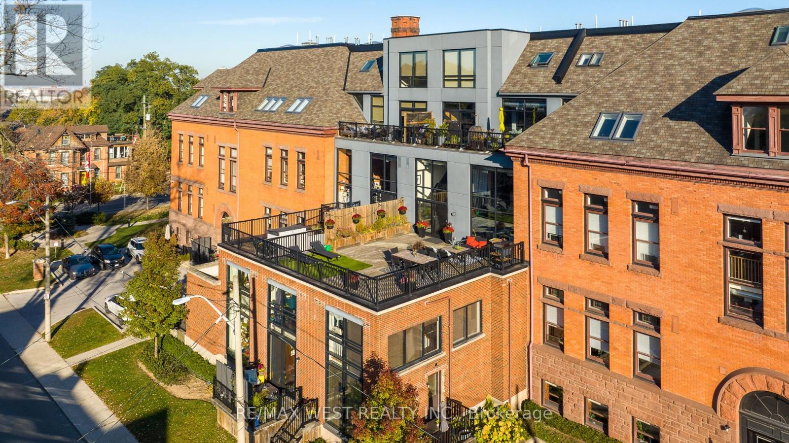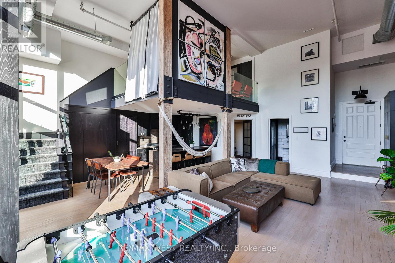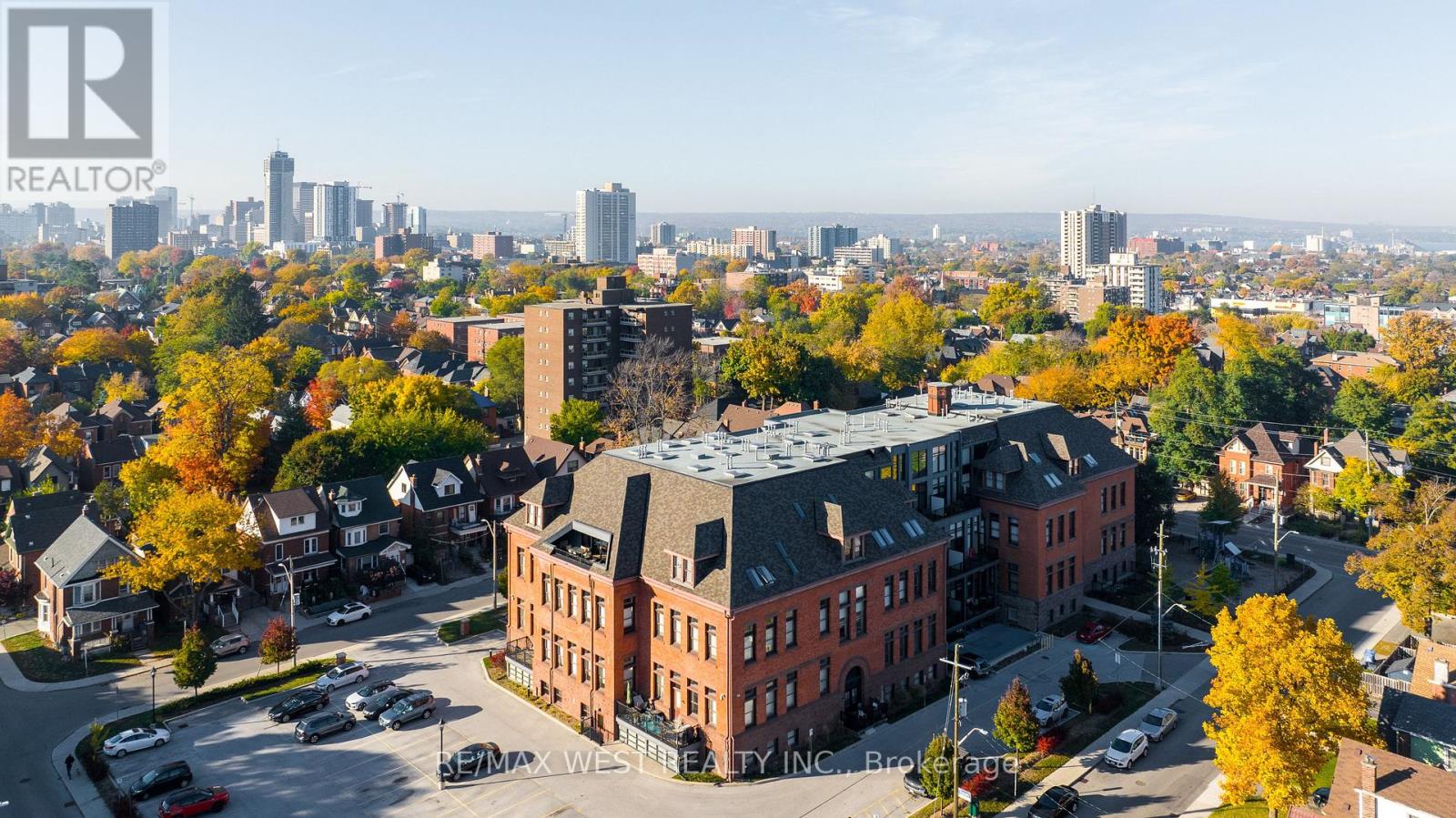$853.25 MonthlyWelcome to a showstopping, one-of-a-kind hard loft set within the iconic Stinson School Lofts. This historic boutique conversion blends timeless Victorian architecture with refined, modern design in a way that's truly unmatched. With 1300 sq ft of interior living space and an additional 864 sq ft private terrace, this two-level loft is a rare find. Soaring 17-foot ceilings and two-storey Reynaers windows flood the home with natural light. Original brick, exposed PSL beams, and industrial steel hardware add authentic character, while curated finishes bring elevated style. The chefs kitchen features maple cabinetry, premium European appliances, and a dramatic denim granite waterfall island. Entertain in the open-concept great room or step outside to your custom Japanese-style wood patio with planters and treetop views - your own private outdoor retreat. Upstairs, the primary suite is a peaceful haven with custom closets, a feature PSL post, and a spa-worthy ensuite wrapped in marble. A second bedroom or flexible office/guest space offers built-ins and warm wool carpeting. Every inch has been considered - from the bespoke glass staircase to the custom lighting throughout. Set in a boutique building rich with history, and located near Hamilton's downtown core, Wentworth Steps, and the Escarpment trails, this loft offers urban edge with soul. A true architectural gem - rarely offered and impossible to replicate. (id:51158)