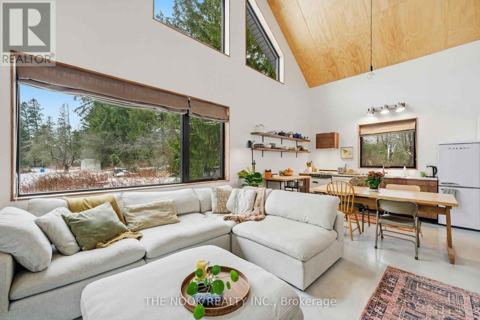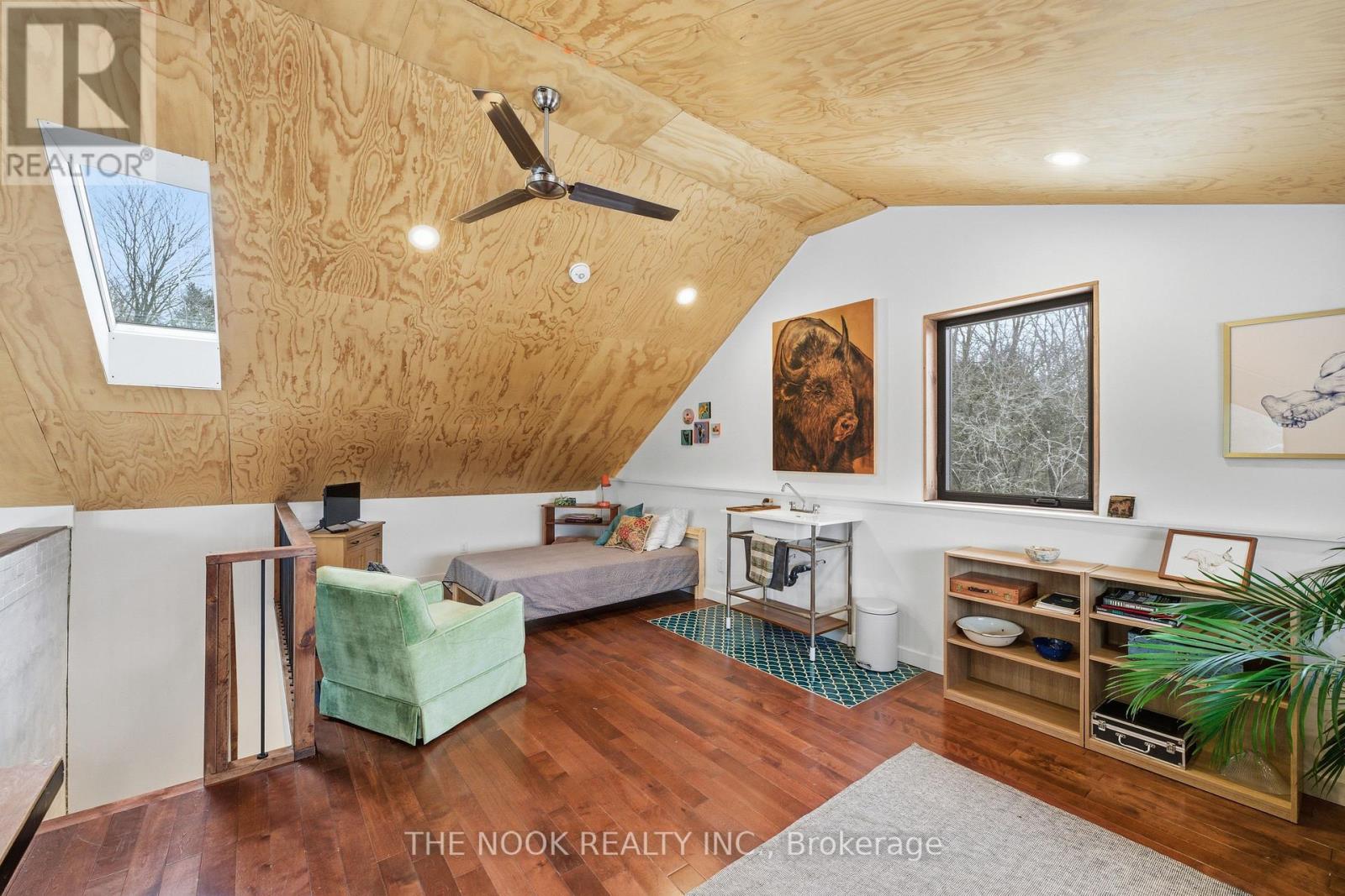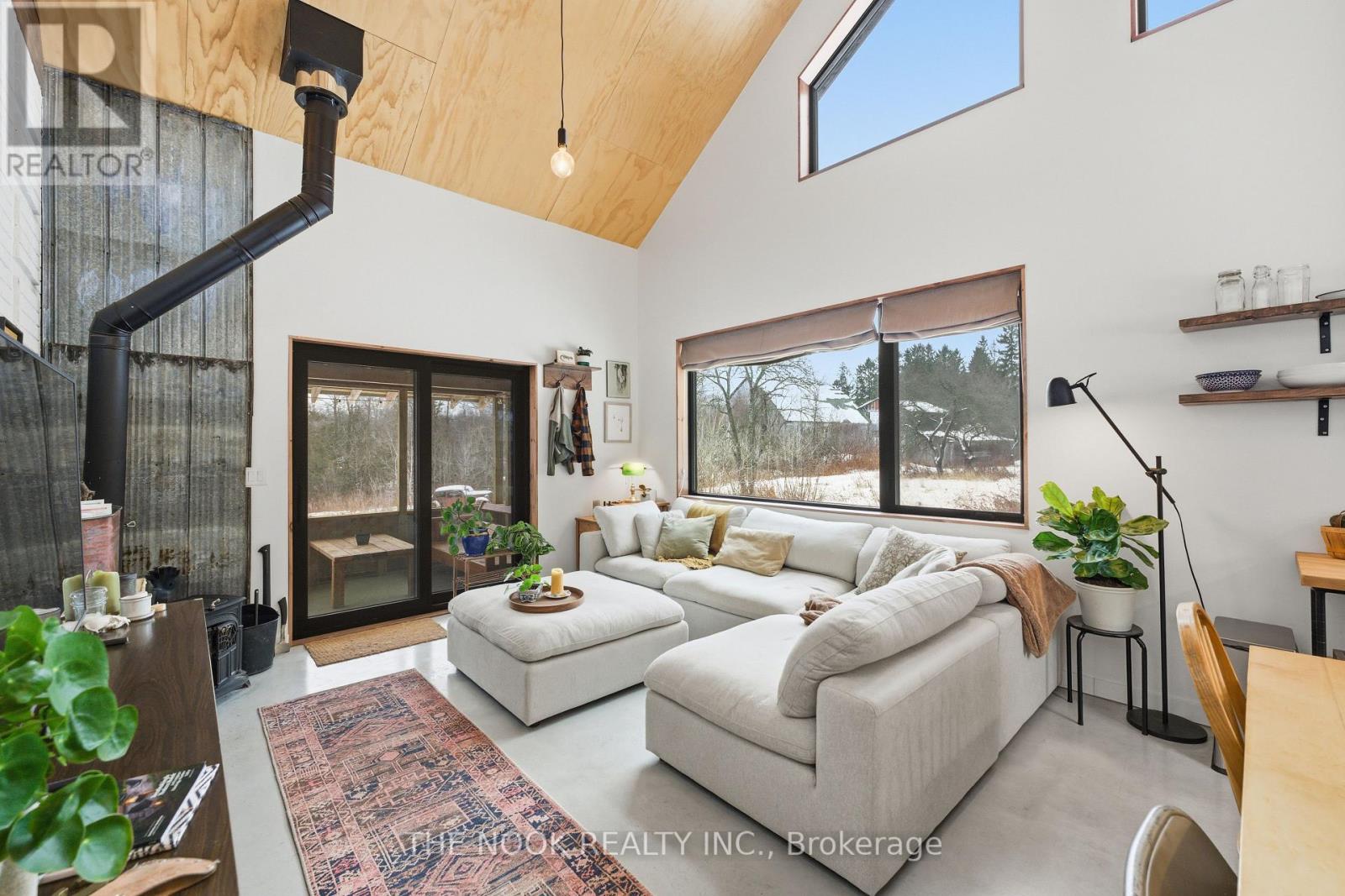 One-of-a-kind, Modern, Loft-Style home with Ravine Views between Grafton & Colborne! Former commercial building converted into a stunning residence with vintage brick & board-and-batten exterior, metal roof, and walls of windows showcasing ravine privacy and breathtaking views.Vaulted ceilings soar above the sun-drenched great room with a cozy wood stove, while a loft provides an extra bedroom and versatile art studio/living space overlooking the main level. The open concept layout creates a seamless flow between living, dining, and kitchen areas.. perfect for entertaining or quiet relaxation. A new 2024 addition adds extra living space, along with notable upgrades including a well, septic system, HVAC, and exterior finishes-blending modern convenience with industrial charm. Enjoy serene rural living just steps from the Lake, with quick access to Hwy 401, Cobourg, minutes to schools, Ste. Anne's Spa, The Big Apple, walking trails, conservation areas, farmers' markets, artisan shops, dining, and a local art gallery. Every corner is flooded with natural light, offering a rare combination of privacy, style, and inspiring living spaces - truly a home like no other! **Open House: Saturday, January 17th 3-5pm** (id:51158)