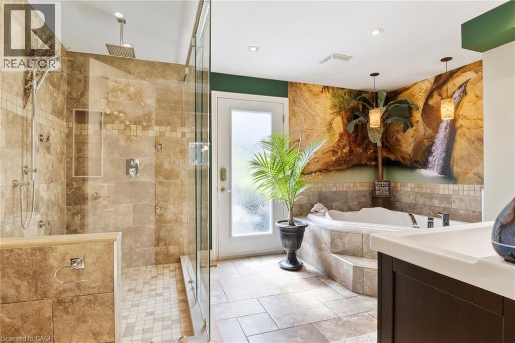 Looking for a touch of everyday luxury? This East Galt home brings together comfort, style, and that vacation-at-home feeling. Step into the backyard and you’ll find your own private escape, featuring a brand-new hot tub (2025), tiki bar, and a 16' x 32' heated inground pool with stone waterfall and cabana. Perfect for summer parties or a quiet evening under the stars, it’s a space you’ll never want to leave. Recent upgrades include a new pool liner (2024) and a pool heater replaced just three years ago. Inside, the home offers 4+1 bedrooms and a main bathroom with all the spa-inspired extras: a Jacuzzi tub, dual rain shower heads, heated floors, and double sinks. The kitchen is bright and inviting with stone countertops, stainless steel appliances, heated floors, and skylights (2022) that bring in loads of natural light. The finished basement extends your living space with a cozy gas fireplace—ideal for movie nights, guests, or even a home gym. The exterior is just as impressive, with a private triple-wide aggregate concrete driveway and a heated 3-car garage/shop. With 10-foot ceilings, an oversized 9-foot door, and a connected lounge area, it’s the ultimate spot for hobbies, game days, or simply unwinding. Every detail of this property is designed for easy living and enjoying the moment. If you’re ready for more than just a house, and want a lifestyle to match, this could be the one. Book your showing today! (id:51158)