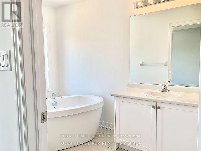 Live by the lake in one of Whitby's luxurious waterside villas. This beautiful 3 bedroom end unit townhouse features an concept layout with spacious principal rooms and tons of natural light! The gorgeous eat-in kitchen boasts granite countertops, breakfast bar, stainless steel appliances and walkout to balcony. The primary bedroom features a modern 4-piece ensuite with soaker tub and glass shower, walk-in closet & private balcony. The lower level den/ office is a fantastic work-from-home space or could be a wonderful 4th bedroom. Direct access to double car garage with garage door opener. Roller shades throughout entire home. Amazing location! Close to park, sports complex, marina, walking/cycling trails, Hwy 401, Go Train, grocery stores and all urban amenities. *Photos were taken prior to previous tenants* (id:51158)