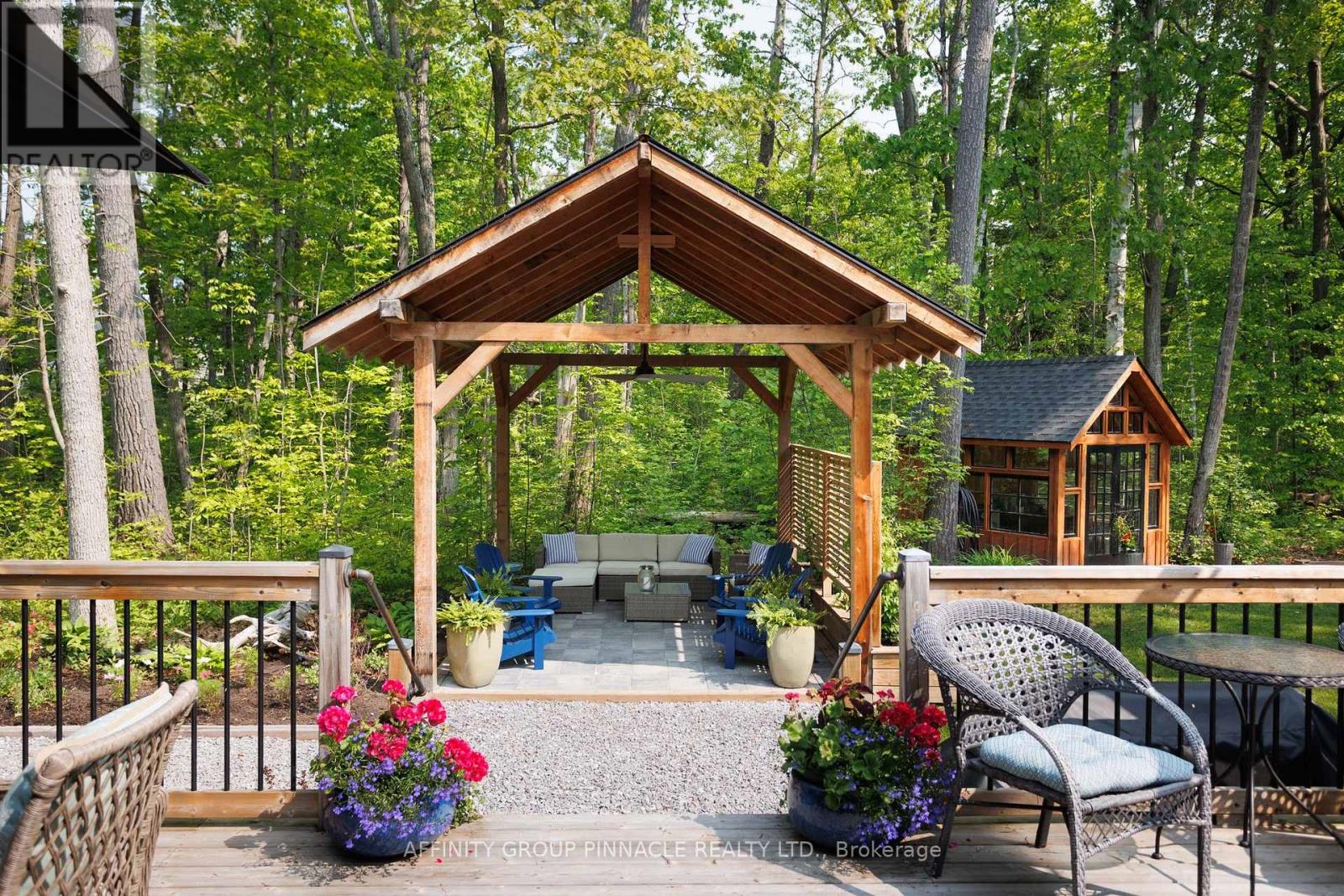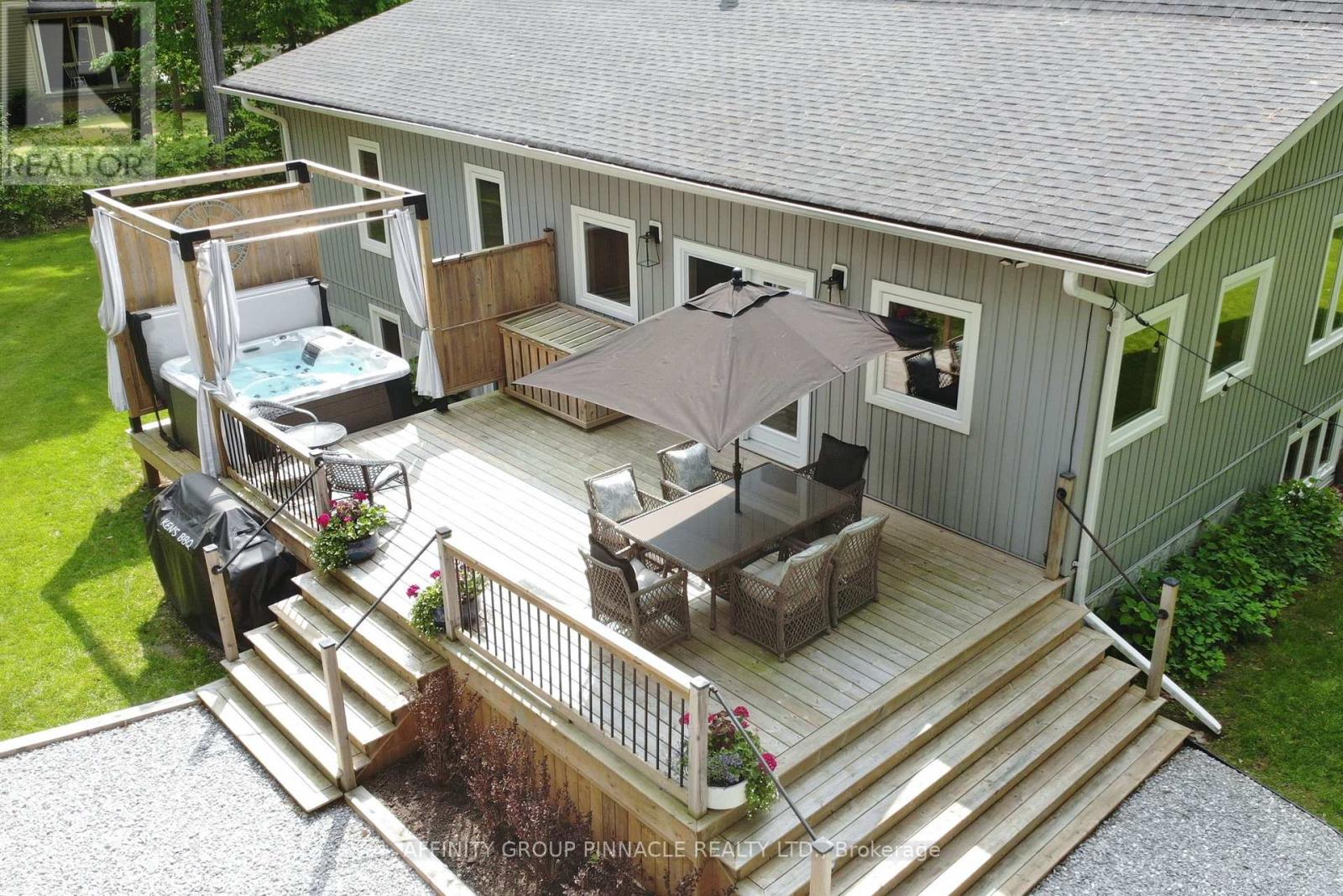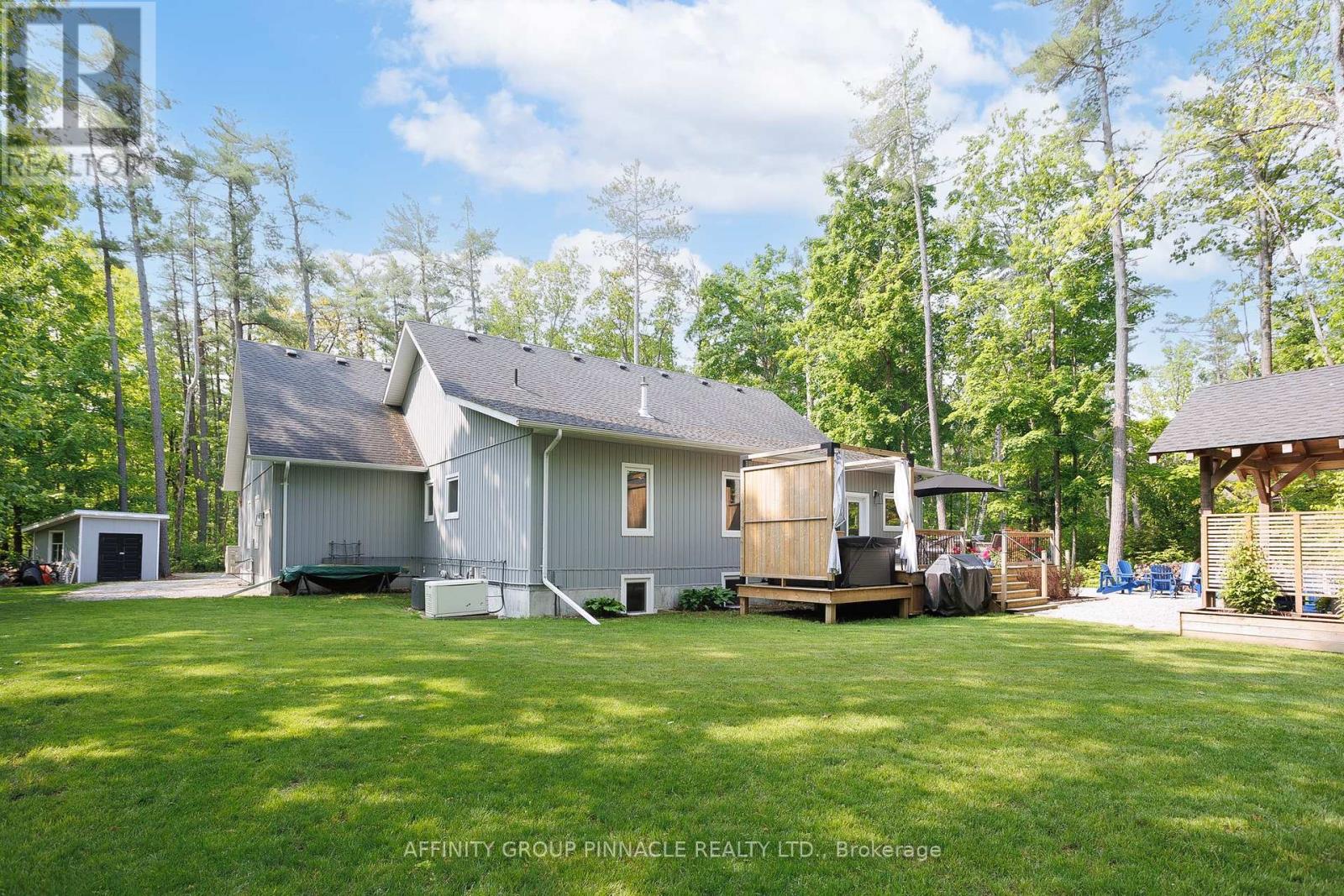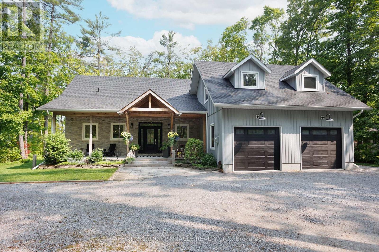 Desirable Sturgeon Point Bungaloft! This stunning custom built 3 bedroom, 3 bathroom, plus 500sqft loft will not disappoint. 3250 sqft incl basement. Masterfully designed & constructed in 2016 with ICF to the ceilings, this home sits on 1 acre surrounded by mature woods & perennial gardens. A timber framed cover porch welcomes you into a large foyer. Pride of ownership abounds in the open concept living on the main floor with high ceilings and ample windows allowing for tons of natural light. The designer kitchen offers face frame cabinetry, tons of storage, soap stone counters, a wonderful quartzite island that seats 6, built-in appliances, and is just simply an excellent place for entertaining or spending time with family. A large dining area and a cozy mainfloor tv area with propane fire insert are accompanied by a 4 season sunroom with dry bar & walk out to private deck and 6 person hot tub. The main floor primary suite offers a huge his & hers walk-in closet, glorious ensuite with a soaker tub for 2 and walk-in shower. Main floor laundry room, a charming powder room sits next to the direct access to the 2.5 car insulated garage. The large loft space is the perfect spot for a guest room, lounge, or a home office. In the basement we find zoned in floor heating, another family room with a cozy tv area adorned with a ship lap built in for the tv and games. 2 large bedrooms with large closet spaces, a kitchenette, and a separate entrance from the garage help lend the basement to the perfect inlaw suite/2nd living quarters. Enjoy outdoor living under the amazing pergola, or from the front porch. The Generac system ensures power should the need arise. Sturgeon Point offers a wonderful community with a mix of history and contemporary living. Amazing amenities include a nearby golf course, public beach, community church, sailing club, and the SPA membership for community events and endless lake water for the gardens. Come live your best life at this gorgeous property. (id:51158)