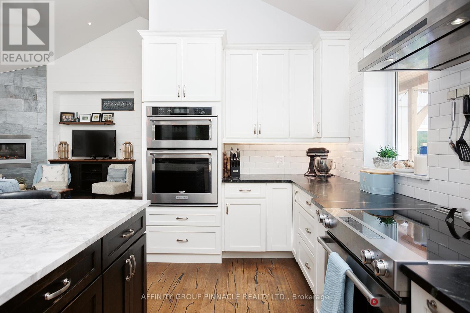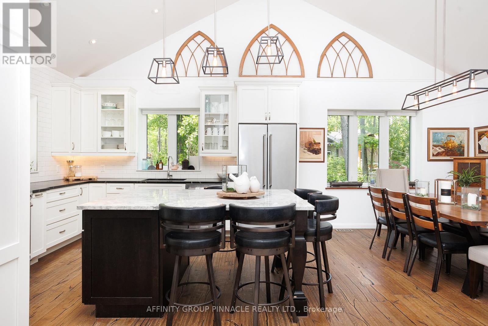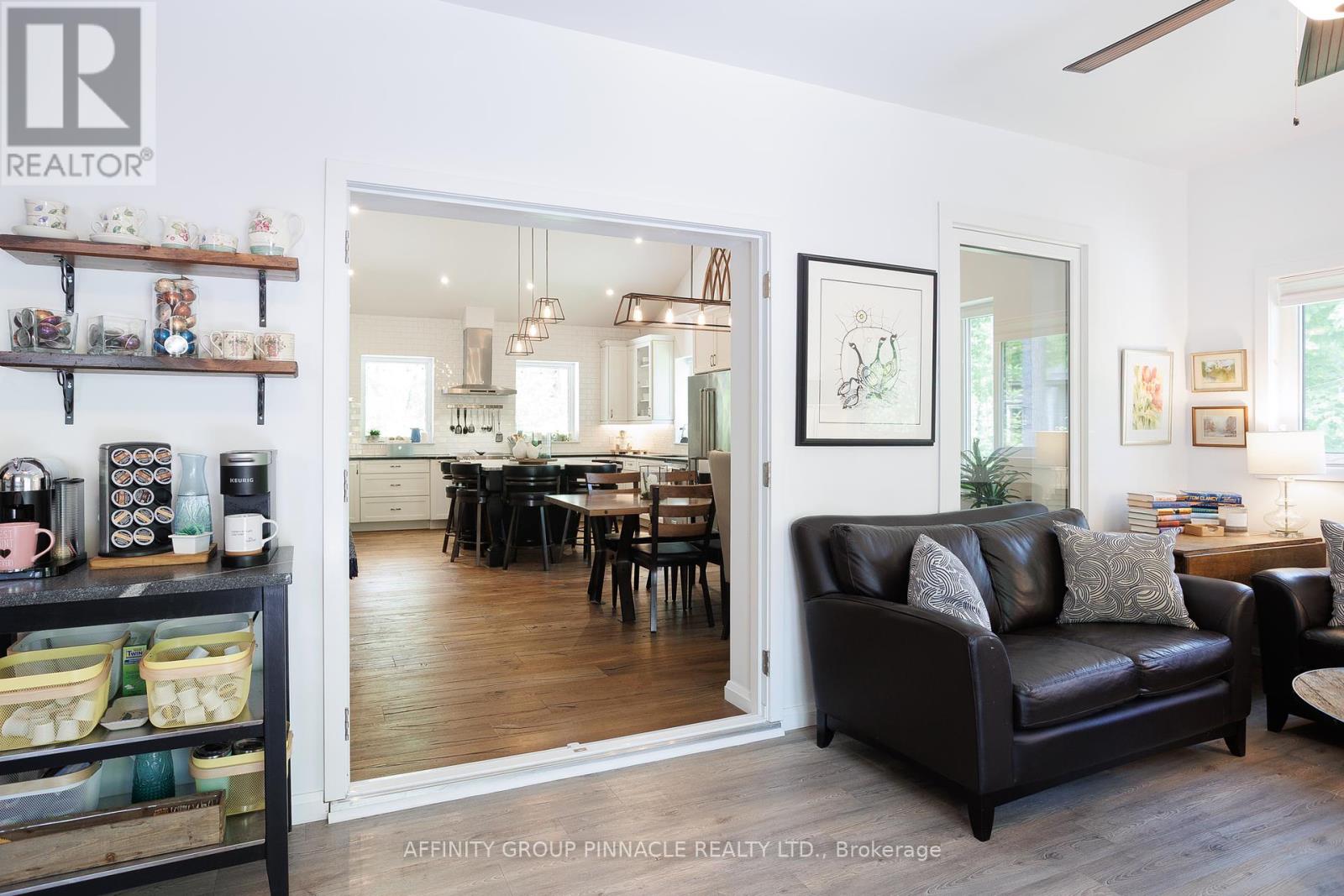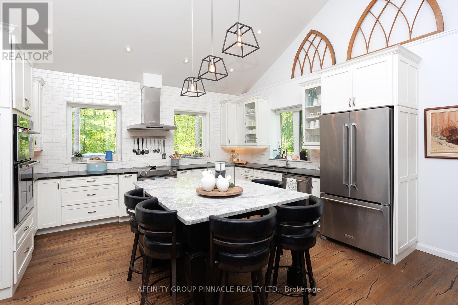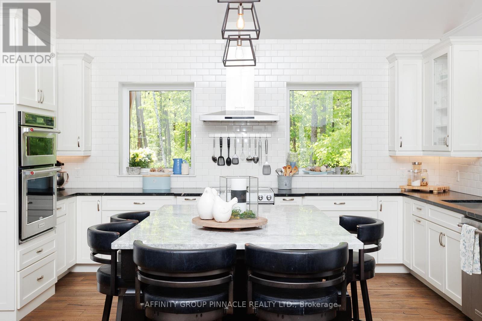 Desirable Sturgeon Point Bungaloft! This stunning custom built 3 bedroom, 3 bathroom, plus 500sqft loft will not disappoint. 3250 sqft incl basement. Masterfully designed & constructed in 2016 with ICF to the ceilings, this home sits on 1 acre surrounded by mature woods & perennial gardens. A timber framed cover porch welcomes you into a large foyer. Pride of ownership abounds in the open concept living on the main floor with high ceilings and ample windows allowing for tons of natural light. The designer kitchen offers face frame cabinetry, tons of storage, soap stone counters, a wonderful quartzite island that seats 6, built-in appliances, and is just simply an excellent place for entertaining or spending time with family. A large dining area and a cozy mainfloor tv area with propane fire insert are accompanied by a 4 season sunroom with dry bar & walk out to private deck and 6 person hot tub. The main floor primary suite offers a huge his & hers walk-in closet, glorious ensuite with a soaker tub for 2 and walk-in shower. Main floor laundry room, a charming powder room sits next to the direct access to the 2.5 car insulated garage. The large loft space is the perfect spot for a guest room, lounge, or a home office. In the basement we find zoned in floor heating, another family room with a cozy tv area adorned with a ship lap built in for the tv and games. 2 large bedrooms with large closet spaces, a kitchenette, and a separate entrance from the garage help lend the basement to the perfect inlaw suite/2nd living quarters. Enjoy outdoor living under the amazing pergola, or from the front porch. The Generac system ensures power should the need arise. Sturgeon Point offers a wonderful community with a mix of history and contemporary living. Amazing amenities include a nearby golf course, public beach, community church, sailing club, and the SPA membership for community events and endless lake water for the gardens. Come live your best life at this gorgeous property. (id:51158)