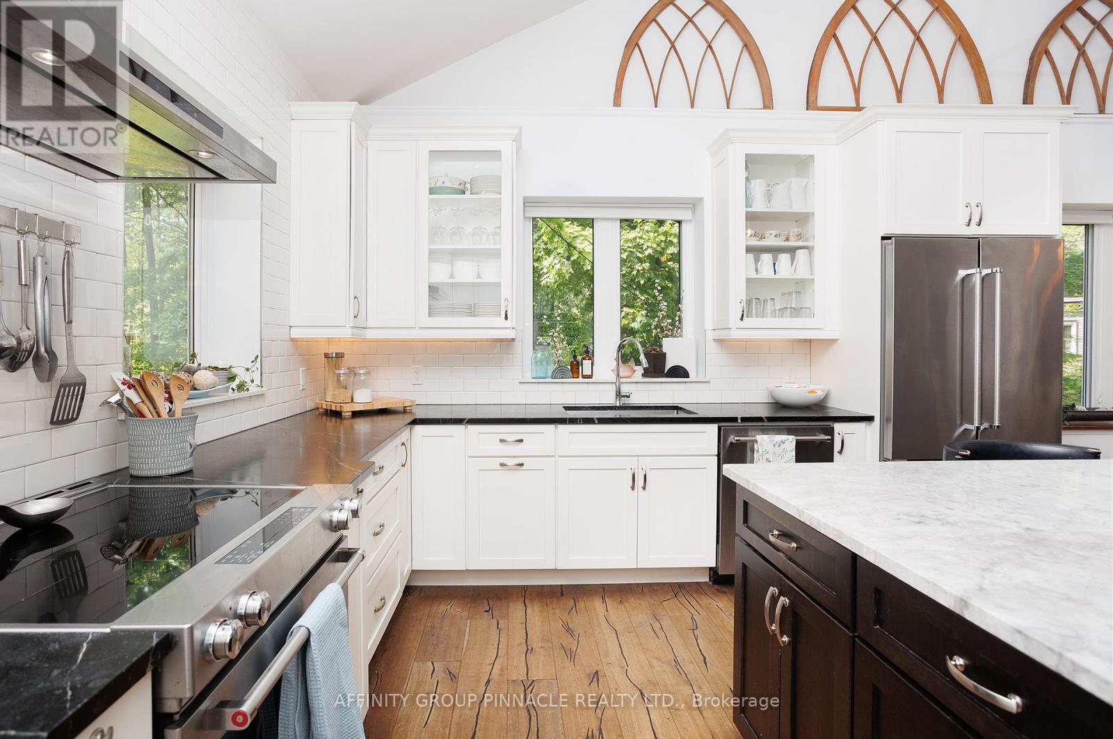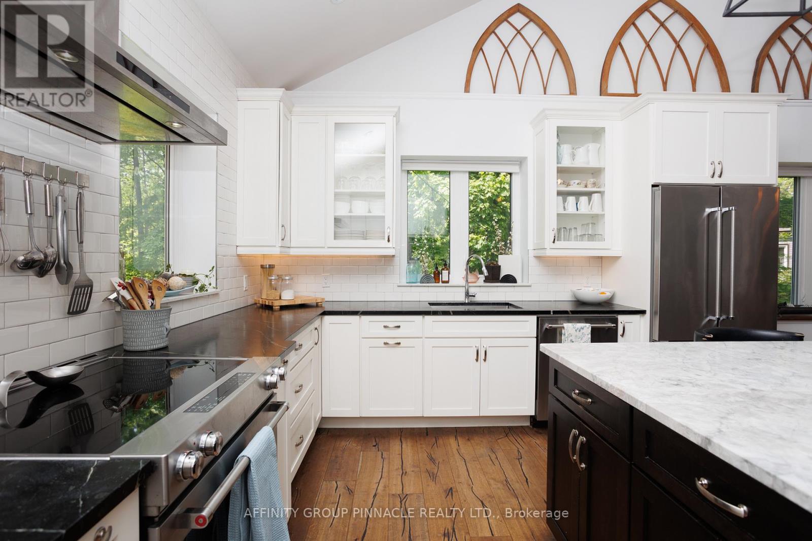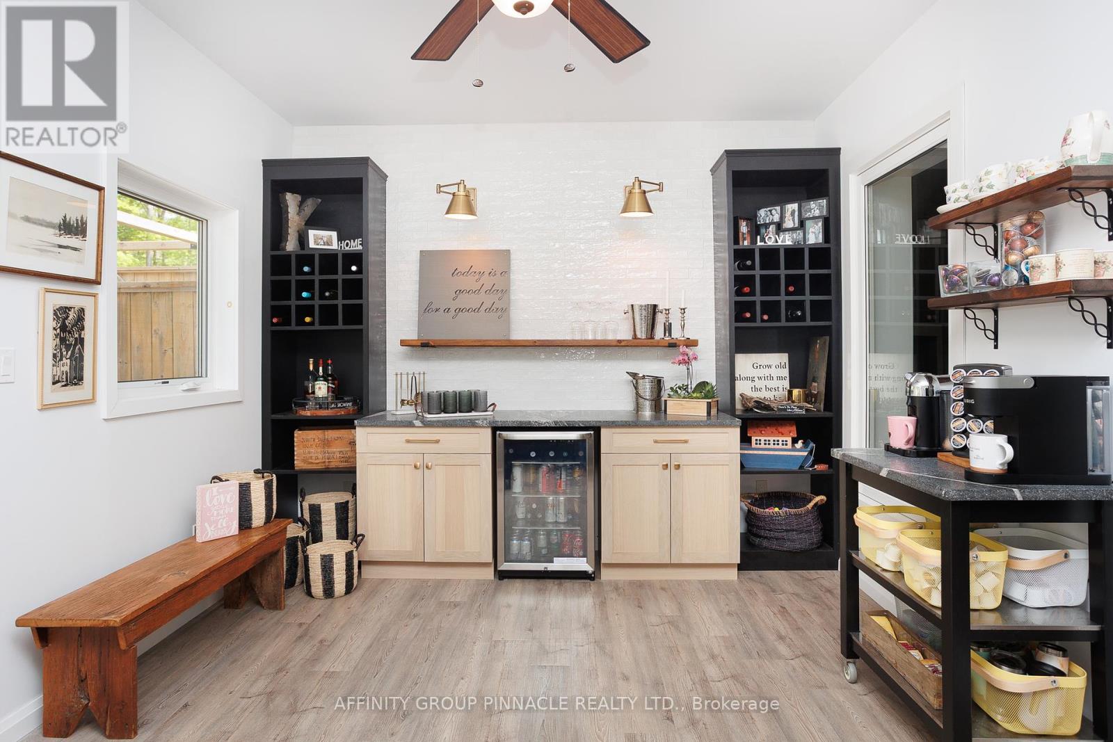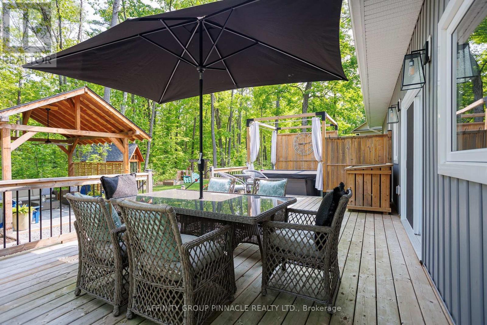 Desirable Sturgeon Point Bungaloft! This stunning custom built 3 bedroom, 3 bathroom, plus 500sqft loft will not disappoint. 3250 sqft incl basement. Masterfully designed & constructed in 2016 with ICF to the ceilings, this home sits on 1 acre surrounded by mature woods & perennial gardens. A timber framed cover porch welcomes you into a large foyer. Pride of ownership abounds in the open concept living on the main floor with high ceilings and ample windows allowing for tons of natural light. The designer kitchen offers face frame cabinetry, tons of storage, soap stone counters, a wonderful quartzite island that seats 6, built-in appliances, and is just simply an excellent place for entertaining or spending time with family. A large dining area and a cozy mainfloor tv area with propane fire insert are accompanied by a 4 season sunroom with dry bar & walk out to private deck and 6 person hot tub. The main floor primary suite offers a huge his & hers walk-in closet, glorious ensuite with a soaker tub for 2 and walk-in shower. Main floor laundry room, a charming powder room sits next to the direct access to the 2.5 car insulated garage. The large loft space is the perfect spot for a guest room, lounge, or a home office. In the basement we find zoned in floor heating, another family room with a cozy tv area adorned with a ship lap built in for the tv and games. 2 large bedrooms with large closet spaces, a kitchenette, and a separate entrance from the garage help lend the basement to the perfect inlaw suite/2nd living quarters. Enjoy outdoor living under the amazing pergola, or from the front porch. The Generac system ensures power should the need arise. Sturgeon Point offers a wonderful community with a mix of history and contemporary living. Amazing amenities include a nearby golf course, public beach, community church, sailing club, and the SPA membership for community events and endless lake water for the gardens. Come live your best life at this gorgeous property. (id:51158)