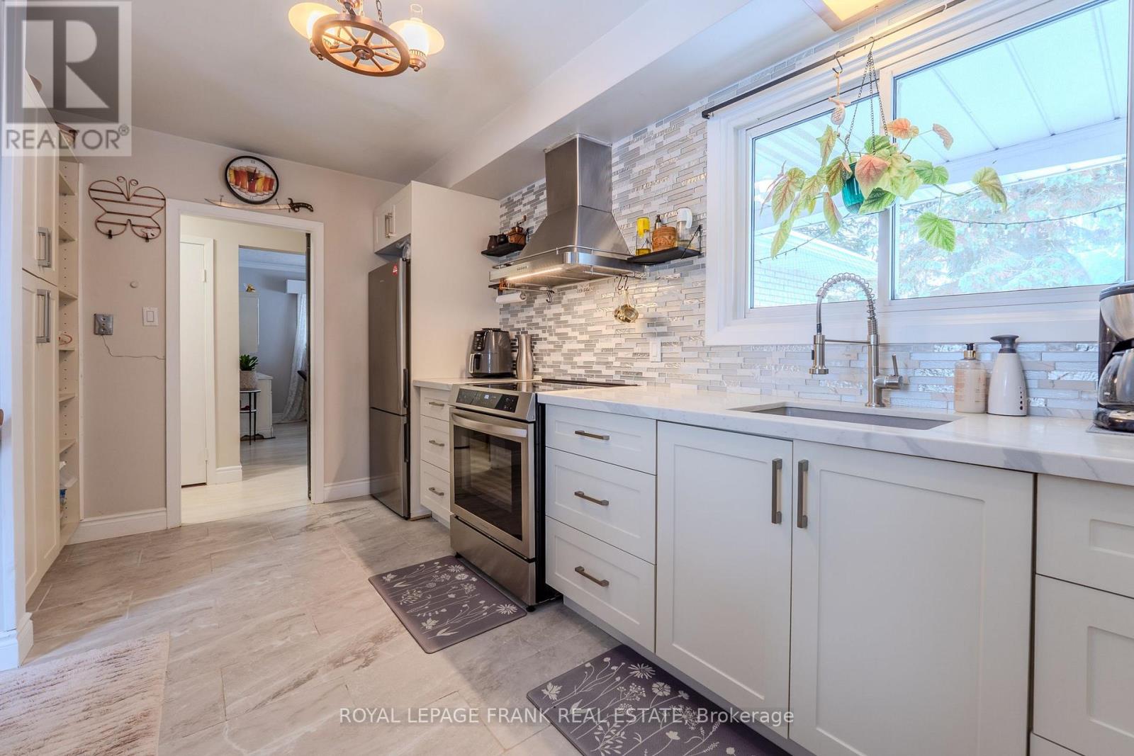 Updated All-Brick Bungalow with In-Law Potential! This solid 3+1 bedroom, 1137 sq. ft. bungalow is set on a deep 'pool sized' lot surrounded by mature trees. Inside, the main floor shines with refinished hardwood flooring, a completely renovated kitchen, and a stylish updated bathroom. The lower level, with its convenient back door entrance, provides excellent in-law or secondary suite potential. It includes a spacious rec room, large bedroom, office/den, 2-piece bath, and generous storage space. Natural gas heating & central air for year round comfort! Rare backyard access from Huron St. allows for the potential to pursue a second driveway. Currently there is space for 5 vehicles, including the carport. Whether your looking for a family home with room to grow or an investment with multiple possibilities, this bungalow is a rare find. (id:51158)