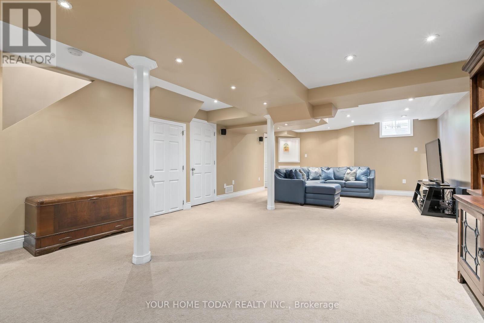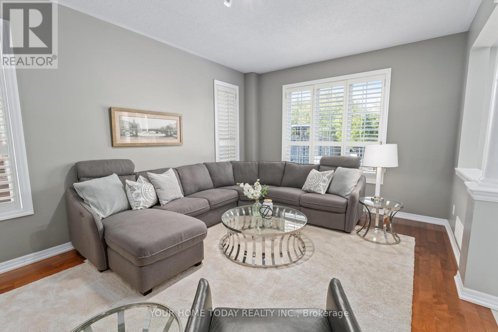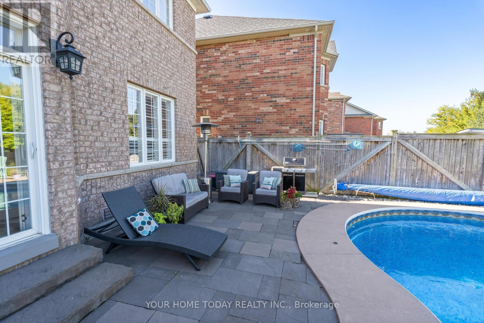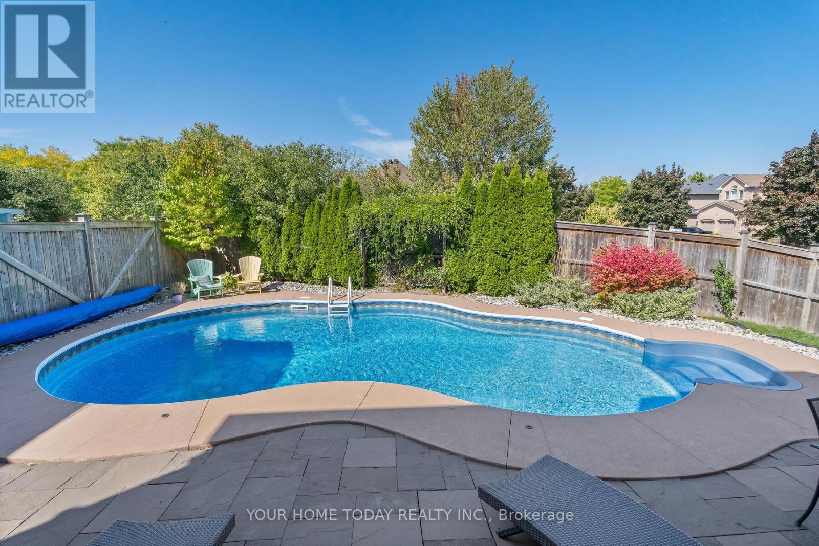The complete package! Approximately 4,200 sq. ft. of finished living space with 5+2-bedrooms, 4.5-bathrooms, finished lower level, heated saltwater pool, gorgeous landscaping and large corner lot backing on to path (no neighbours directly behind or on one side). It doesn't get much better than this! An elegant portico, stunning entry system and large sun-filled foyer set the stage for this impressive home featuring stylish flooring, quality finishes, California shutters and classy décor throughout. The main level offers 9 ft. ceilings, formal living and dining rooms, eat-in kitchen, family room, office, powder room and laundry/mudroom with garage access. The sun-filled living and dining rooms enjoy hardwood flooring, large windows and an open concept design that's perfect for entertaining. The family-sized kitchen features ceramic tile flooring and backsplash, granite counter, warm wood cabinetry, pot drawers, island, stainless steel appliances and walk-out to a backyard oasis with pool, gorgeous yard/gardens, pergola and extensive stone patio area. A family room with toasty 2-sided gas fireplace bordered by custom built shelving and an office with 2-sided fireplace complete the level. An eye-catching wood and wrought-iron staircase carry you to the upper level where you will find 5 spacious bedrooms - 4 with ensuite/semi-ensuite bathroom access and all with ample closet space. Adding to the enjoyment of the home is the finished lower level boasting a party-sized rec room, 2 additional bedrooms, 3-piece bathroom and plenty of storage/utility space. And what a location! Close to schools (across from Gardiner Public), parks, community centre, trails, shops and more. Great location for commuters too with easy access to major roads. (id:51158)