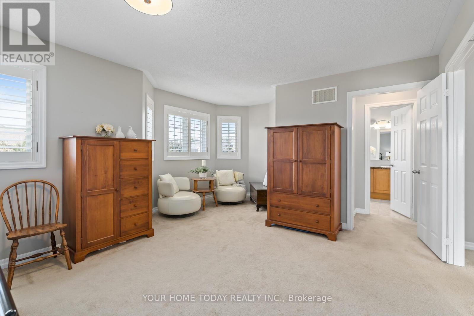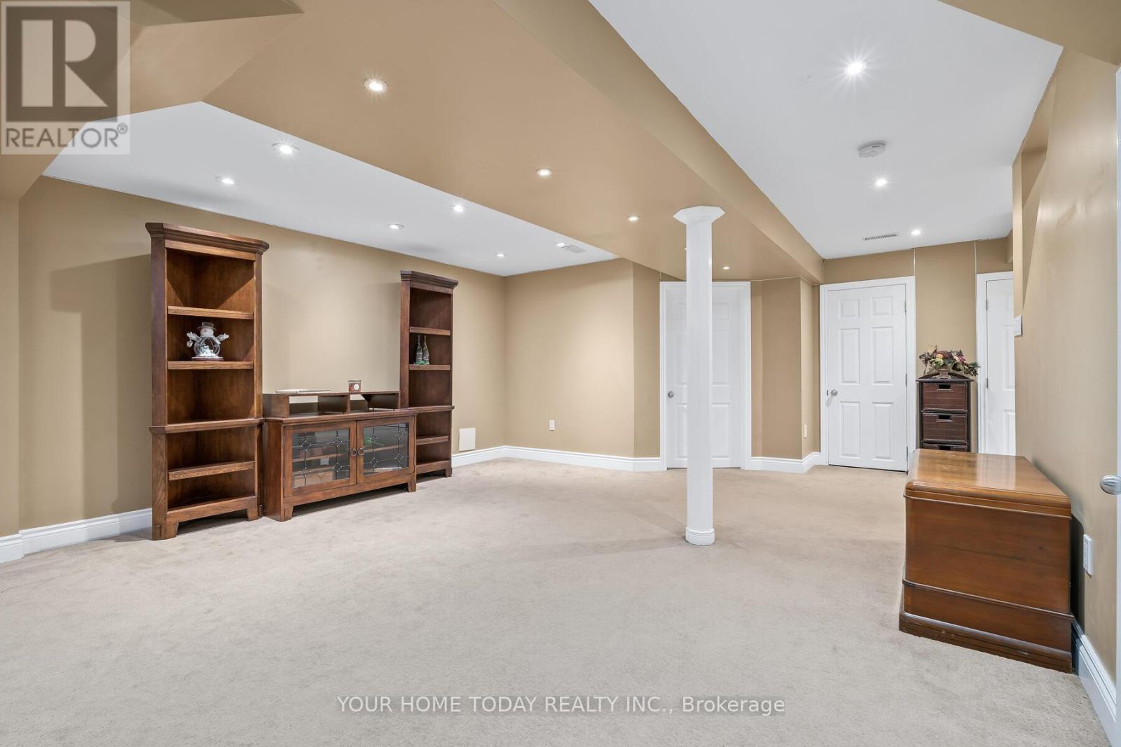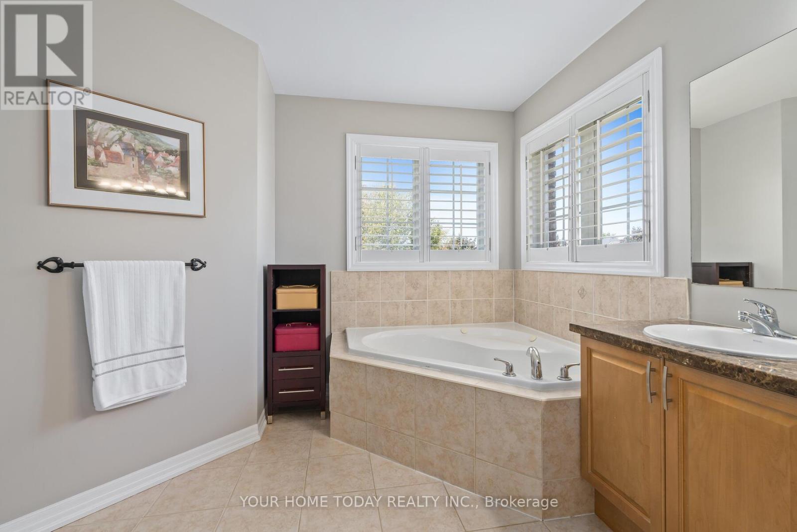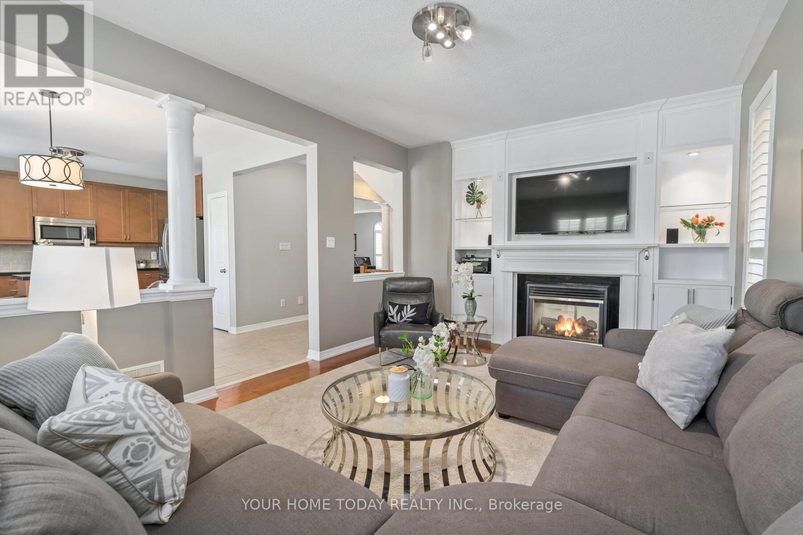 The complete package! Approximately 4,200 sq. ft. of finished living space with 5+2-bedrooms, 4.5-bathrooms, finished lower level, heated saltwater pool, gorgeous landscaping and large corner lot backing on to path (no neighbours directly behind or on one side). It doesn't get much better than this! An elegant portico, stunning entry system and large sun-filled foyer set the stage for this impressive home featuring stylish flooring, quality finishes, California shutters and classy décor throughout. The main level offers 9 ft. ceilings, formal living and dining rooms, eat-in kitchen, family room, office, powder room and laundry/mudroom with garage access. The sun-filled living and dining rooms enjoy hardwood flooring, large windows and an open concept design that's perfect for entertaining. The family-sized kitchen features ceramic tile flooring and backsplash, granite counter, warm wood cabinetry, pot drawers, island, stainless steel appliances and walk-out to a backyard oasis with pool, gorgeous yard/gardens, pergola and extensive stone patio area. A family room with toasty 2-sided gas fireplace bordered by custom built shelving and an office with 2-sided fireplace complete the level. An eye-catching wood and wrought-iron staircase carry you to the upper level where you will find 5 spacious bedrooms - 4 with ensuite/semi-ensuite bathroom access and all with ample closet space. Adding to the enjoyment of the home is the finished lower level boasting a party-sized rec room, 2 additional bedrooms, 3-piece bathroom and plenty of storage/utility space. And what a location! Close to schools (across from Gardiner Public), parks, community centre, trails, shops and more. Great location for commuters too with easy access to major roads. (id:51158)