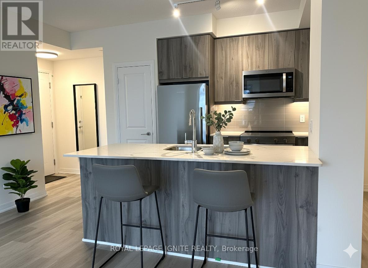 Welcome to Gemma Condos!! A brand-new luxury residence situated in the heart of Pinnacle Uptown's master-planned community at Hurontario and Eglinton. This never-lived-in 1-bedroom plus den,1-bathroom suite offers a bright, functional, and spacious layout designed for modern living-perfect for professionals, couples, or anyone seeking comfort and convenience in a vibrant urban setting. The open concept living and dining area is bathed in natural light through floor-to-ceiling windows, seamlessly extending to a private balcony where you can enjoy your morning coffee or unwind after a long day. The sleek contemporary kitchen features stainless steel appliances, quartz countertops, modern cabinetry, and an efficient layout ideal for cooking and entertaining. The primary bedroom offers generous closet space and a calm, comfortable atmosphere, while the large den provides versatile options for a home office, guest room, or creative workspace. Additional highlights include 9-foot ceilings, ensuite laundry, and high-quality finishes throughout. Enjoy first-class amenities in a community designed for lifestyle and convenience-just minutes from Highways 401, 403, Square One Shopping Centre, transit, parks, restaurants, and the upcoming Hurontario LRT. The unit also includes one parking space for added convenience. Experience contemporary living at its finest in one of Mississauga's most sought-after and well-connected neighborhoods-Don't miss the opportunity to lease this stunning new suite in Gemma Condos. (id:51158)