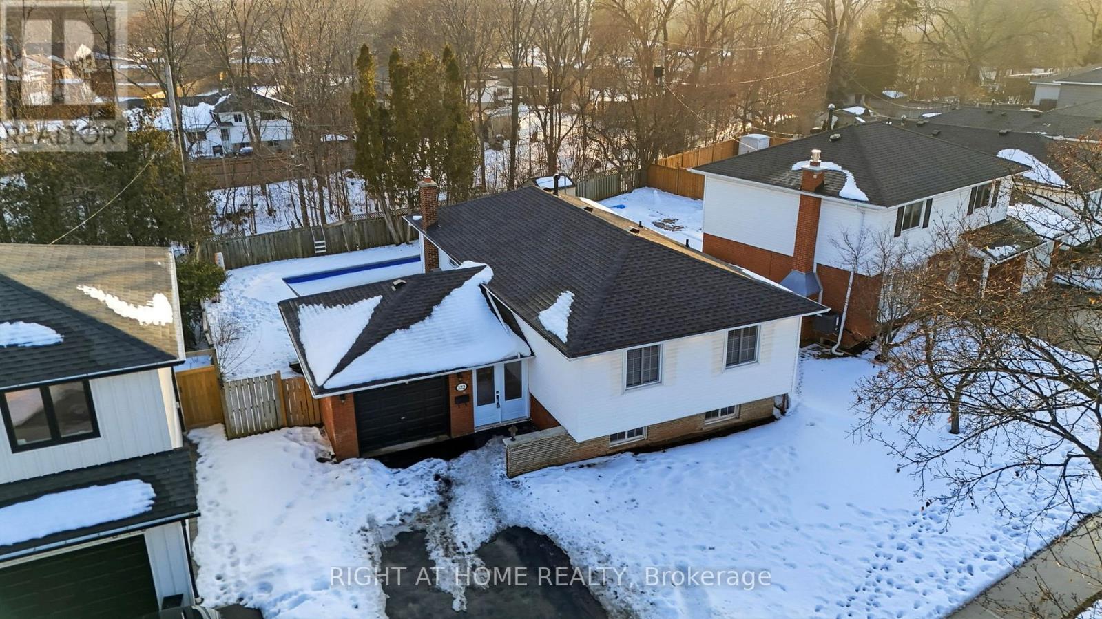 Amazing Location | Incredible Opportunity | Endless Potential Welcome to this charming 3-level side split set on a generous lot, offering a functional and versatile layout ideal for growing families or those looking to customize their dream space. The main level features a beautifully updated living and dining area, showcasing a bright and inviting space perfect for both everyday living and entertaining, along with an eat-in kitchen offering great functionality and future potential. Upstairs, you'll also find three spacious bedrooms filled with natural light, while the lower level offers exceptional additional living space, including a large family room complete with a cozy gas fireplace, a built-in bar area for entertaining, a fourth bedroom, additional bathroom, and a dedicated office-ideal for working from home or multi-generational living. Step outside to your private backyard retreat featuring a large in-ground pool with a new liner (2024)-perfect for summer entertaining, relaxing weekends, and creating lasting family memories. Located in one of the area's most desirable, family-friendly communities, this home offers an unbeatable lifestyle, just steps to top-rated schools, parks, restaurants, shopping, the community centre, and library. A new roof (2024) adds valuable peace of mind, while the home offers a fantastic opportunity to make it your own. A rare opportunity to own in a prime location-this is the one you've been waiting for! (id:51158)