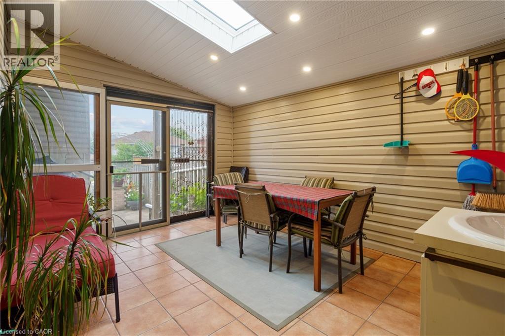 This spacious 4.5-level backsplit offers 1,960 sq ft of well-designed living space, featuring 3 generous bedrooms, 2 full bathrooms, and an abundance of storage throughout. The upper level includes all three bedrooms, conveniently located near a full bathroom. On the main floor, you'll find a bright, open-concept living and dining area—ideal for entertaining—alongside a functional kitchen that overlooks the expansive family room below. The family room is centered around a cozy natural gas fireplace and offers direct access to the backyard. Just off the kitchen, a three-season sunroom provides the perfect space for relaxing or hosting guests, leading to a neatly landscaped backyard complete with a vegetable garden and a full brick shed. The lower level features a second kitchen with a spacious pantry and a large crawl space for additional storage—perfect for multi-generational living or hosting extended family. Lovingly maintained by the original owners for over 30 years, this home has been the backdrop to decades of family memories. Additional highlights include a 1.5-car garage, parking for 3 vehicles in the driveway, and a new roof installed in 2020. Ideally located close to parks, schools, grocery stores, Limeridge Mall, public transit, and with quick access to major highways, this home offers both comfort and convenience. Don't miss this opportunity to own a meticulously cared-for home in a prime location. (id:51158)