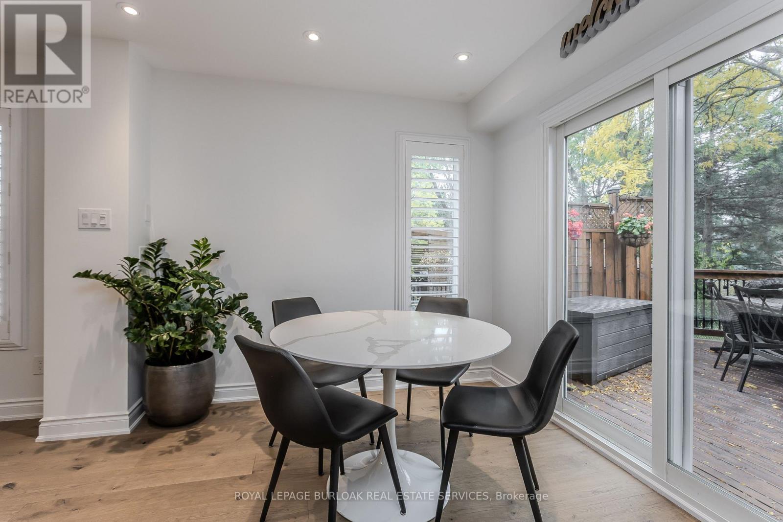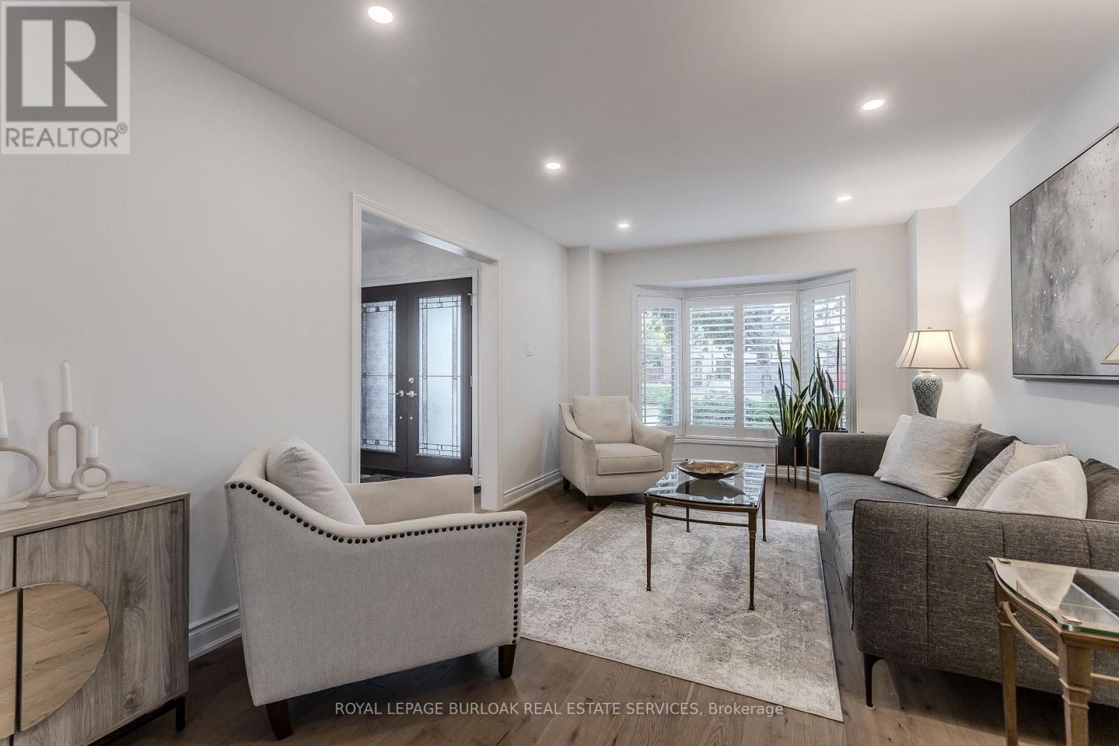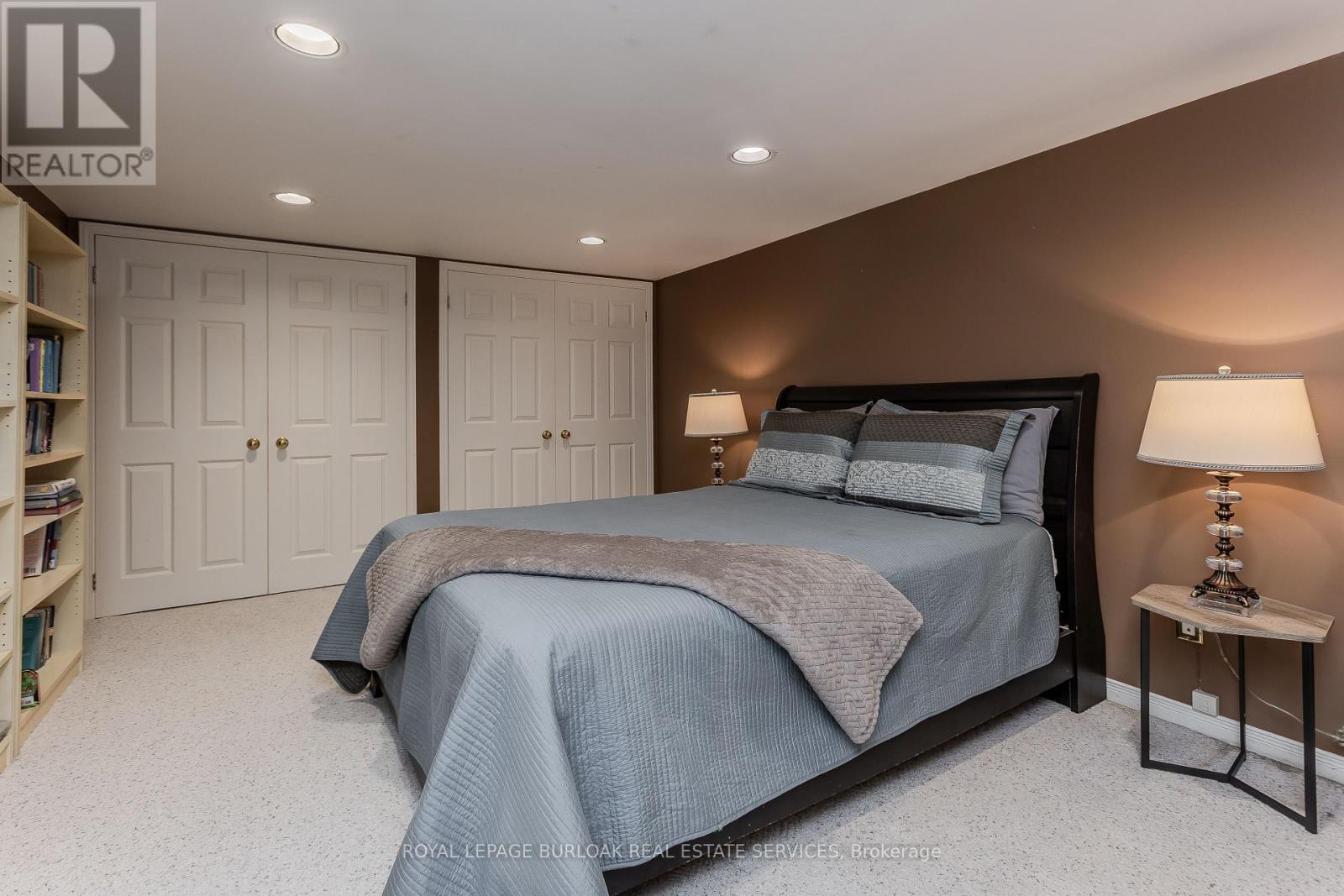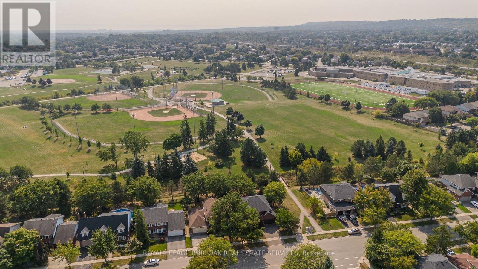 Discover the perfect Family Lifestyle Location in this updated home with 3,479 sqft total living space, nestled in one of Burlington's most well-connected neighbourhoods. Fully renovated on the main and upper levels, it blends modern comfort with a dream family lifestyle setting.  Backing onto a mini ravine with Ireland Park just beyond, and schools, parks, trails, amenities, and highway access mins away, life flows with ease. The exceptional curb appeal sets the tone-professionally landscaped, mature trees, all-brick façade, and a stone walkway lead to a double door entry. A side trail next to the home connects directly to the park, making family adventures effortless. Inside, the bright, open-concept main level is designed for family living and connection. Wide plank light oak hardwood and California shutters flow throughout. The living and dining spaces are perfect for gatherings, while the spacious eat-in kitchen impresses with custom cabinetry, quartz countertops ,premium SS appliances, brick backsplash, and a breakfast nook w/ walkout to the rear deck. A sunken family room with a contemporary stone fireplace and gallery lighting invites memorable evenings. The convenience of a main-floor laundry room with side yard access is ideal for busy households. Upstairs, hardwood continues across 4 generous bedrooms. The expansive primary suite offers multiple oversized windows, a vanity nook, walk-in closet, and a spa-like ensuite with a glass shower and freestanding tub. A 4pc main bath with dual sinks completes this level. The lower level expands the lifestyle possibilities: a versatile rec room, kitchenette, additional bedroom with 2 large closets, and a 3-piece bath, perfect for teens, in-laws, guests, or a nanny. Step outside to your private entertaining oasis. The fully fenced yard, mature trees, interlock patio, and spacious 2-tier deck set the stage for family BBQs, outdoor dining, and year-round fun. This is a home where families grow, gather, and truly live. (id:51158)