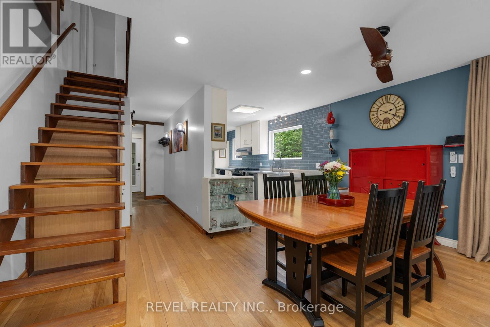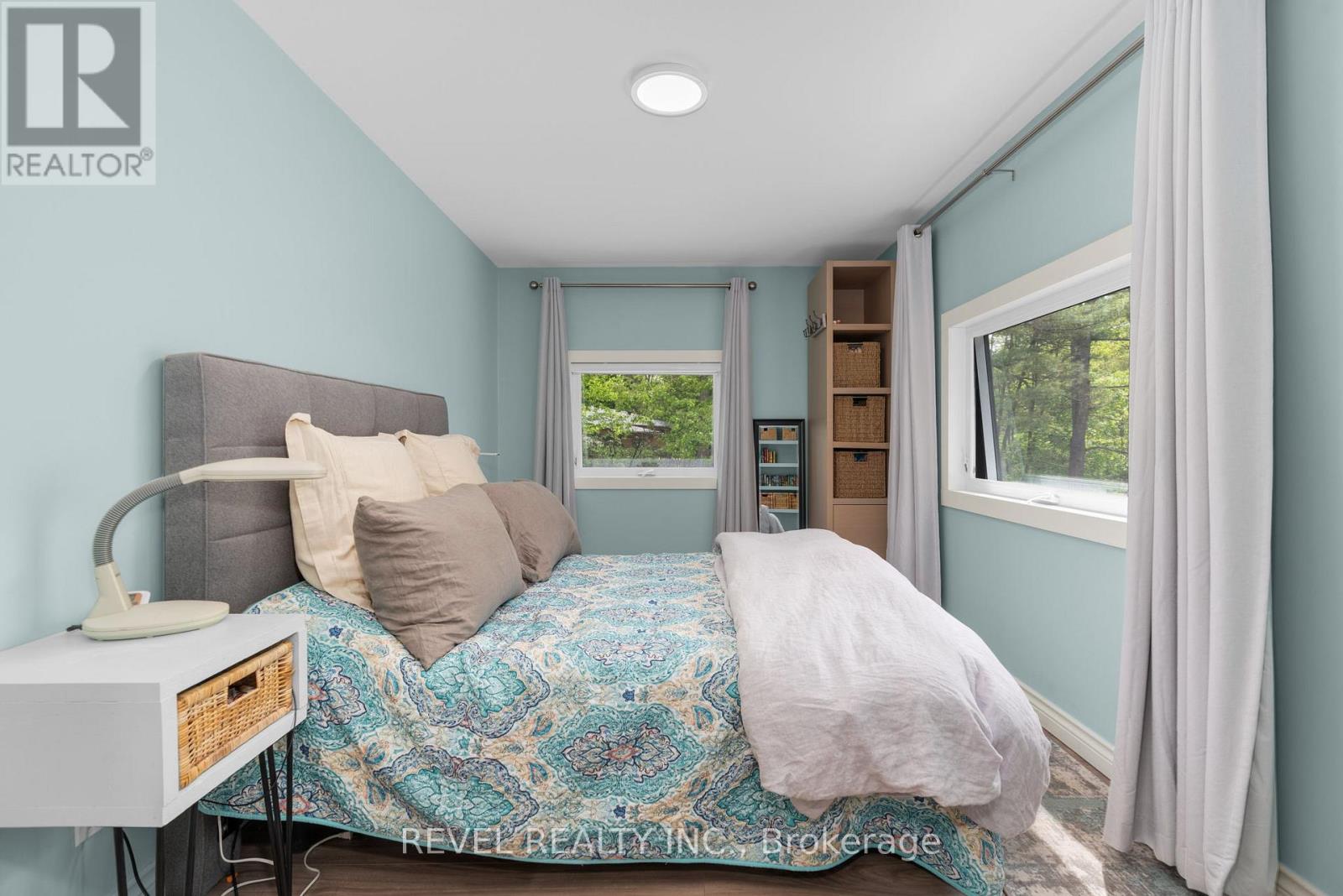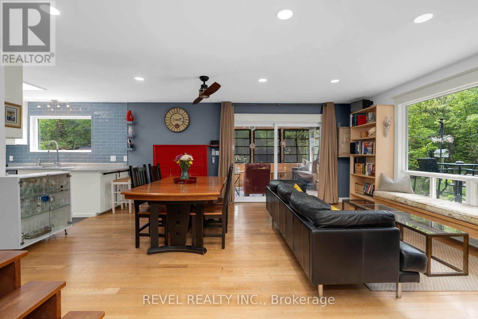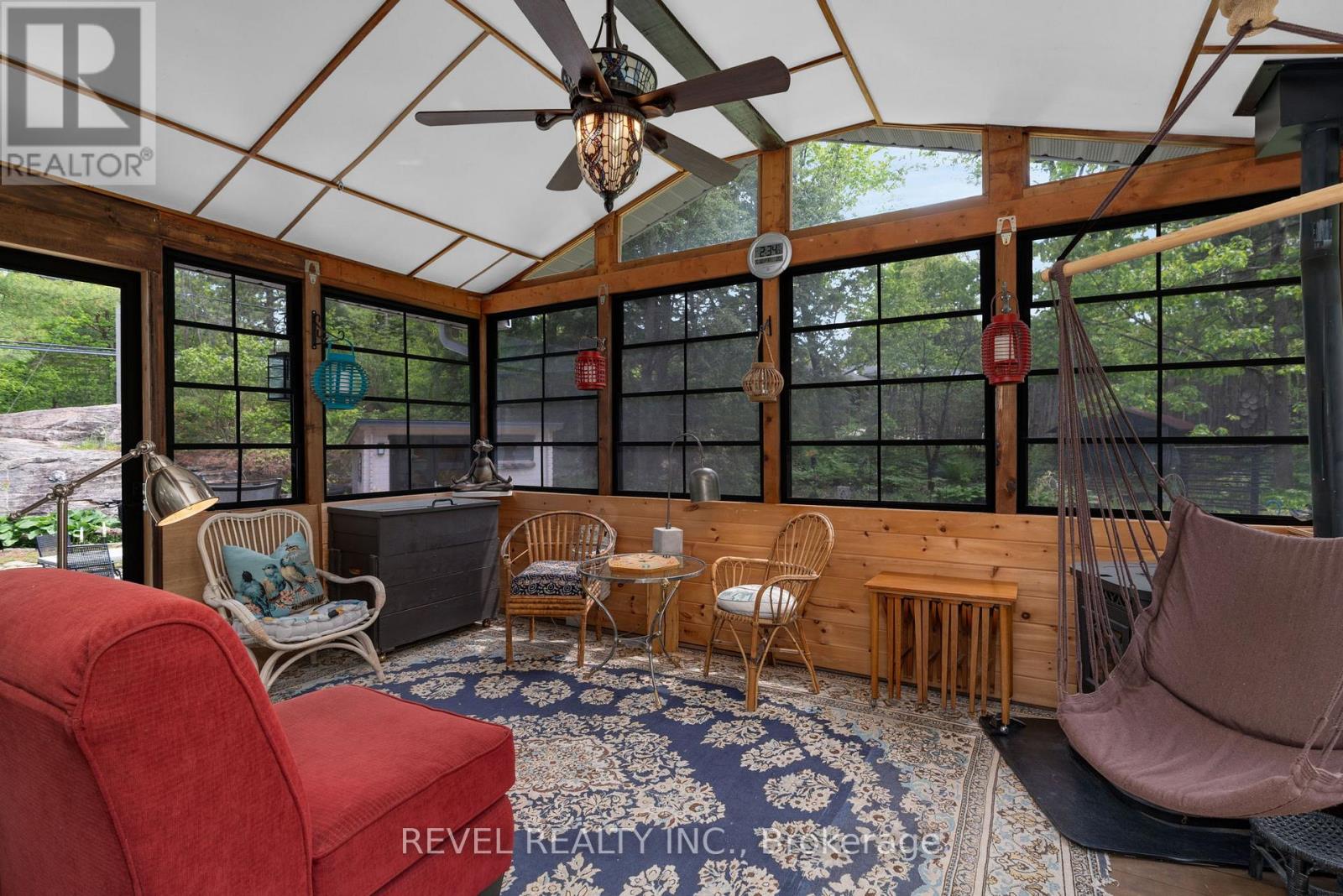 Welcome to 3248 Muskoka Street - a dreamy woodland retreat offering a peaceful, private setting with the convenience of walking to charming downtown Washago. Nestled on over half an acre, this 3 bedroom, 2 bath home is surrounded by mature trees, perennial gardens, and a gentle stream running through the property, creating a truly storybook setting. The main floor features open-concept living and dining spaces with a cozy gas fireplace that warms the home beautifully. The updated galley-style kitchen offers newer stainless steel appliances, including a propane stove, extended counters, and pull-out pantry storage - perfect for keeping everything neat and organized. The bright, heated 3 season sunroom with new windows is a welcoming space to relax and unwind. You'll also find a convenient 3-piece bathroom on the main level as well as access to the large attached workshop - ideal for hobbyists and handymen alike. Head upstairs to 3 generously sized bedrooms- 2 with walk in closets, a 4 piece bath, and a thoughtful storage room. Outdoors, enjoy the private sauna and hot tub tucked amongst the tree canopy, let your creativity flow in the studio shed (2023) with its own electrical panel, or use the charming bridge to cross the stream. This property also features a large carport, and plenty of parking for vehicles and recreational toys. Just steps to the Green and Black Rivers, public boat launch into Lake Couchiching, local beach, shops, cafés, and community events. Quick access to Hwy 11, Orillia, and Gravenhurst. Washago will be a stop in the upcoming relaunch of the Northlander passenger train from the GTA. Recent updates include roof (2023), windows (2022), heat pump (2022), exterior paint (2024), hwt (2024), side deck (2022), and more. A rare opportunity to own a unique property that blends cottage-country serenity with in-town convenience. Easy to show. Don't miss this one! (id:51158)