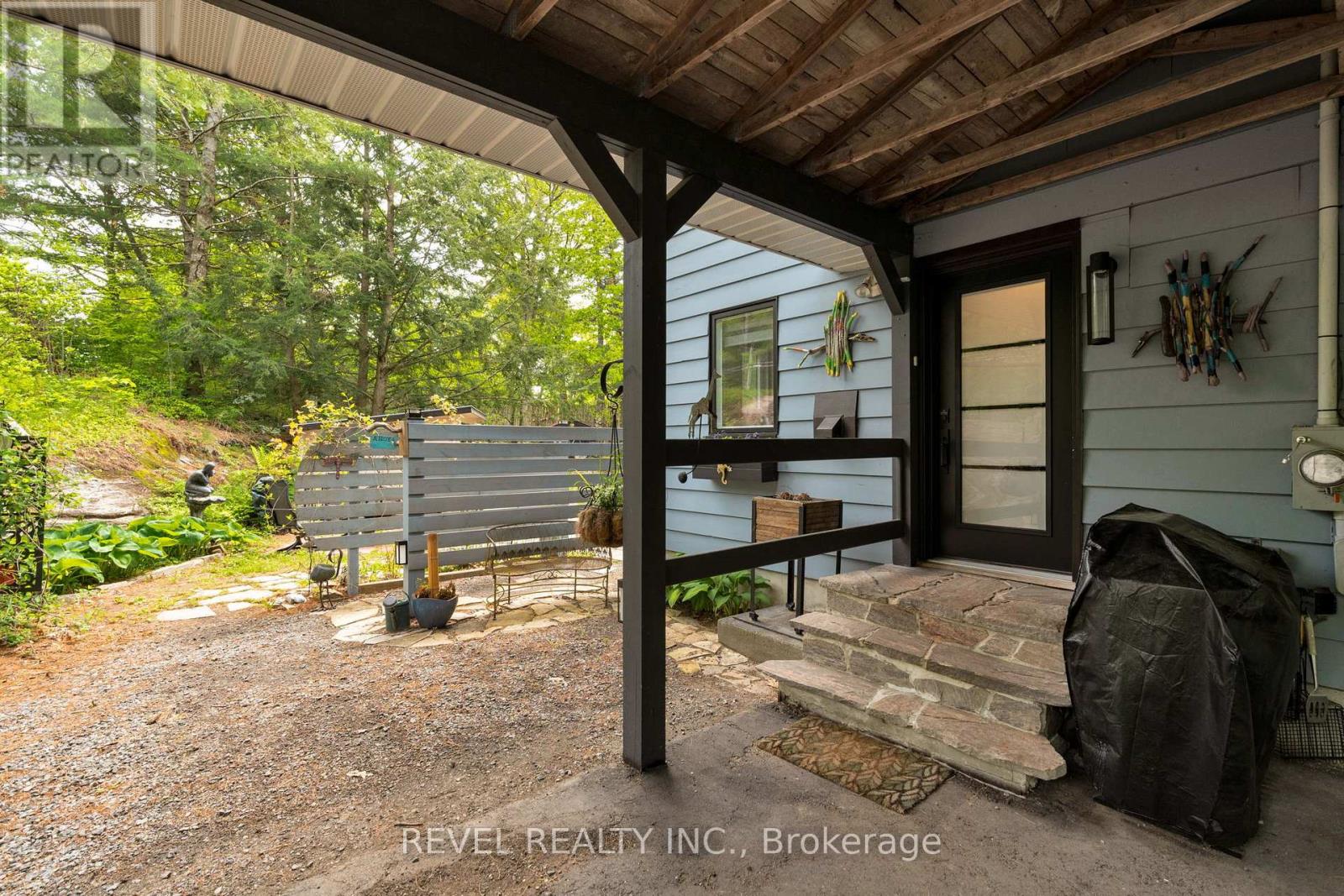 MLS# S12219522 – FOR SALE : 3248 Muskoka Road Washago Severn – 3 Beds, 2 Baths Detached House ** Welcome to 3248 Muskoka Street – a dreamy woodland retreat offering a peaceful, private setting with the convenience of walking to charming downtown Washago. Nestled on over half an acre, this 3 bedroom, 2 bath home is surrounded by mature trees, perennial gardens, and a gentle stream running through the property, creating a truly storybook setting.The main floor features open-concept living and dining spaces with a cozy gas fireplace that warms the home beautifully. The updated galley-style kitchen offers newer stainless steel appliances, including a propane stove, extended counters, and pull-out pantry storage – perfect for keeping everything neat and organized. The bright, heated 3 season sunroom with new windows is a welcoming space to relax and unwind. You’ll also find a convenient 3-piece bathroom on the main level as well as access to the large attached workshop – ideal for hobbyists and handymen alike. Head upstairs to 3 generously sized bedrooms- 2 with walk in closets, a 4 piece bath, and a thoughtful storage room. Outdoors, enjoy the private sauna and hot tub tucked amongst the tree canopy, let your creativity flow in the studio shed (2023) with its own electrical panel, or use the charming bridge to cross the stream. This property also features a large carport, and plenty of parking for vehicles and recreational toys. Just steps to the Green and Black Rivers, public boat launch into Lake Couchiching, local beach, shops, cafés, and community events. Quick access to Hwy 11, Orillia, and Gravenhurst. Washago will be a stop in the upcoming relaunch of the Northlander passenger train from the GTA. Recent updates include roof (2023), windows (2022), heat pump (2022), exterior paint (2024), hwt (2024), side deck (2022), and more. A rare opportunity to own a unique property that blends cottage-country serenity with in-town convenience. Easy to show. Don’t miss ** 3248 Muskoka Road Washago Severn **